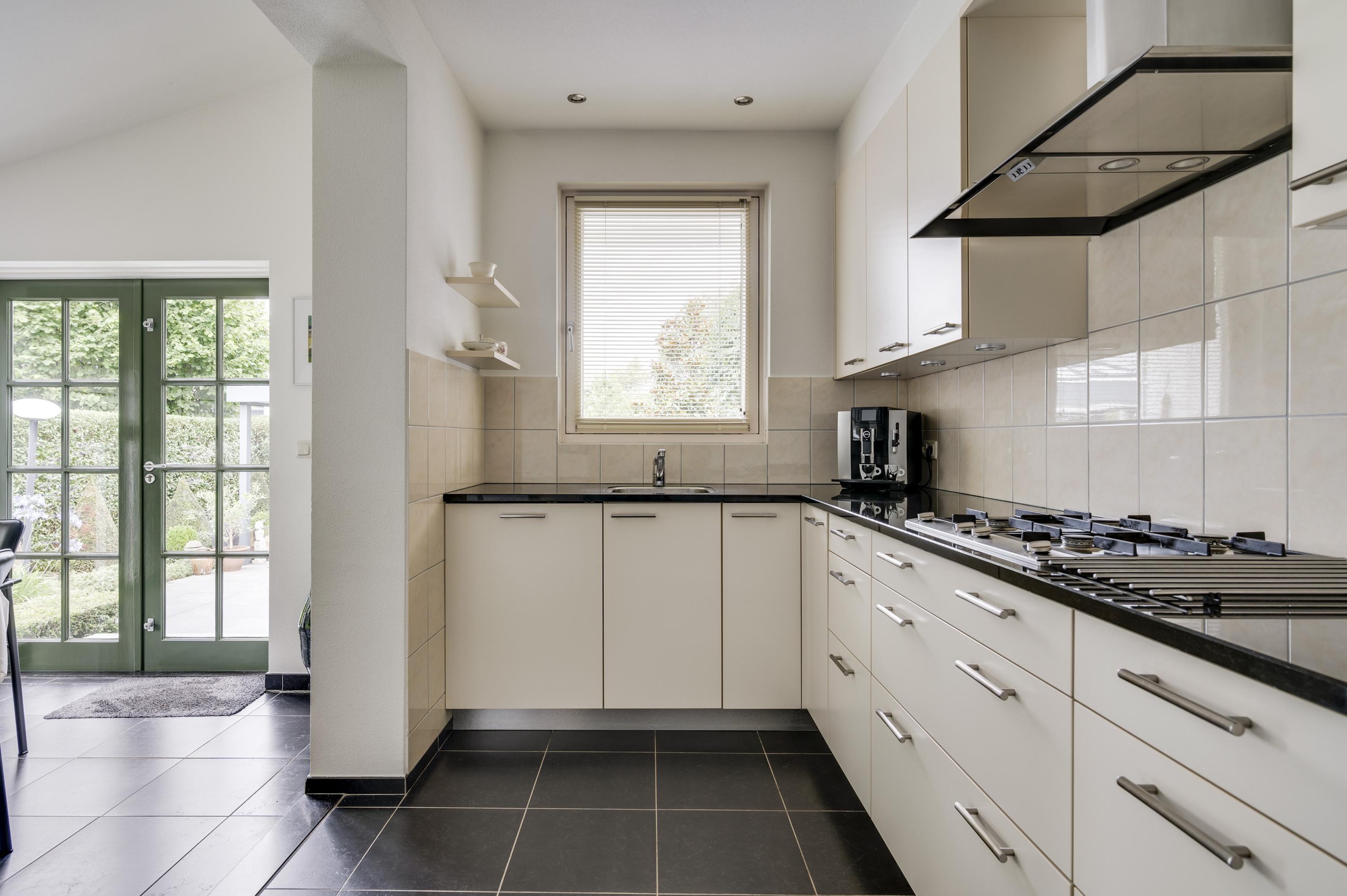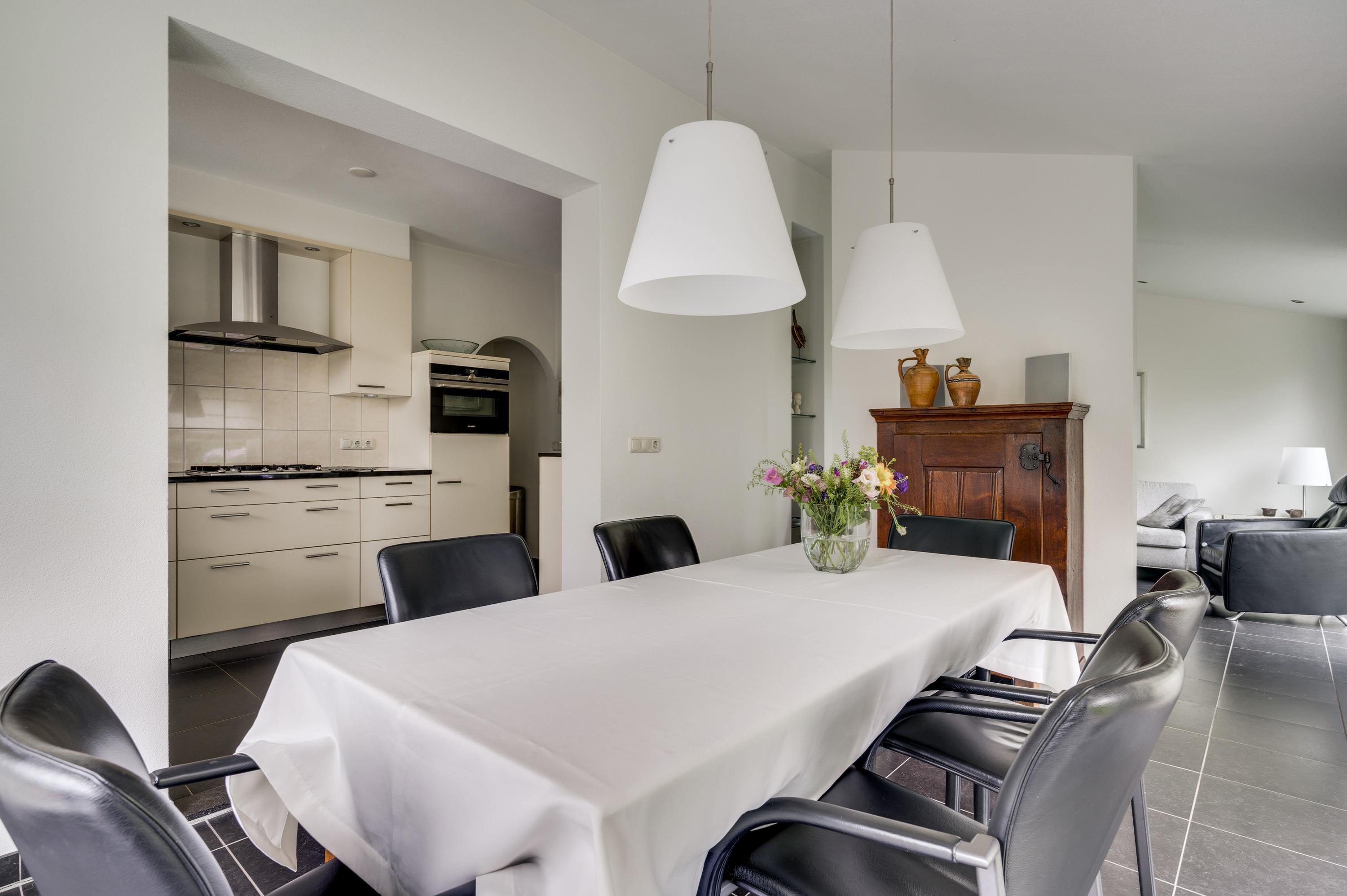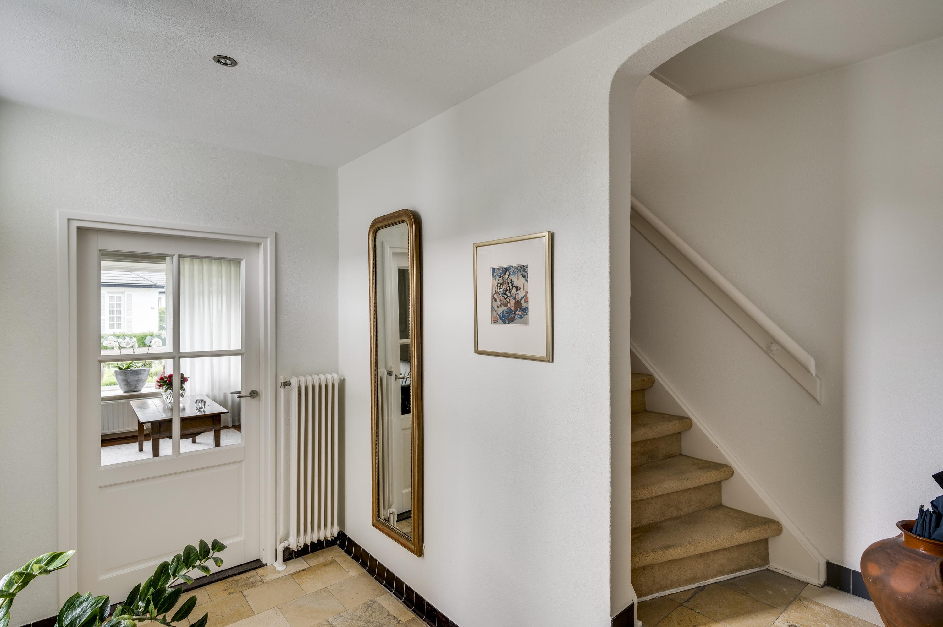 When you enter the spacious hall, you immediately feel the atmosphere of this special house. The bright living room is divided into three attractive rooms: a sitting room, a TV room and a dining room, which flow into each other harmoniously. The large windows provide beautiful light and a magnificent view of the beautifully landscaped garden. Through the French doors you walk straight onto the terrace, where you can enjoy peace and privacy.