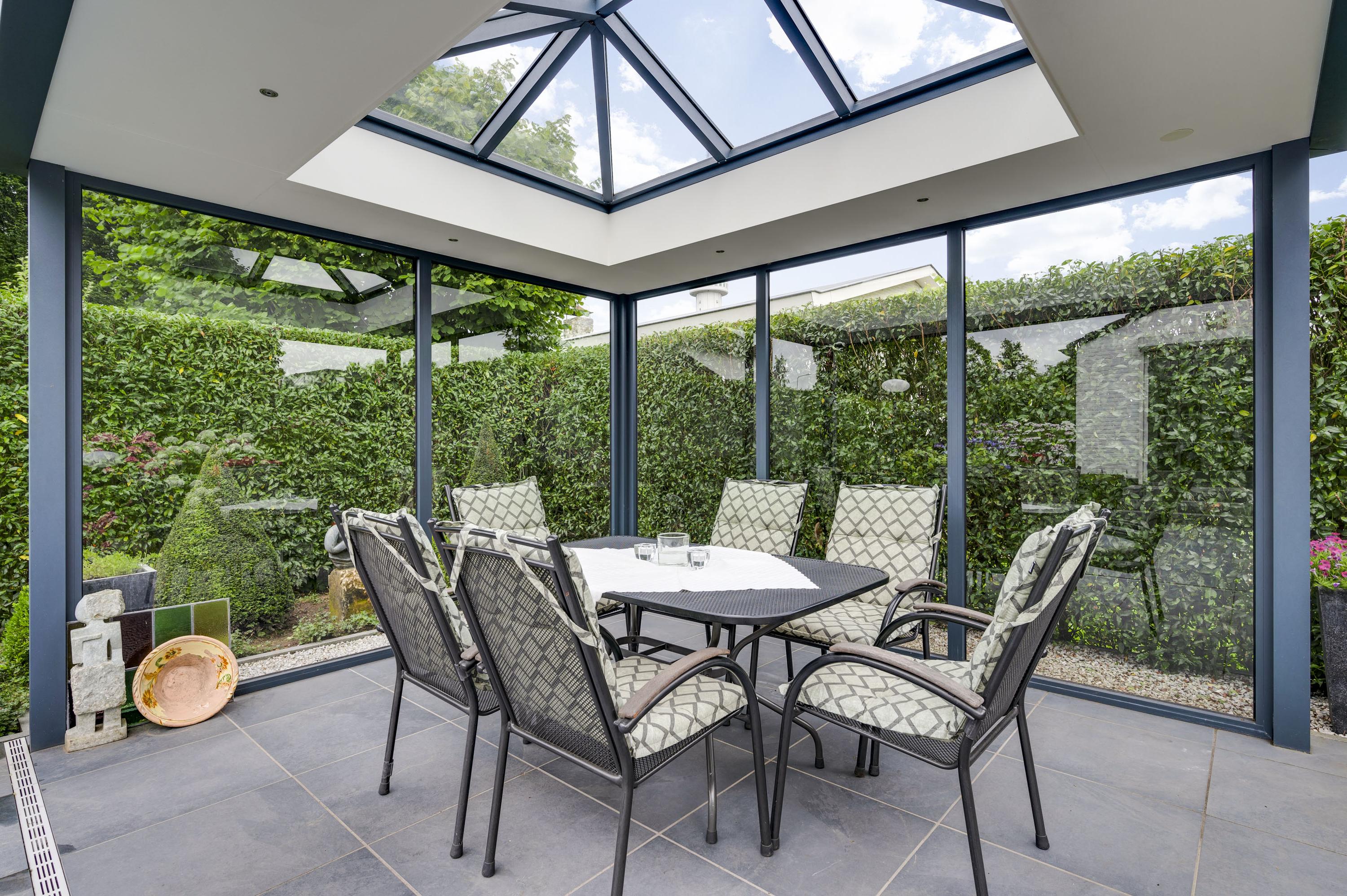 The beautifully landscaped garden around the villa offers plenty of peace and privacy. The sunny location, the well-thought-out design and the luxurious canopy (2016) make this outdoor space a wonderful place to relax and enjoy the outdoors. The finish with natural stone, clinkers and gravel fits in perfectly with the high-quality appearance of the house.