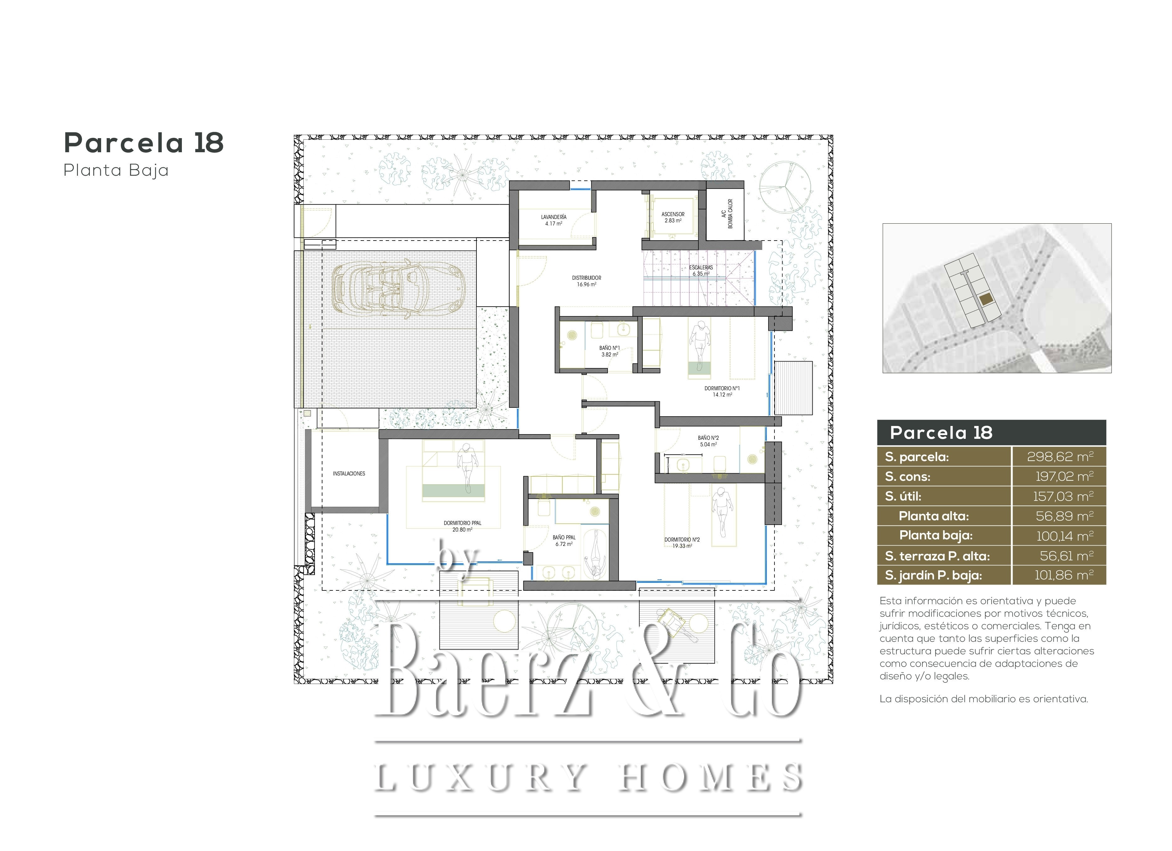 The main floor presents an open kitchen, dining and living room, guest toilet, and a terrace with a private heated swimming pool overlooking the Atlantic Ocean and the island of La Gomera. Three bedrooms and bathrooms, along with a laundry room, compose the ground level, combining ample wardrobe space and a tranquil atmosphere. A private elevator connects the three floors, all adapted for people with reduced mobility.