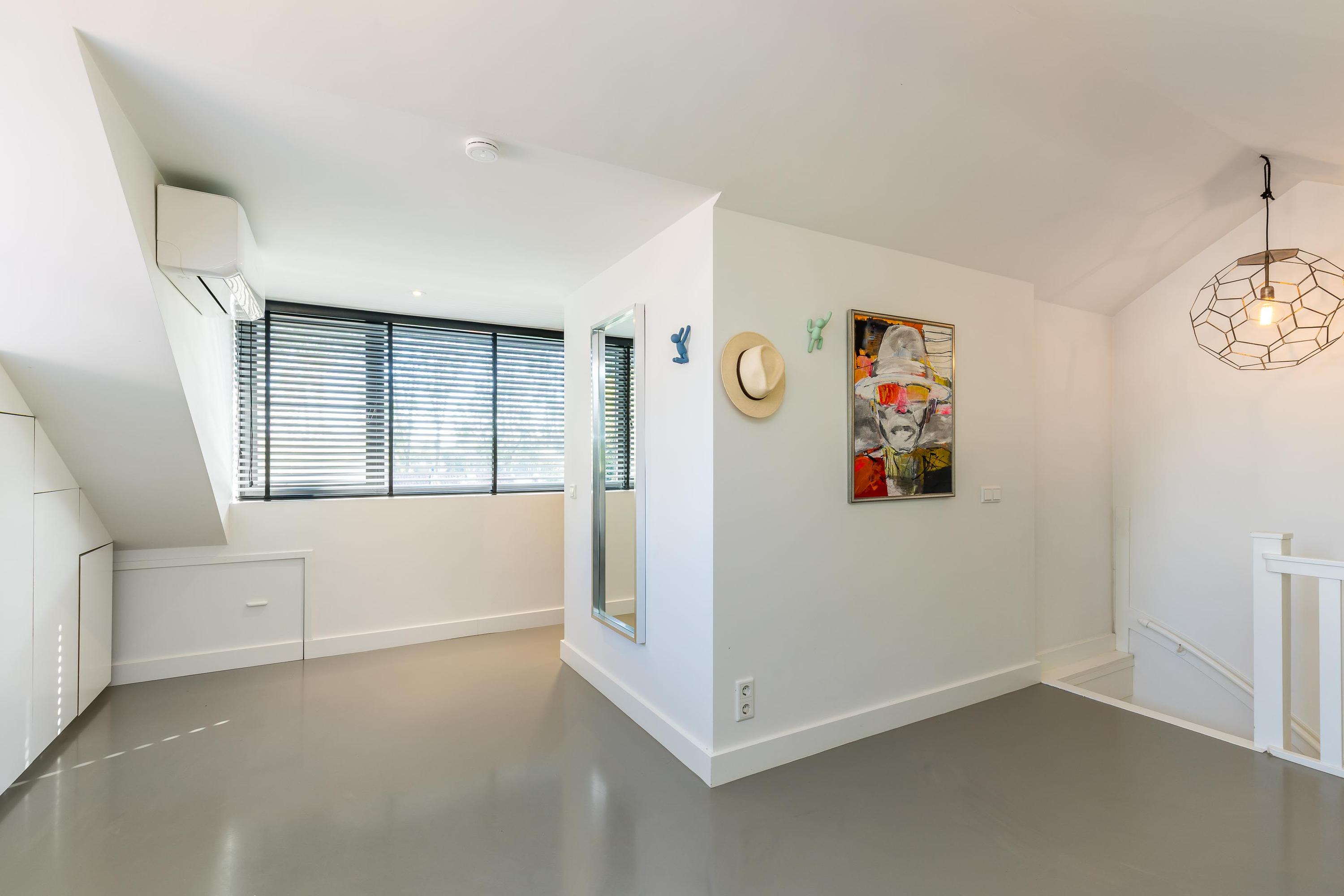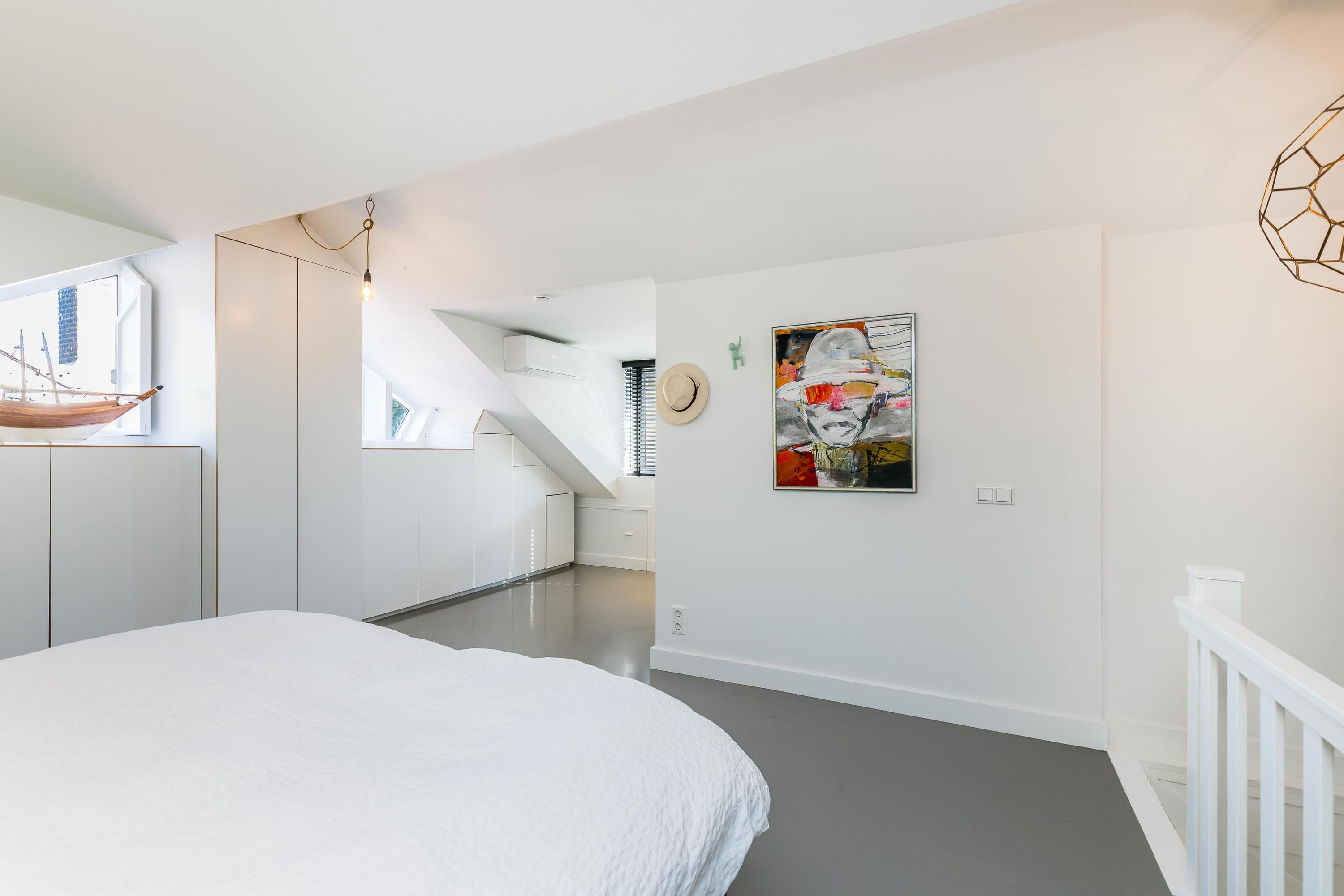The second floor is a true eye-catcher and serves as a luxurious master suite of approximately 45 m². This floor was also completely redesigned in 2019 under architectural guidance. It includes a modern open-plan bathroom, air conditioning (which can also be used for heating), a large built-in wardrobe, and additional storage space behind the knee walls—making this a private, luxurious retreat.