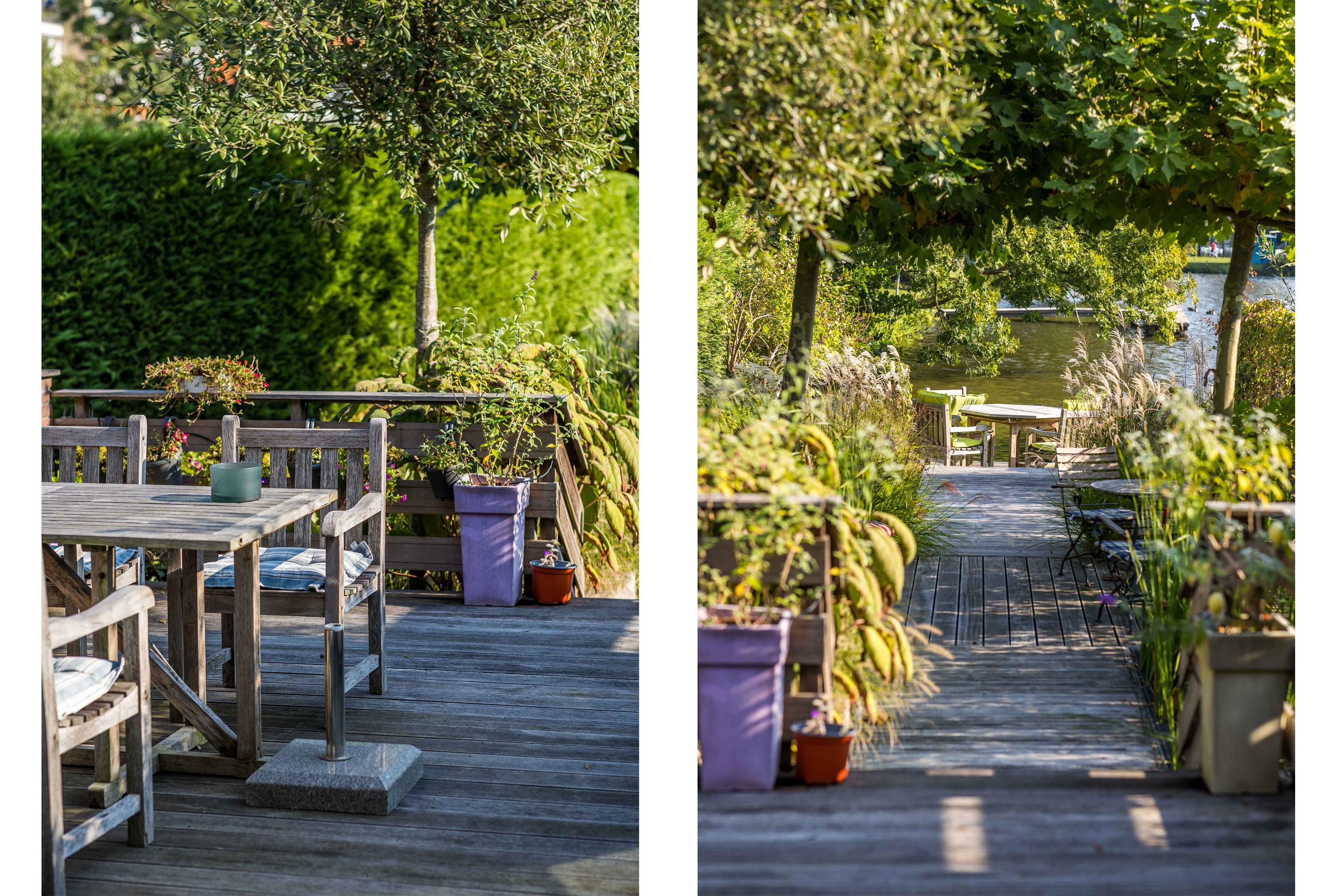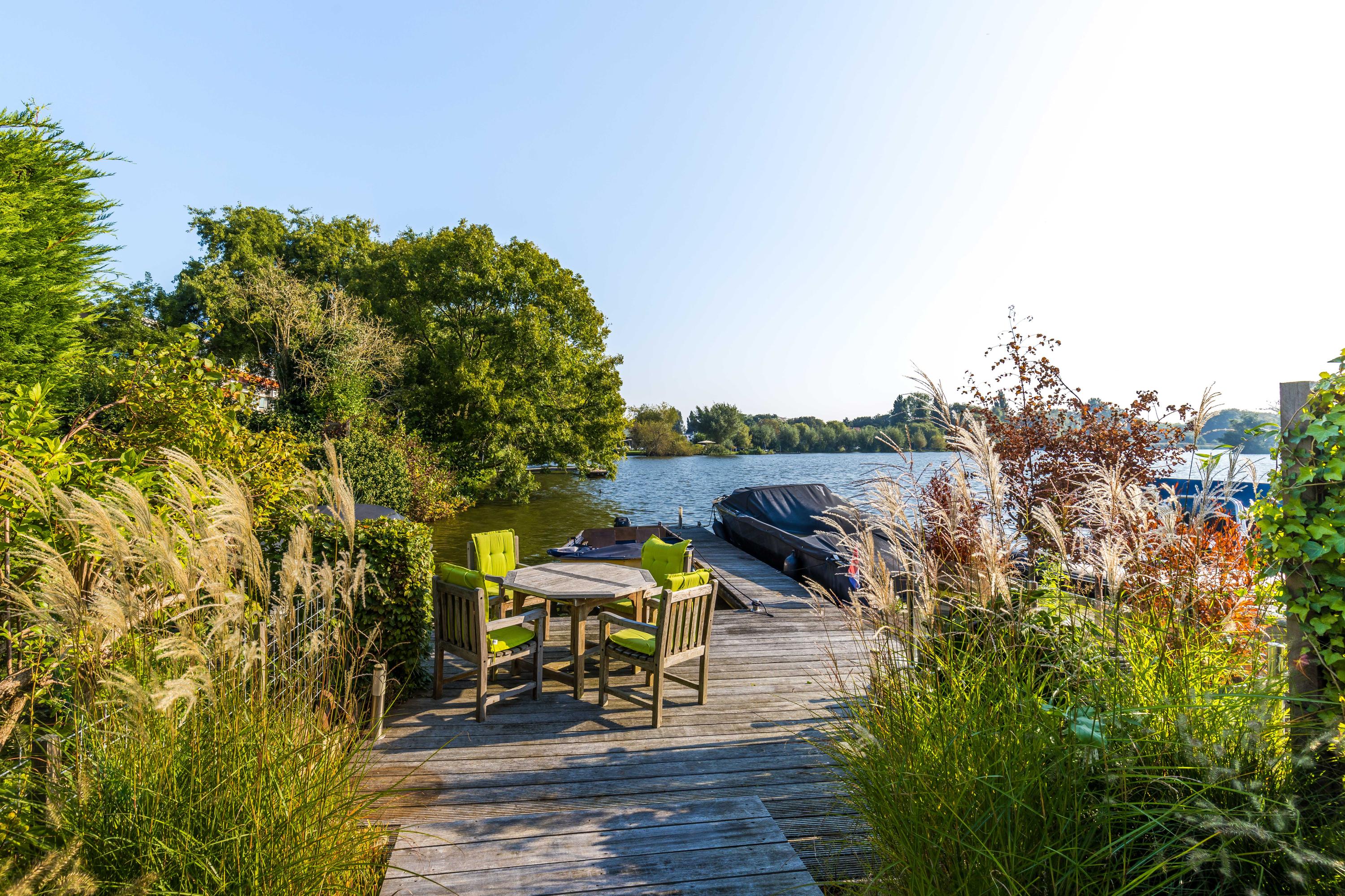 Back garden: located on the northeast, but due to the depth of over 20 meters from the extension on the ground floor, the garden offers sun for the majority of the day. The back garden tapers somewhat, starts at the house with a width of approx. 6 meters and at the waterfront approx. 3 meters.