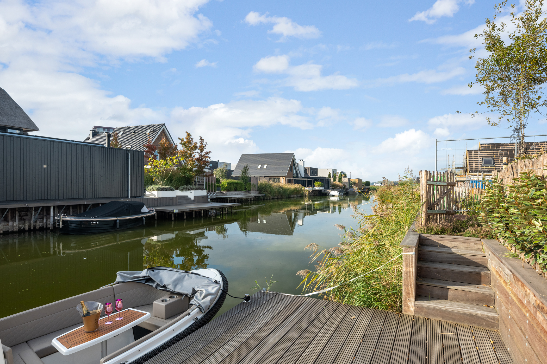 Through the French doors, you step into the beautifully landscaped backyard — an oasis of peace and privacy. Thanks to the south-facing position, you can enjoy sunshine throughout the day, with pleasant shaded areas as well. The garden offers a stunning view over the water and includes a private jetty for a boat.