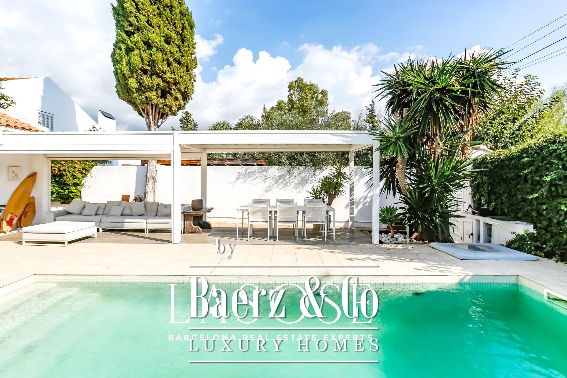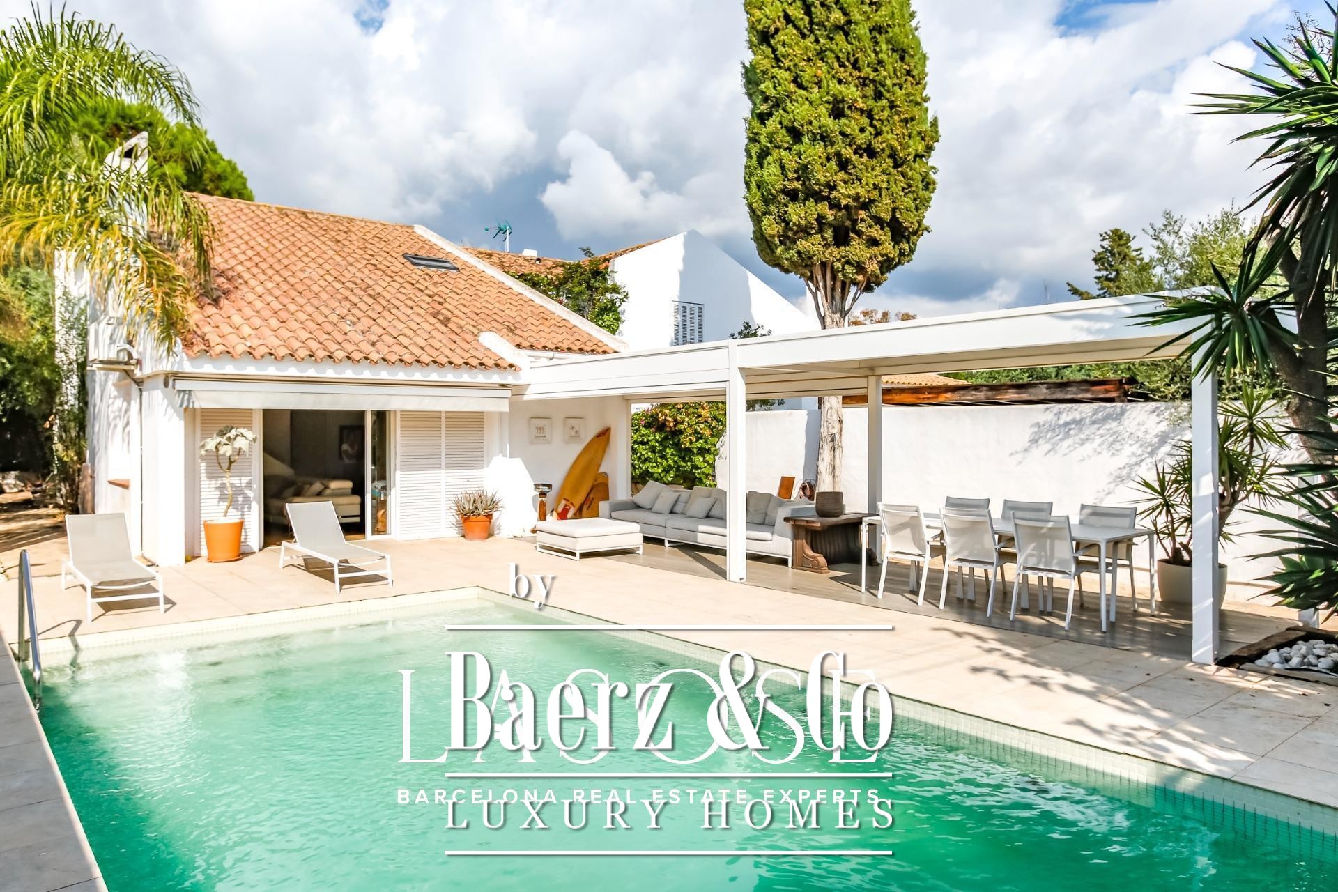 LASOSE is delighted to present this fabulous detached house located in the prestigious residential area of Los Viñedos, in Sant Pere de Ribes.. . This magnificent home perfectly combines Mediterranean charm, comfort, and contemporary functionality. Set on a spacious and well-maintained plot, it offers absolute privacy and a serene atmosphere, reinforced by 24-hour private security. It belongs to one of the most exclusive and sought-after communities in the Garraf region, known for its tree-lined streets, peaceful ambiance, and proximity to vineyards, tennis and padel courts, and high-quality restaurants.. . With a built area of 155 m², the house has been designed to provide a bright and well-balanced layout. Each space has been conceived to make the most of natural light and to create a seamless connection between the interior and exterior areas. The result is a home that invites relaxation and conveys a true sense of wellbeing in every corner.. . A charming landscaped entrance leads to the main door. Outside, a lush garden, private swimming pool, and several lounge areas create the perfect setting to enjoy the Mediterranean lifestyle. Whether hosting gatherings with friends, reading under the trees, or dining al fresco, the outdoor space becomes a natural extension of the interior comfort.. . Large sliding windows connect the living-dining room directly with the terrace and garden, allowing sunlight to flood the interiors and creating a warm, welcoming atmosphere. The spacious living room, centered around an elegant fireplace, combines elegance and functionality. On this same floor, there is also a double bedroom and a full bathroom, ideal for guests or as a quiet workspace..