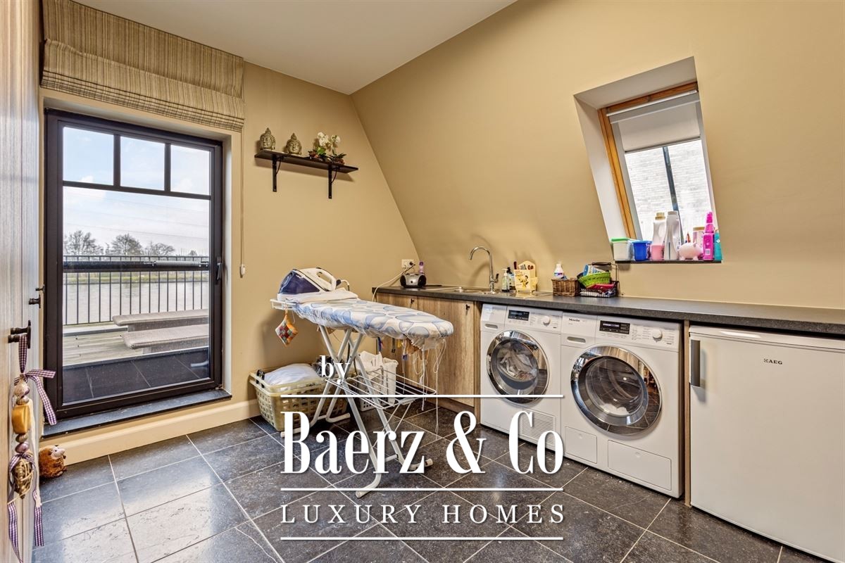 Distinctive amenities such as floor heating, air conditioning in every room, automated sunscreens, and fly screens throughout convey attention to convenience and discretion. This duplex apartment Schilde is move-in ready and defined by its low energy consumption, with an EPC of 87.82 kWh/m². Direct canal access via a private rear gate further underscores its tranquil yet connected setting.
