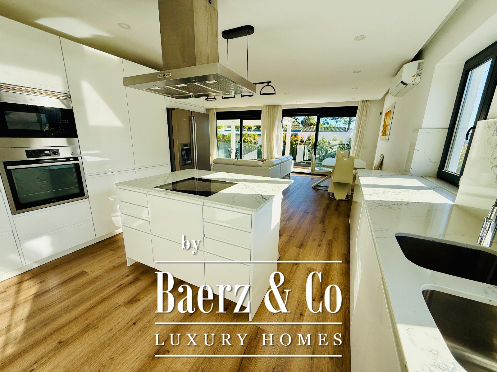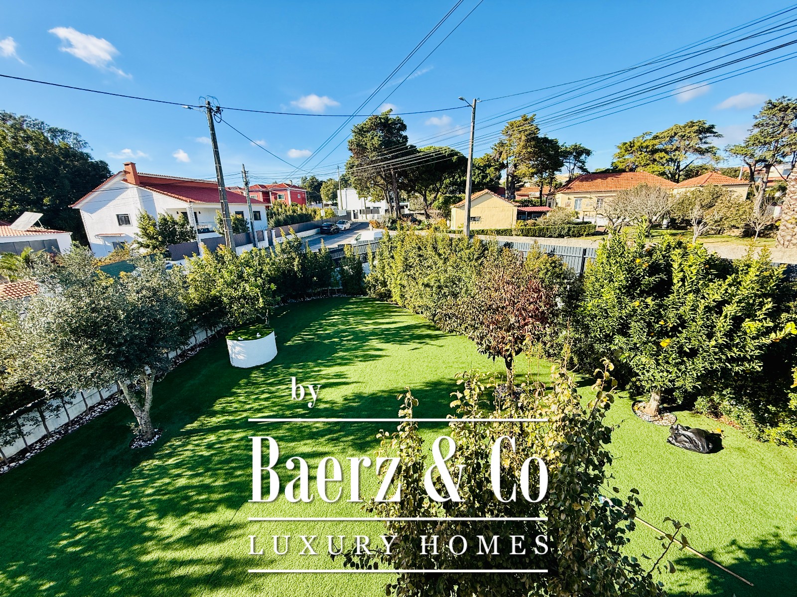 This house Sintra harmonizes contemporary renovation with a sense of privacy and calm, occupying 357 m² on an 868 m² plot. Natural light moves from east to west throughout its three levels, each thoughtfully arranged for both family life and quiet retreat. The ground floor offers a guest bedroom, additional bedroom, storage with a window, a laundry room, and an internal garage for one car. Upstairs, an American-style kitchen with a double refrigerator supports entertaining and everyday rhythm. The adjoining dining and living spaces feature a fireplace and open onto a terrace that leads directly to the heated swimming pool and garden. Two bedrooms on this level provide fitted wardrobes and are served by a well-appointed bathroom. The upper floor holds a principal suite with a walk-in closet and private bath, another suite with wardrobes, and an extra room for flexibility. Air conditioning throughout ensures comfort in every season, with the living spaces quietly set along a tranquil street. From here, Tasis School is ten minutes away, Caisl School twelve minutes, and the center of Lisbon within twenty-five kilometers, connecting daily life to the best of Sintra and the Portuguese capital. This house for sale in Sintra brings together refined practicality with understated elegance.