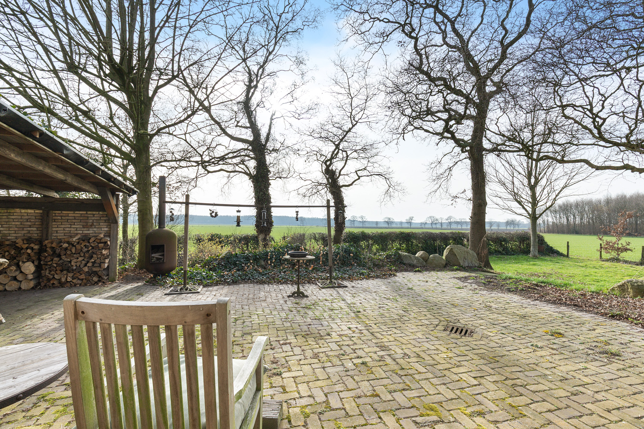 Double French doors open from the kitchen onto the southwest-facing terrace, offering panoramic views across the surrounding meadows and forests. From early morning until late evening this is a wonderful place to enjoy the rich Frisian flora and fauna.