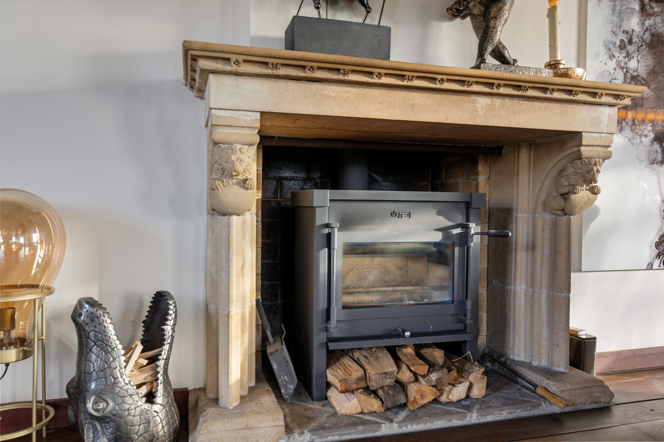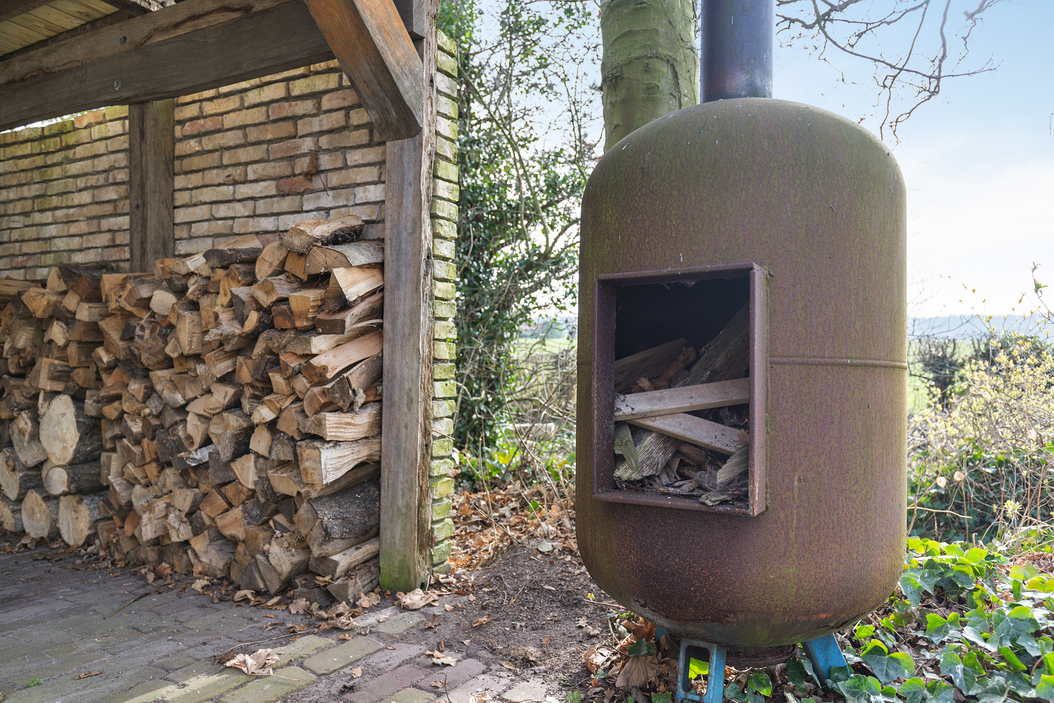 * Wood-burning stove