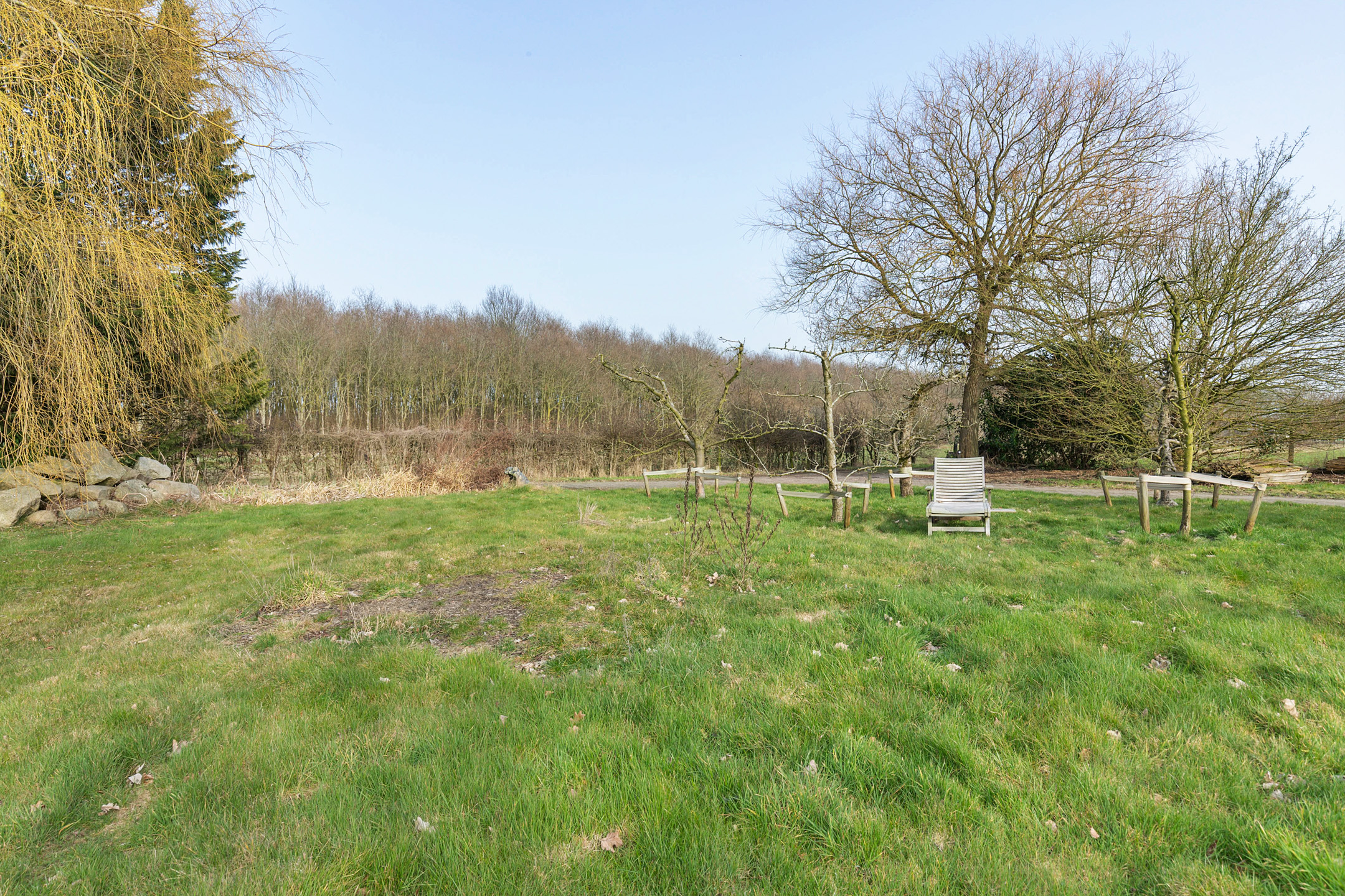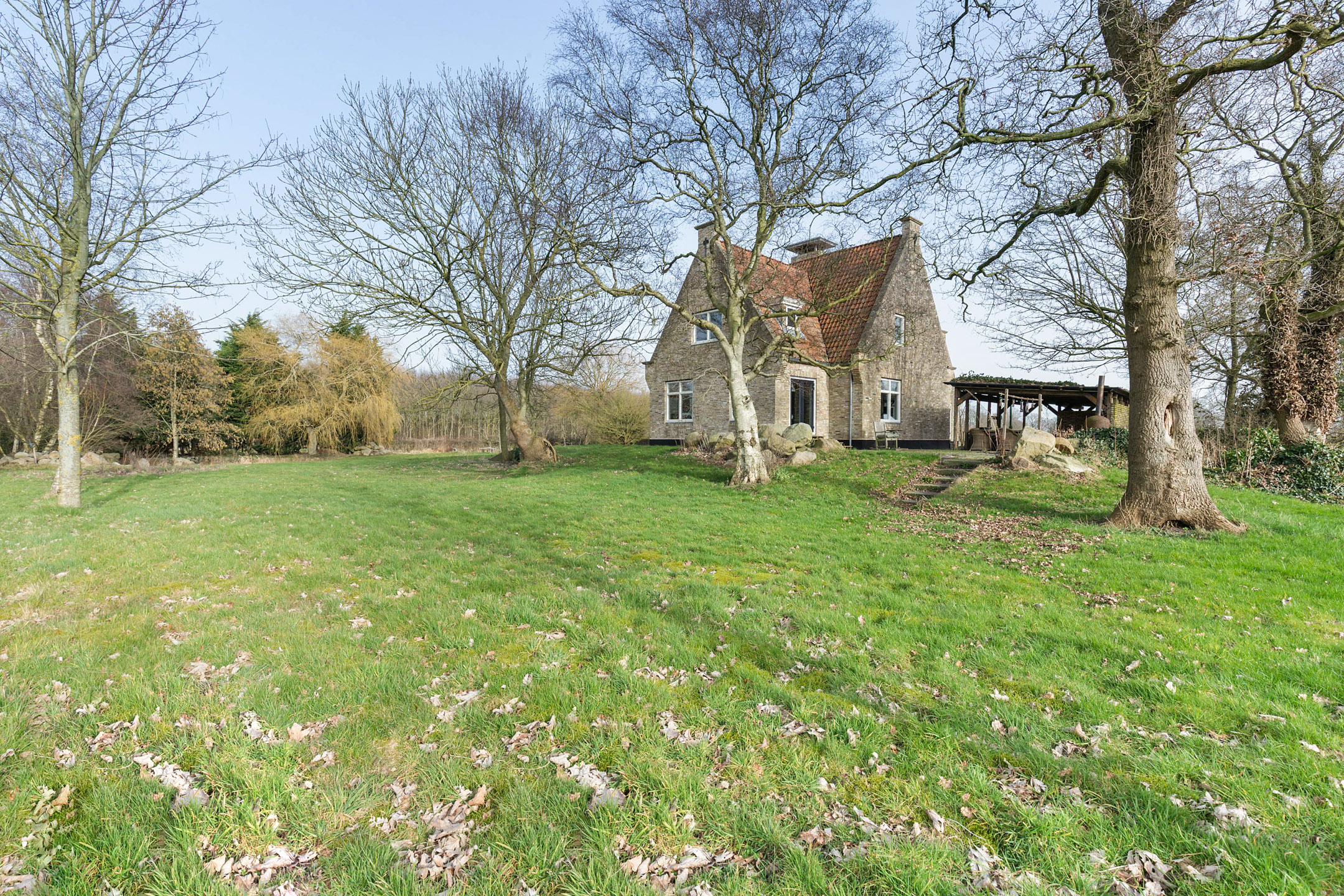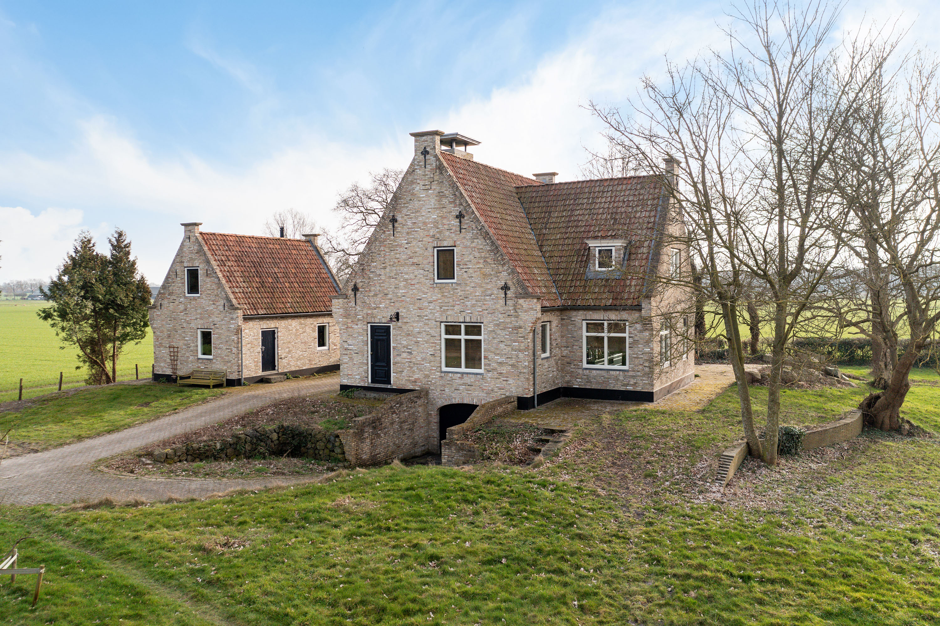 The country house was robustly built on a traditional terp around 2003 and is set on a plot of approx. 4,240 m², surrounded by rolling meadows and bordering woodland. A private driveway of approx. 450 metres leads from the public road to this secluded oasis.