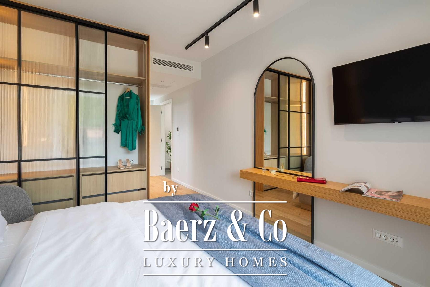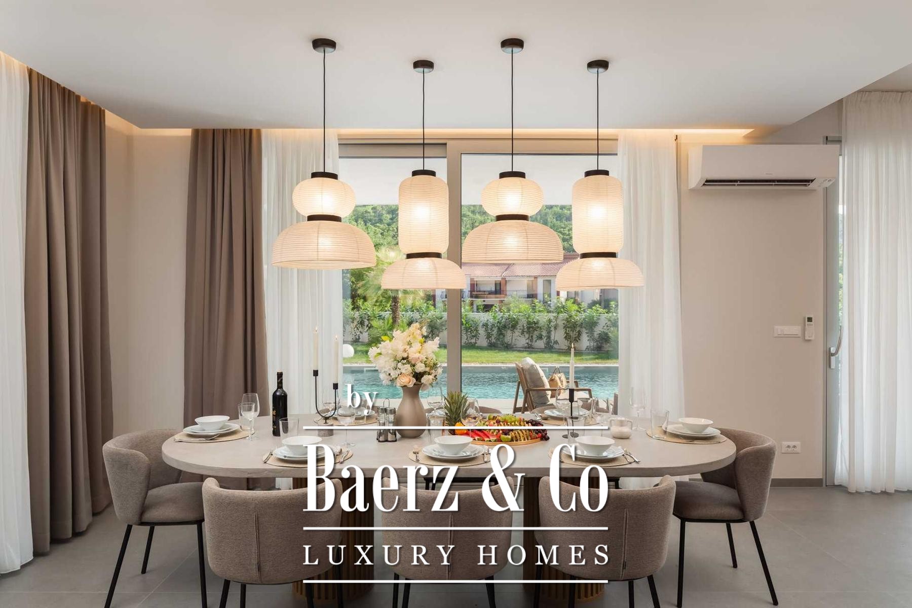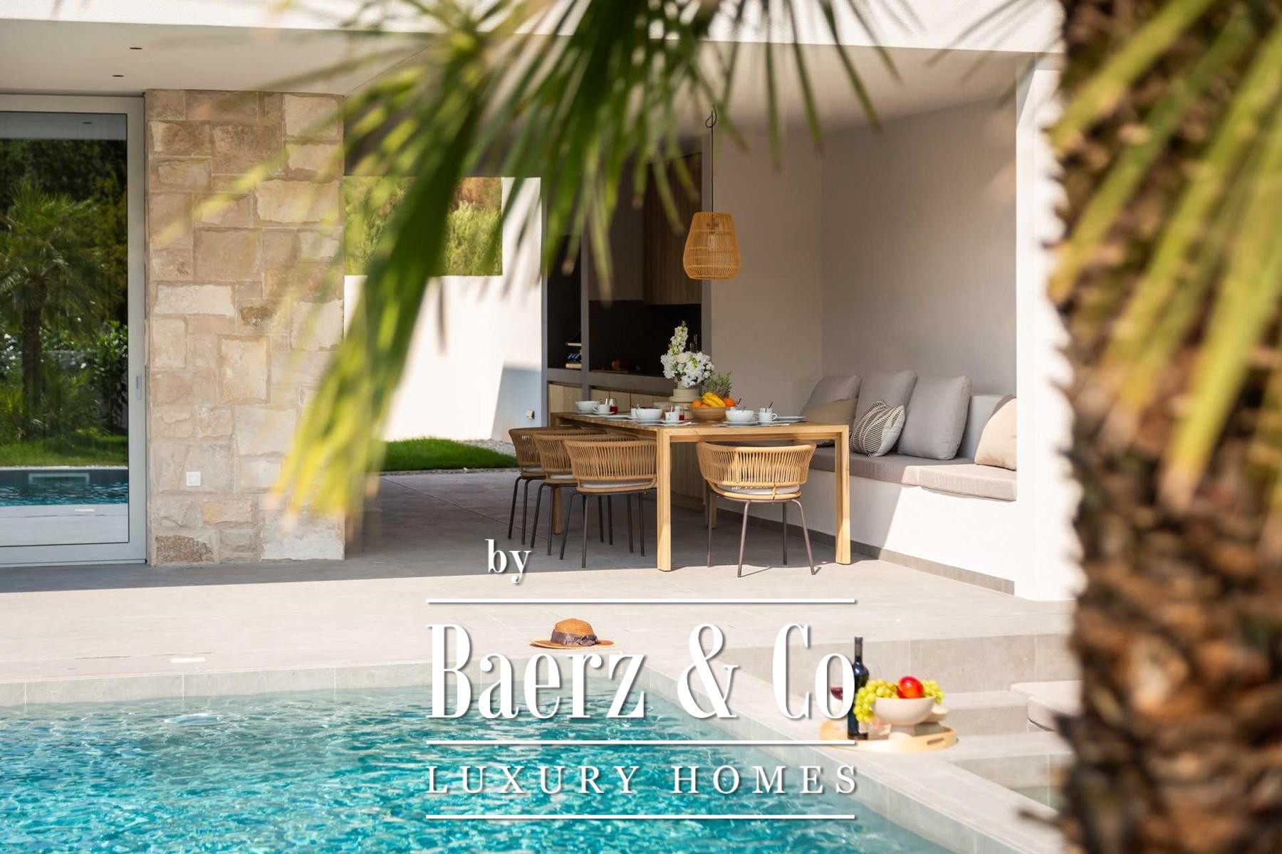 Ascending to the upper floor, four bedrooms each offer en-suite bathrooms, affording personal space and calm. Design details blend seamlessly with high-quality materials, evoking both comfort and clarity. Outdoors, the garden is fully fenced for peace of mind and features a children’s play area, bocce court, and private parking.