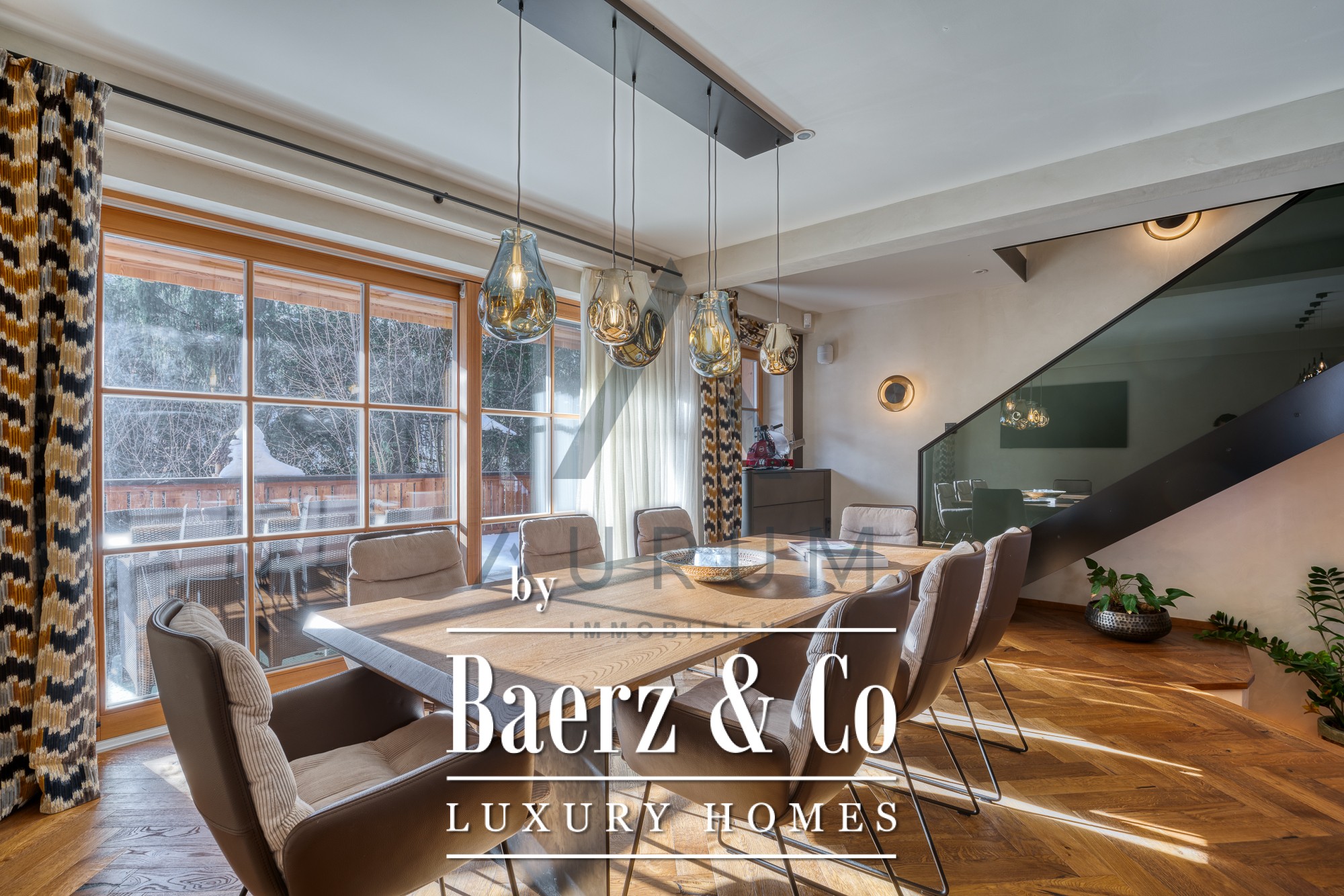 Throughout the interiors, elegant designer furniture, bespoke joinery, and reclaimed timber features reveal a devotion to craftsmanship. The kitchen is fitted with Gaggenau appliances and high-end fixtures, complemented by exclusive hardwood floors and a designer lighting concept. Two distinct apartments within the residence offer complete privacy, each equipped with their own kitchen and bathroom, allowing for flexibility in family living, guest accommodation, or remote work.