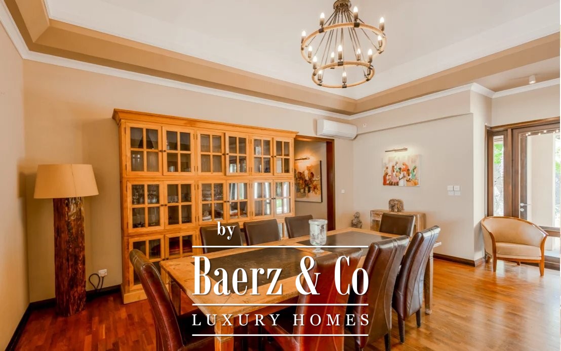 Villa Tamarin with Golf Access embraces a lifestyle defined by quiet exclusivity within a secure estate on Mauritius’s sought-after west coast. This 543 m² property encompasses five suites, each with a private bathroom, dressing room and carefully designed interiors that anticipate comfort and discretion. The double living room flows seamlessly to a dining area and veranda, capturing both natural light and serene views of mountains and carefully landscaped gardens.