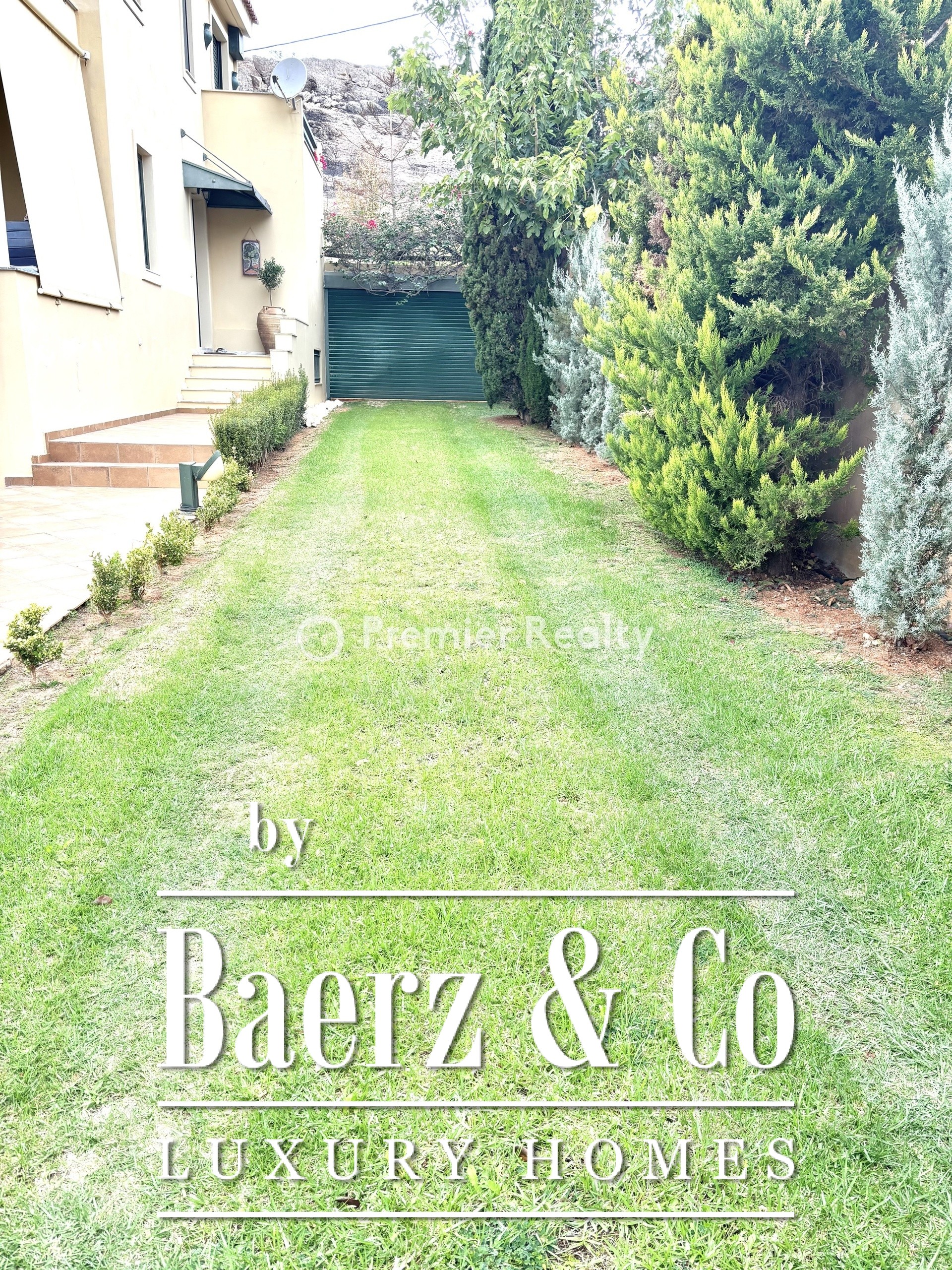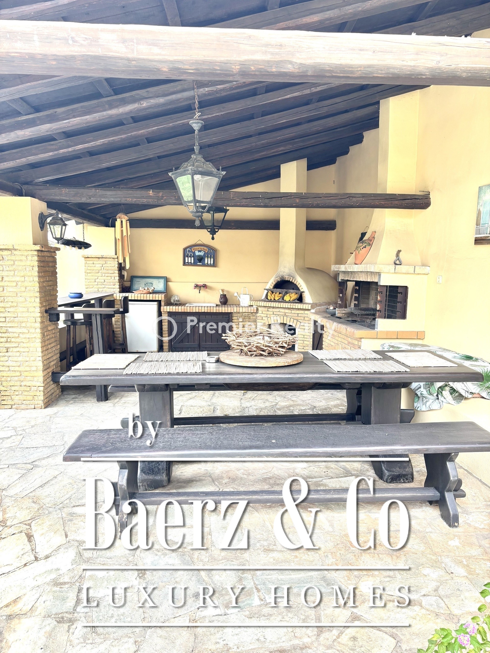 Materials include antique-cut marble, wood floors, and aluminum frames with double-glazed windows. Individual heating per floor, air conditioning, security features, and independent garages for two cars support comfort and security. Manicured gardens, an automatic irrigation system, and a dedicated BBQ area invite outdoor gatherings in the Mediterranean air.