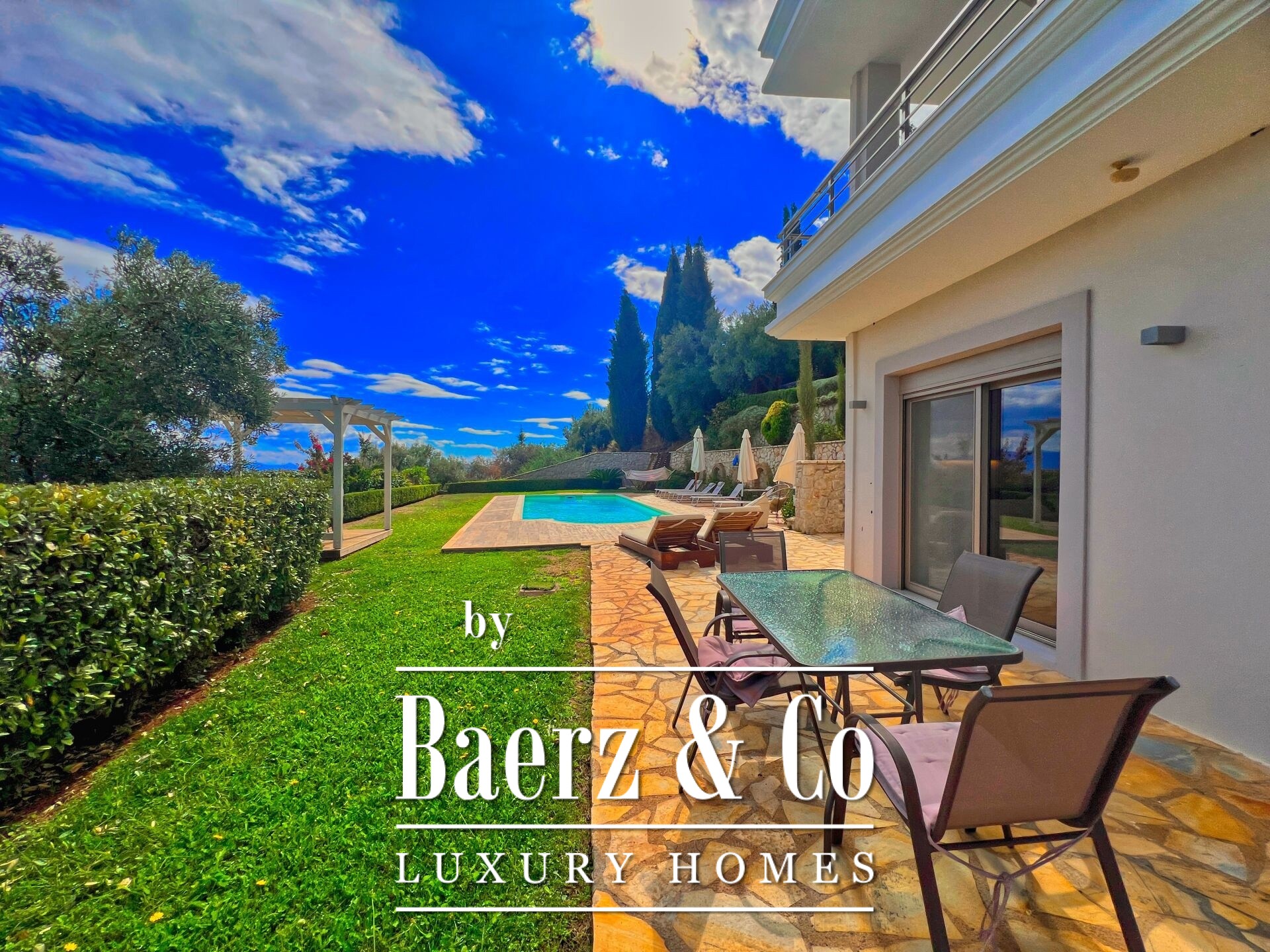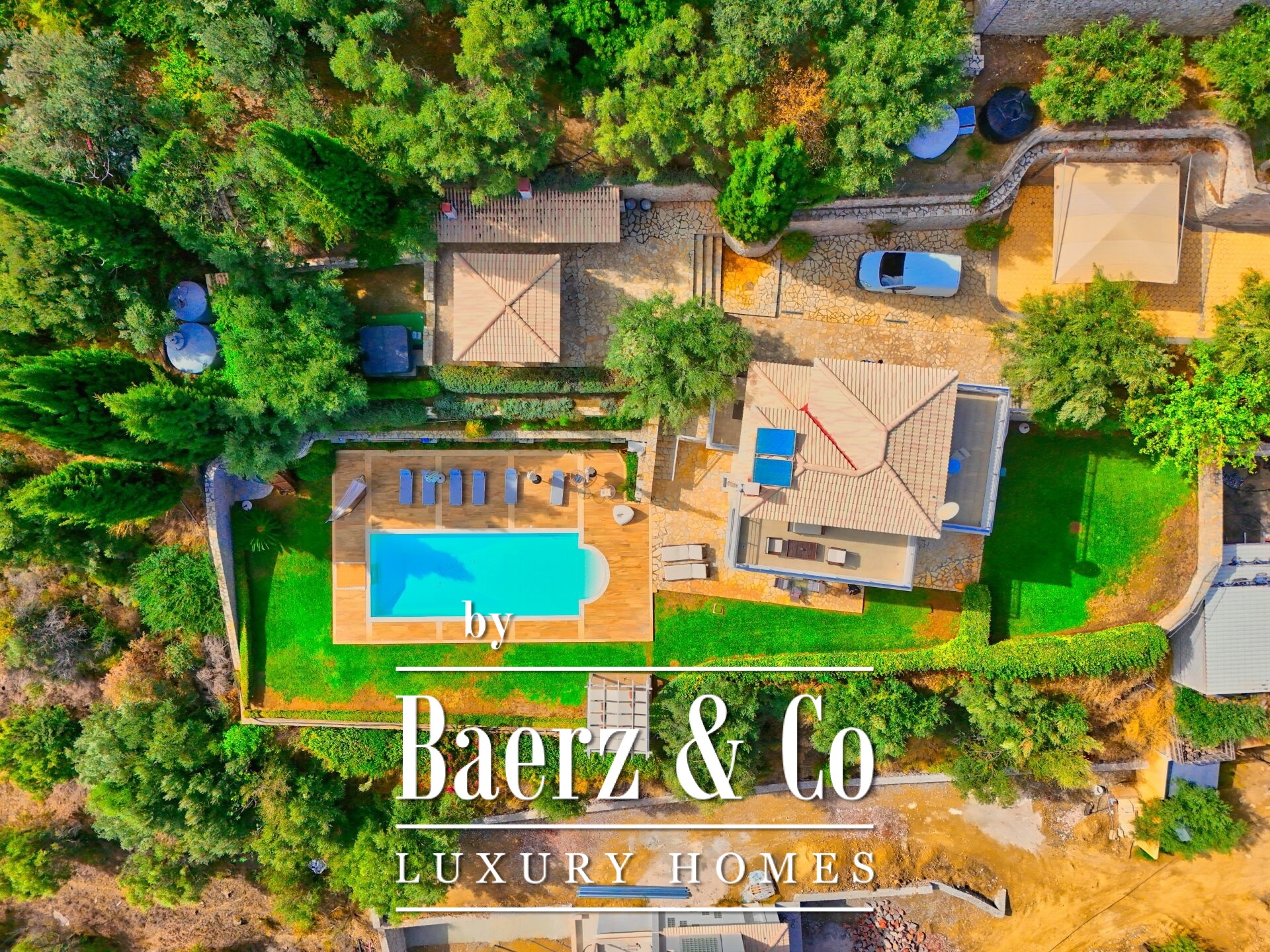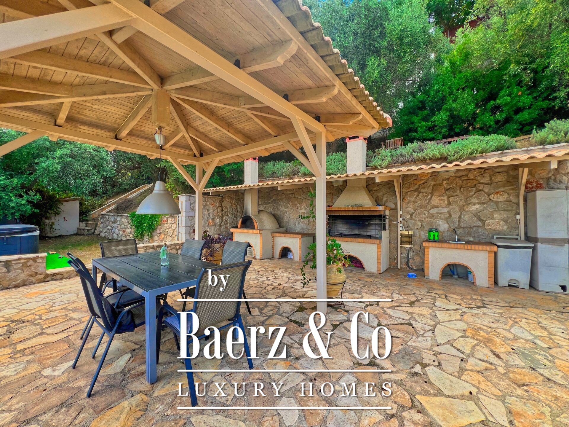 Delivered fully furnished and equipped, the villa’s features include autonomous electric roller shutters, individual heating options, air conditioning, security alarm and double-glazed insulation. Landscaped exteriors reveal stone paths, mature trees and a lush garden, complemented by an inviting pool area with expansive views. An outdoor living room, shaded by a roof, is enhanced by a jacuzzi, BBQ and oven, forming a discreet space for relaxation or entertaining.