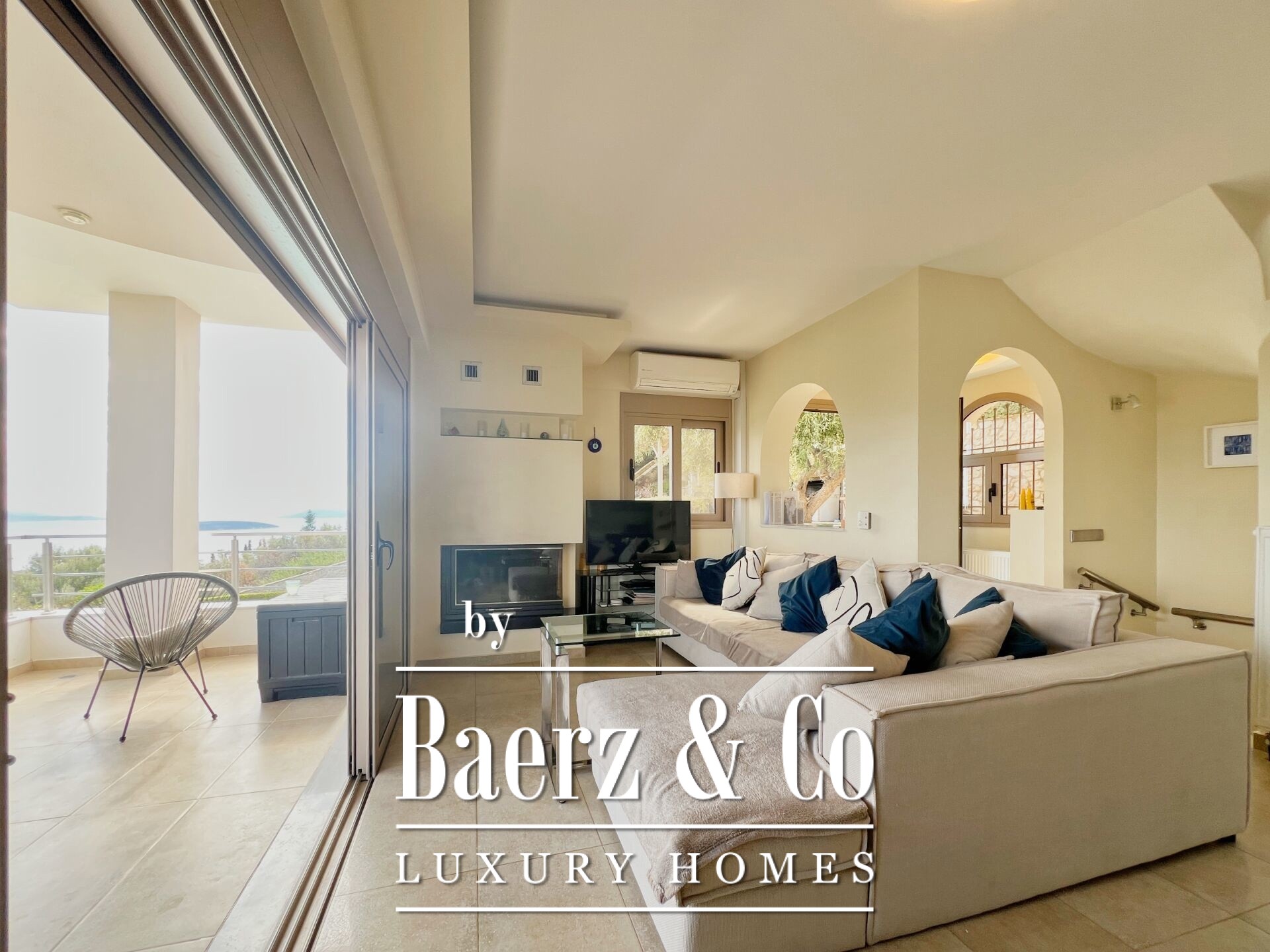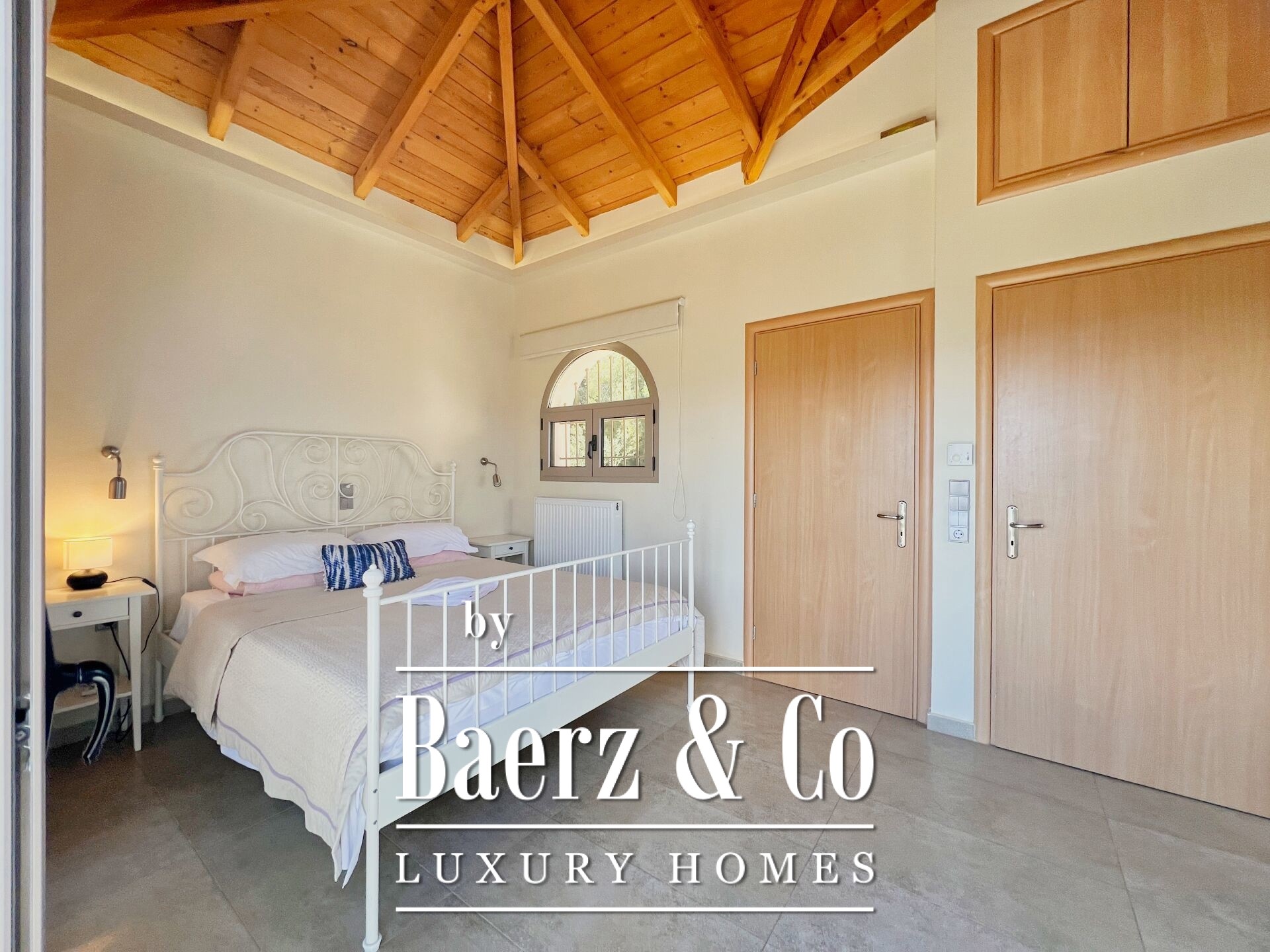 This luxury villa Tolo sits on one of the area’s highest points, commanding panoramic views of the sea, Spetses island, the mountains and open countryside. The property stretches over 165 m² across three thoughtfully arranged levels, offering a sense of seclusion while remaining just 2 km from the sandy beach and local shops.