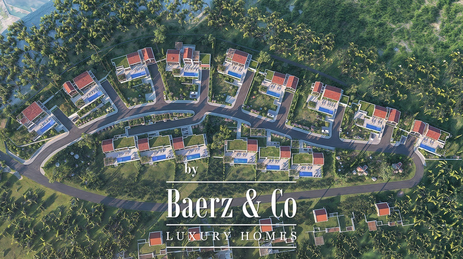 Positioned 12 km from Tivat’s centre, 2 km from the Adriatic shoreline, and within reach of international airports, the villa balances serenity with access. Porcelain tiles in stone and terrazzo effect, bespoke wood veneer wardrobes, bespoke kitchens with Miele appliances, and branded sanitary ware by Laufen and Catalano define an atmosphere where every touchpoint is considered. Wrap-around balconies extend living outward, while access to the neighbourhood’s amenities, from pool and lounge to private parking, reinforces a sense of community.