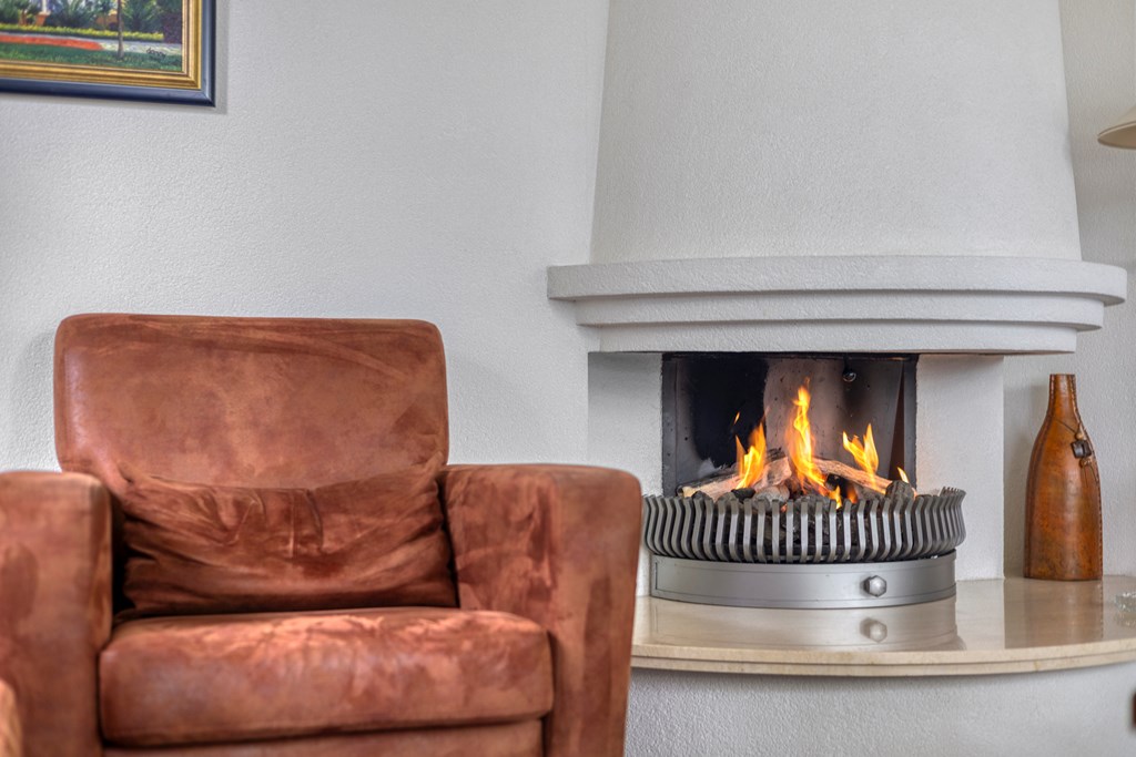 The inviting living room is notably bright thanks to the large bay window at the front and the wide side window. The seating area around the open fireplace offers a cozy spot for long evenings with family or friends. Toward the rear there is space for a large dining area next to the open kitchen. The kitchen features a U-shaped layout with a peninsula, cream-colored fronts, dark worktop, and full suite of built-in appliances: induction hob, slide-out extractor, combi-microwave, oven, fridge-freezer, and dishwasher. Adjoining is the practical utility room with laundry connections, storage, and a back door to the terrace. Finally, there is an additional room on the ground floor—ideal as a home office, hobby room, or playroom. From this room you have internal access to the bathroom—with shower, toilet, and washbasin—convenient for those wishing to live on one level or to host guests.
