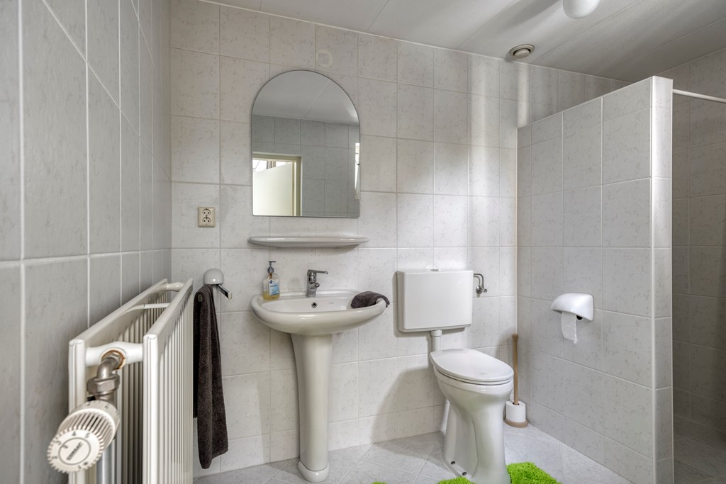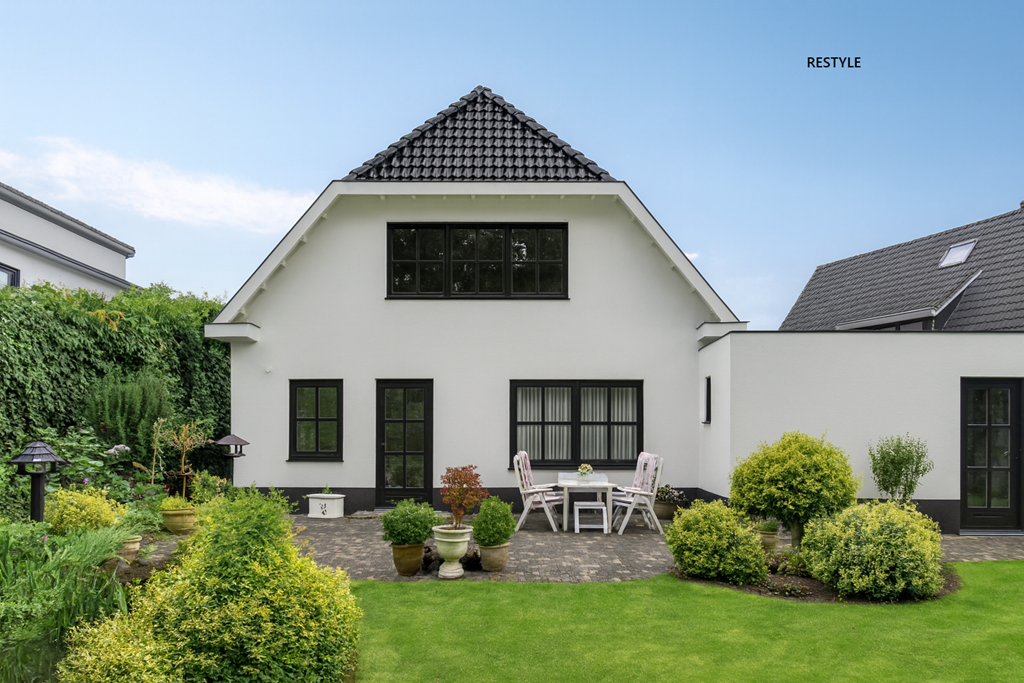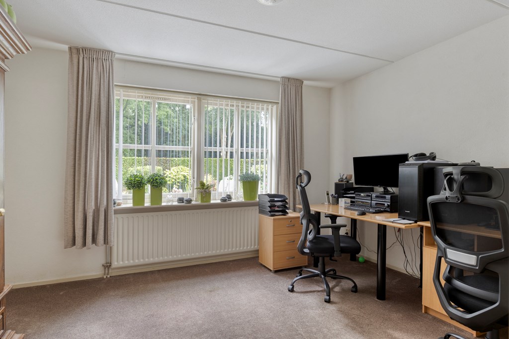 The garden all around is immaculately maintained. At the front, the wide driveway offers parking for multiple cars; under the carport your car is sheltered. From here you also have direct access to the garage, with overhead door and side door—a particularly spacious and multifunctional area of no less than 57 m². Ideal for daily use, safely storing bicycles, carrying out DIY projects, or setting up a large work or hobby room with its own entrance. The rear garden is a delight: a large sun terrace with decorative paving, manicured lawn, a pond, and borders full of color and variety. Thanks to mature hedges, trees, and the woodland to the rear, you’ll enjoy peace and privacy. Whether you want to have breakfast outdoors, read under the tree, or host guests on a summer evening—you can do it all here. With direct access from the living room, utility room, and garage, the garden is also extremely practical in layout.