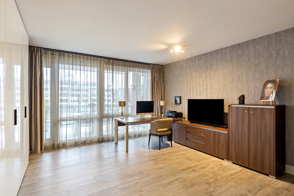 The living area forms the heart of the home and is impressive in size, with seamless transitions between living, cooking, and dining. The kitchen is a statement in itself, featuring a generous cooking island, luxury appliances, and a finish that is both stylish and timeless. The bedrooms are equally spacious and thoughtfully designed, with a master bedroom that feels like a private suite. Add to this the two balconies, a spacious storage room, and two private parking spaces in the underground garage, and you will understand: this is turnkey living at a high level, in the exclusive Rembrandt Résidence complex.