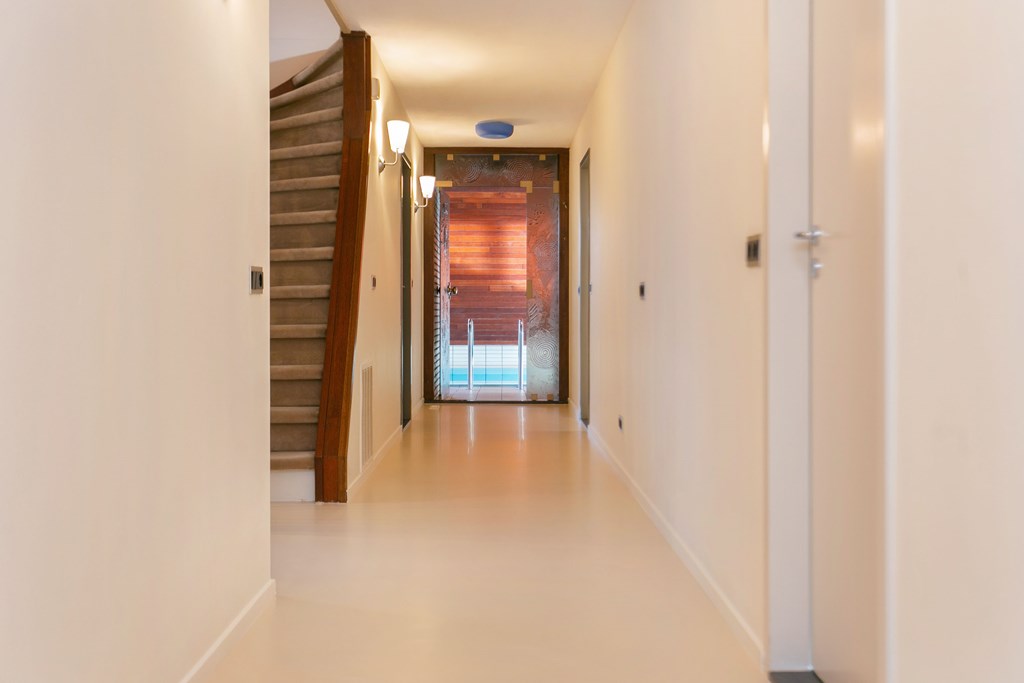 Natural light fills each room, from the open-plan living area with full-height windows on three sides to the six peaceful bedrooms arranged for flexibility and tranquility. The integration of indoor and outdoor spaces is seamless, with sliding doors opening directly to a mature wraparound garden and a 65 m² terrace oriented south and west, providing both sunlight and privacy. A 9 by 3.8 metre indoor swimming pool, finished with Alerce wood ceilings and stainless-steel details, anchors the home’s central axis, providing year-round vitality via a Bosch jet stream and direct access to the terrace.