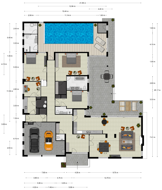 Villa Veenendaal with indoor pool offers a composition of generous proportions, privacy, and comfort seldom encountered. This residence comprises 459 m² of living space, conceived primarily on the ground floor, on a 1,221 m² plot in the De Salamander neighbourhood, just steps from the Utrechtse Heuvelrug forest and within easy reach of Veenendaal’s amenities.