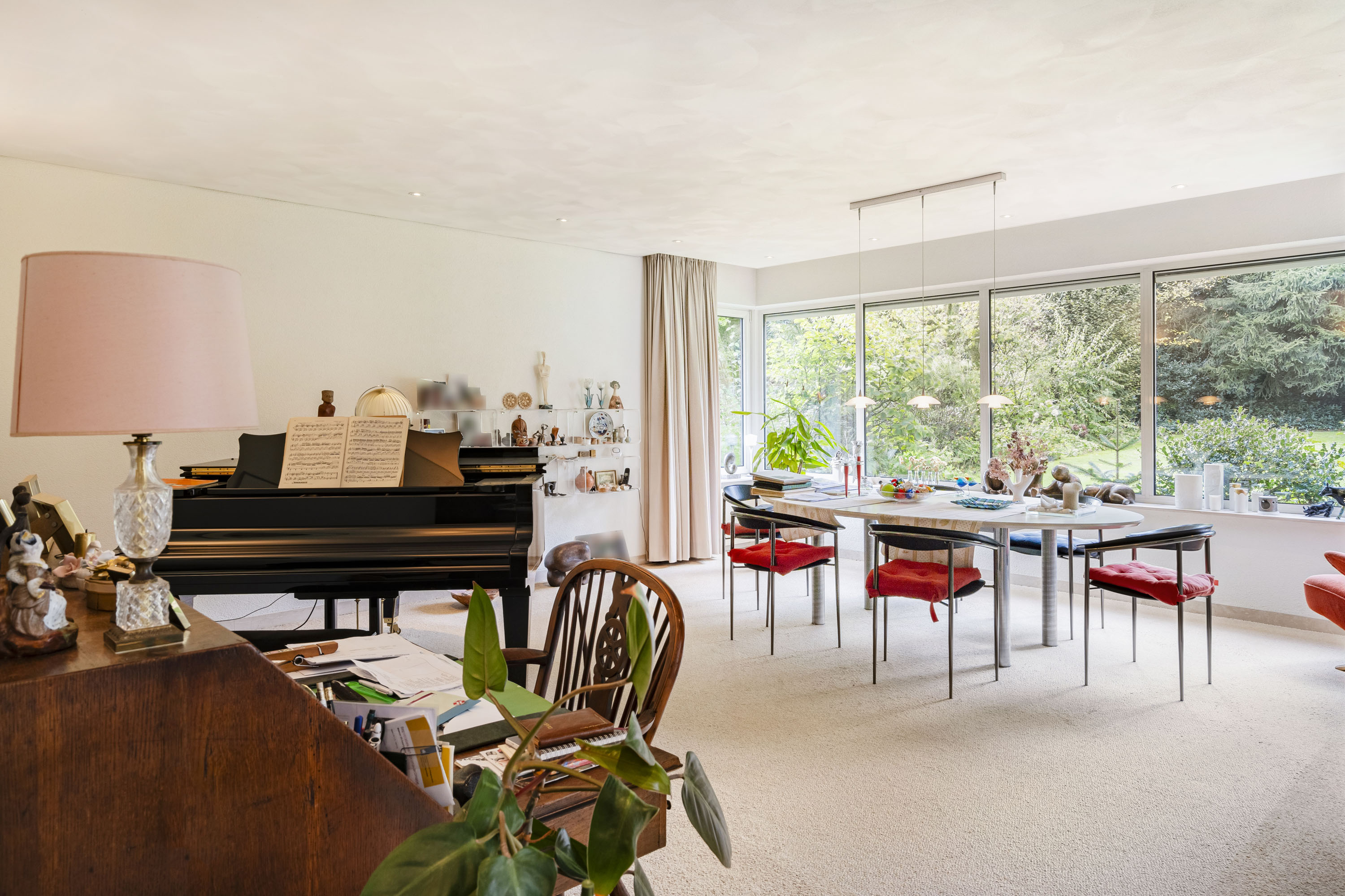 Located in a fantastic and unique location, this exceptionally spacious detached villa features an indoor swimming pool with jet stream.** In addition, the property includes a large wine cellar, a garage for two cars, four bedrooms, and an expansive living area (lounge, dining room, study, and open kitchen) offering stunning views of the beautifully landscaped, sunny garden with plenty of privacy. The property boasts a variety of terraces, borders, and lawns overlooking a gently sloping garden. The surrounding garden ensures complete privacy and includes mature hedges, shrubs, and trees. A stately driveway completes the picture.