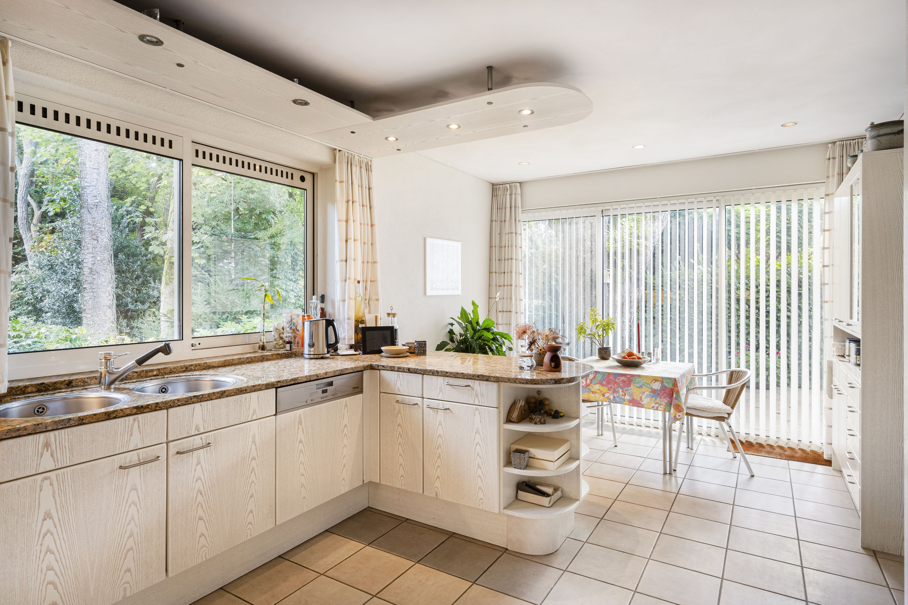 In total peace and privacy, you can enjoy the generous space, the spectacular garden, and the remarkable architecture of this home. The villa is located at the foot of the Posbank nature reserve and on the edge of a charming residential area, just minutes away from the center of Velp with numerous amenities. Major roads are easily accessible, and the airports of Düsseldorf and Amsterdam are both approximately an hour’s drive away.