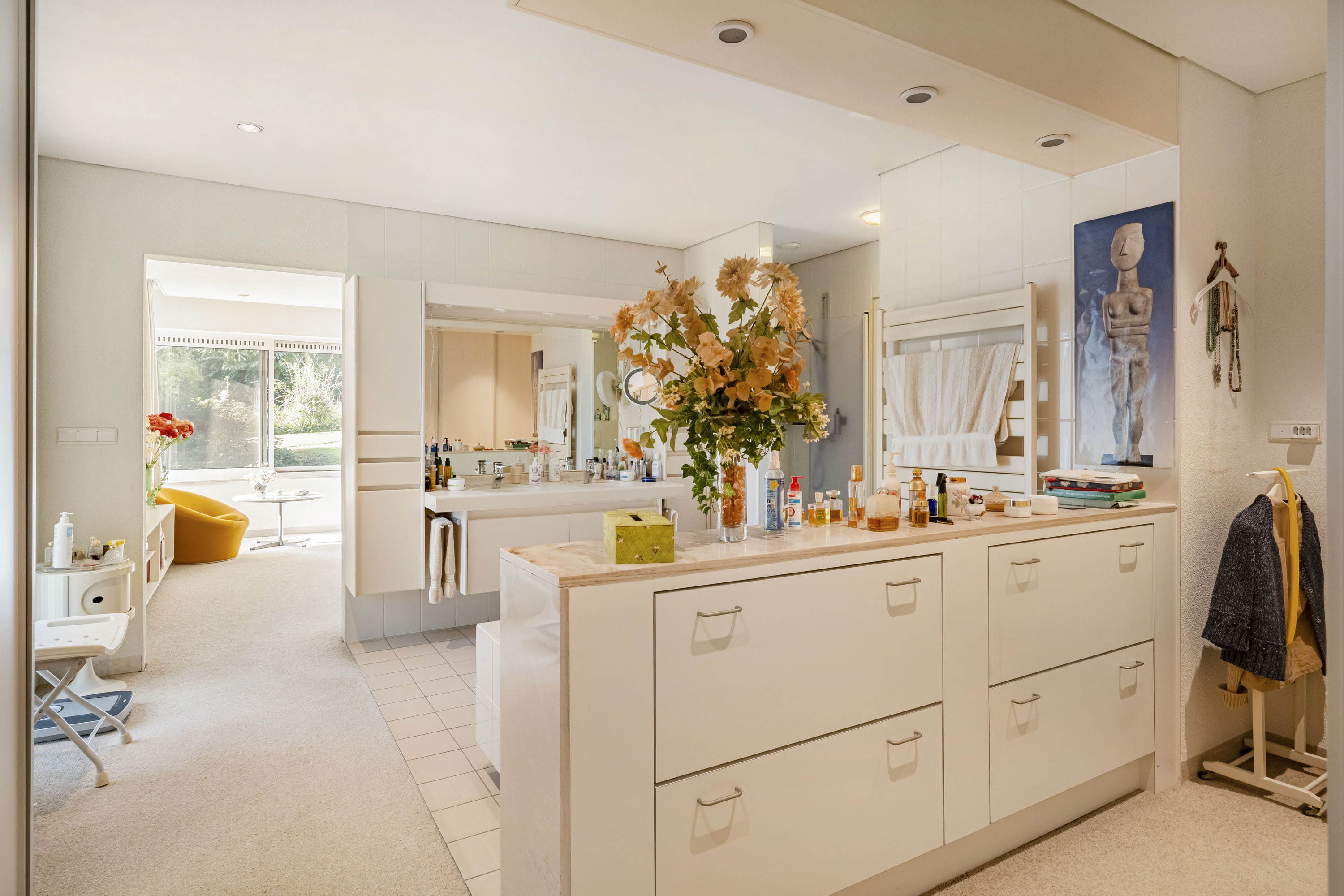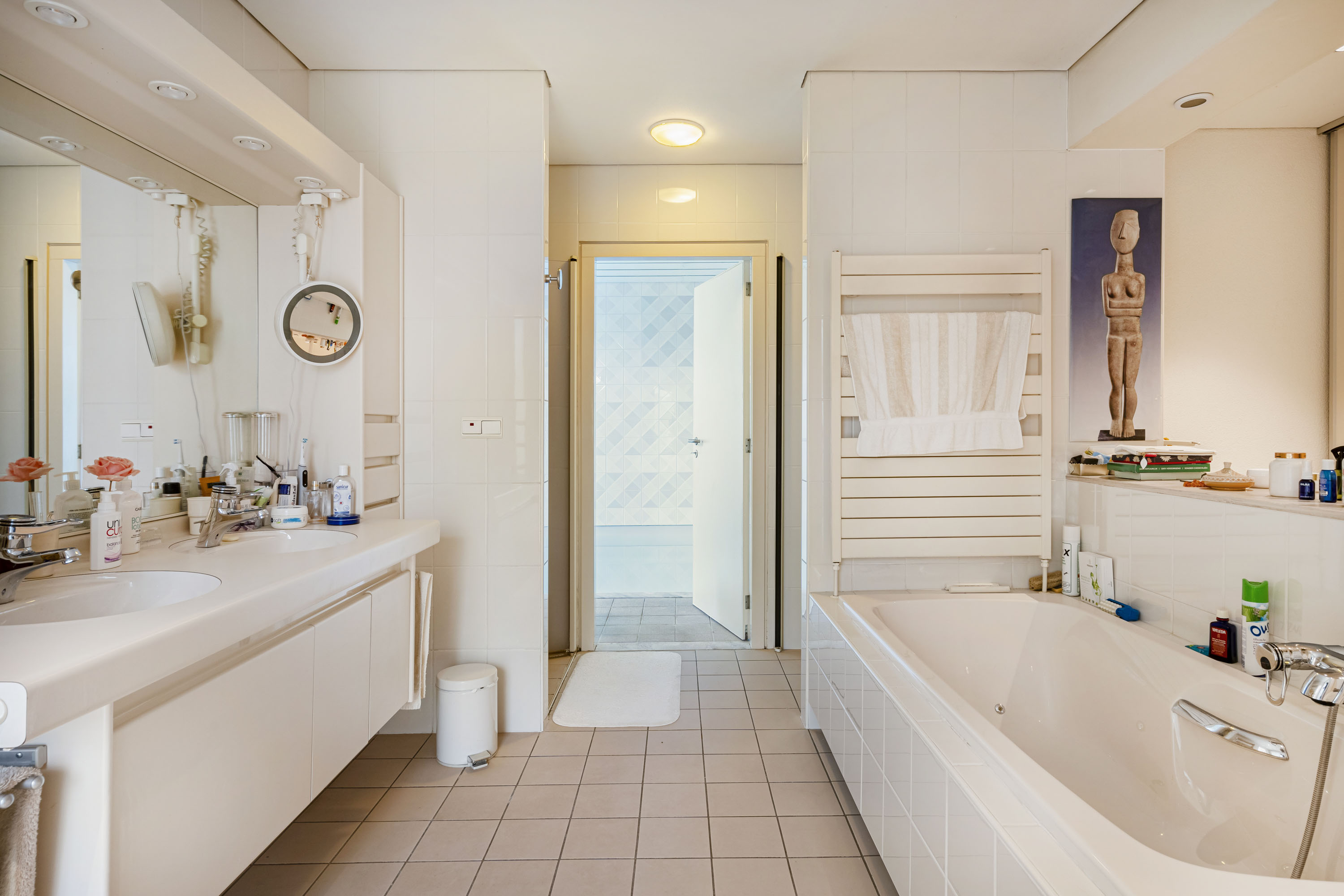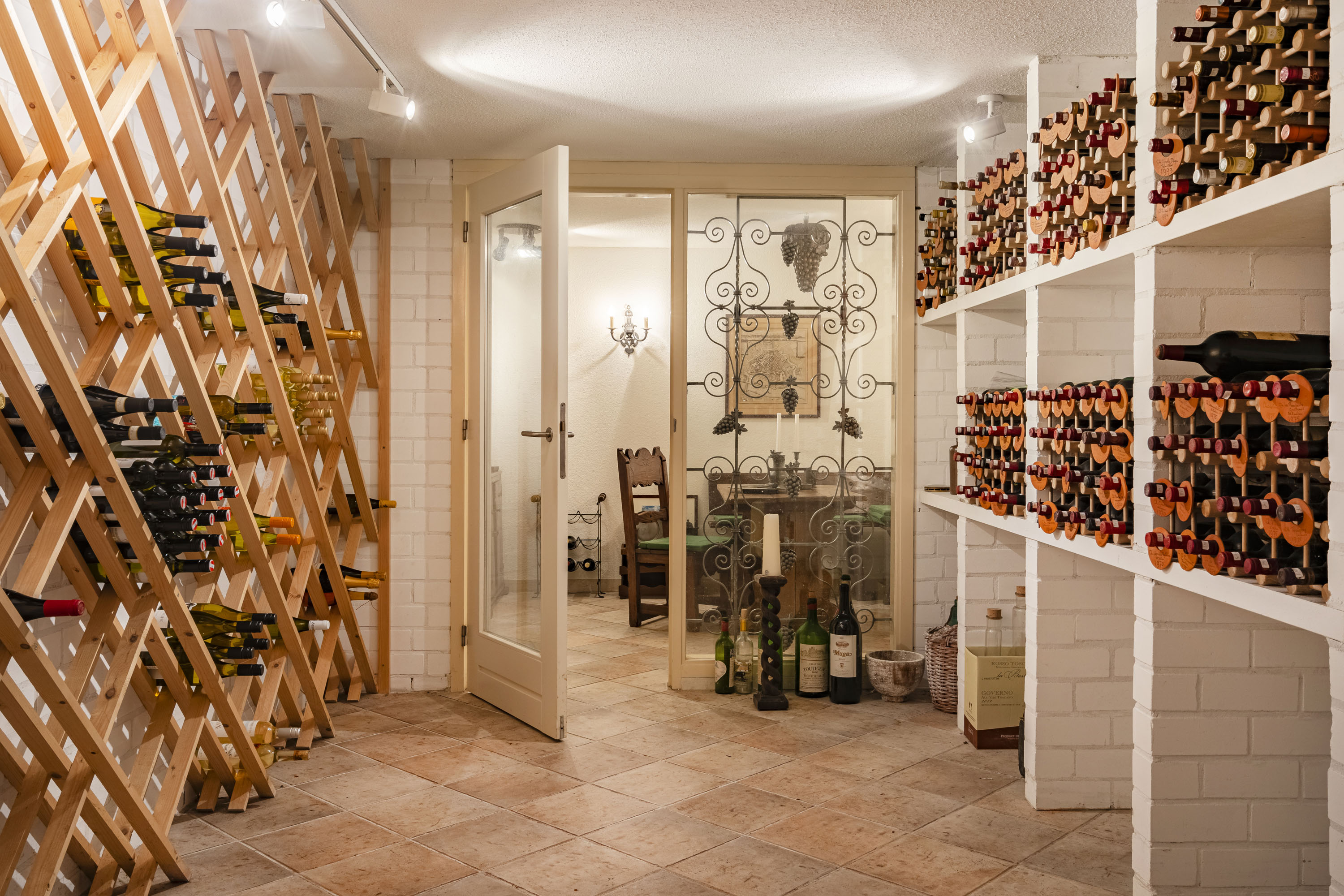 This spacious basement includes a large garage with space for two cars, an electric door, and a charging station for an electric vehicle. There is also a beautiful wine cellar, several storage rooms, a technical room housing the heat pumps for both the house and the indoor pool with jet stream. Residents can access the house directly from the basement.