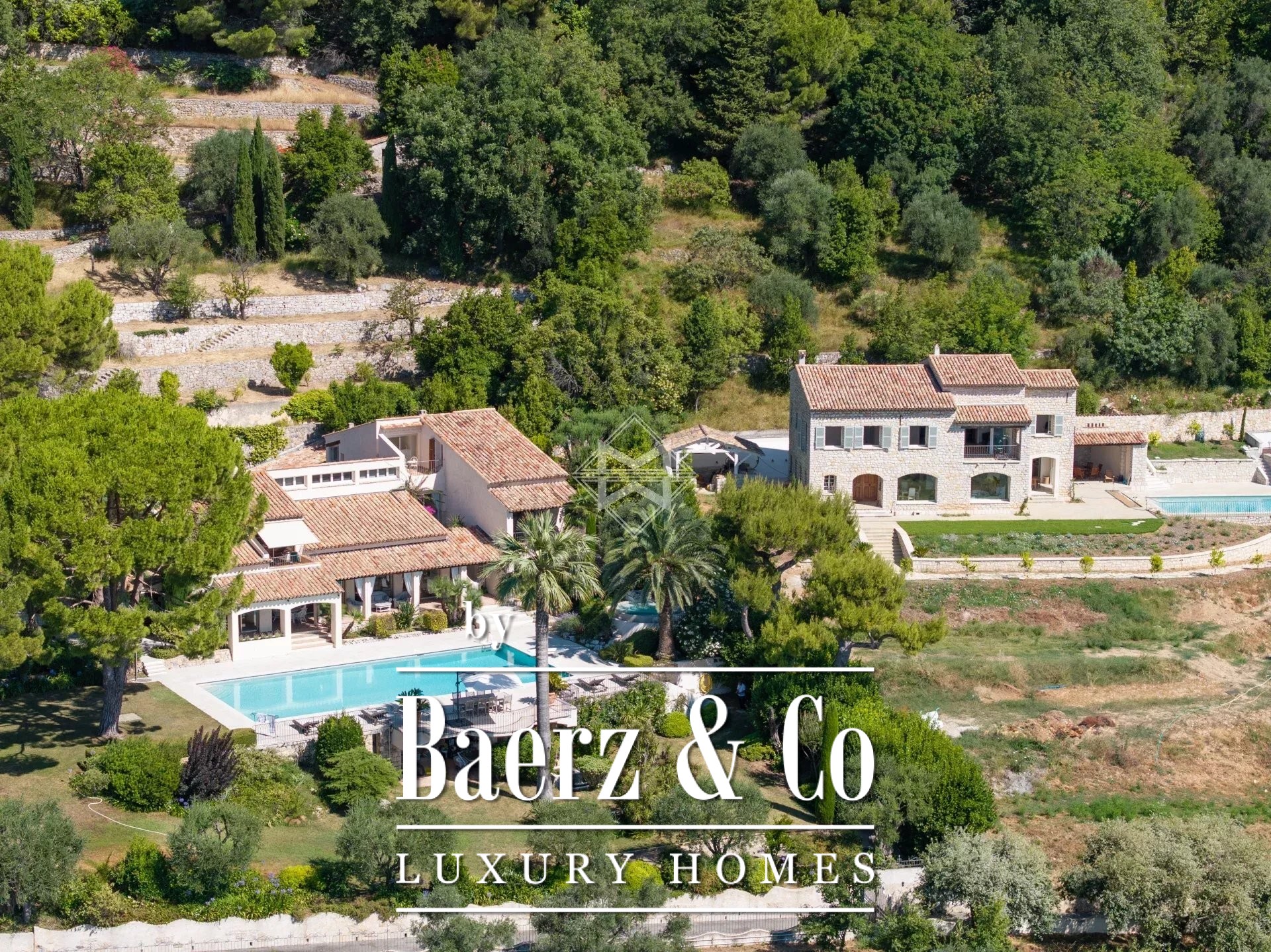 Property Vence occupies nearly 25,000 m² on the heights above the French Riviera, presenting a living environment of rare calm and poise. In this privileged enclave, three independent villas are discreetly set among eight levels of terraced landscape designed by Jean Mus, with mature olive groves producing annual oil, two orchards, and broad vistas sweeping from Monaco to the Esterel massif. The estate’s 775 m² of living space encompasses 25 rooms, including 12 bedrooms and 12 bathrooms, distributed between a main Provençal manor, a traditional stone farmhouse, and a renovated guest house.
