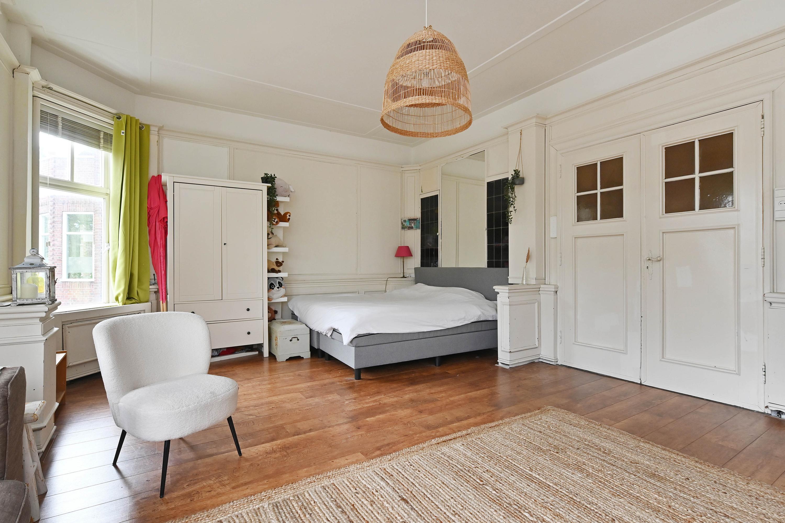 Spacious (ca. 285m2) end-of-terrace house with 7 bedrooms, 2 bathrooms, garden on 3 sides, and a driveway set on a wide, tree-lined street in historic Voorburg.