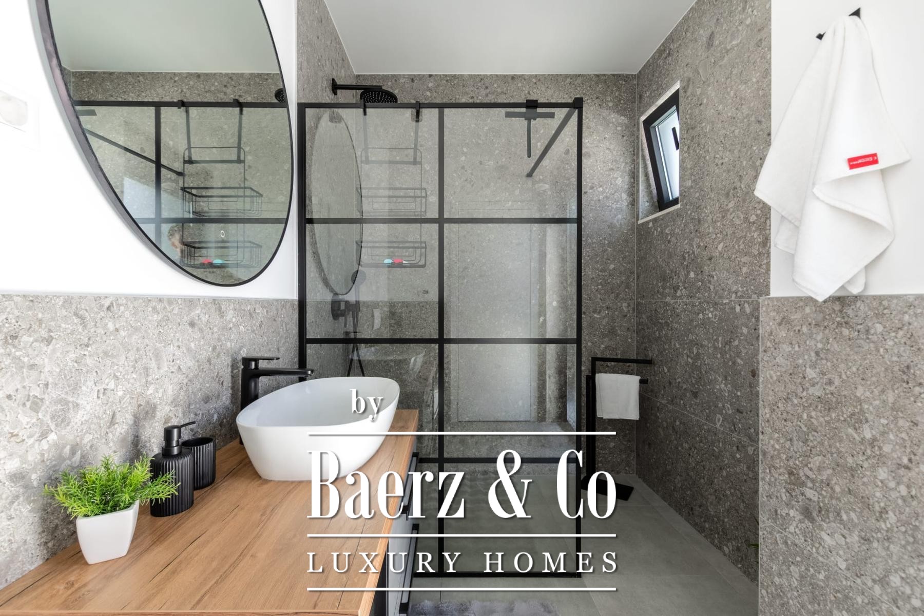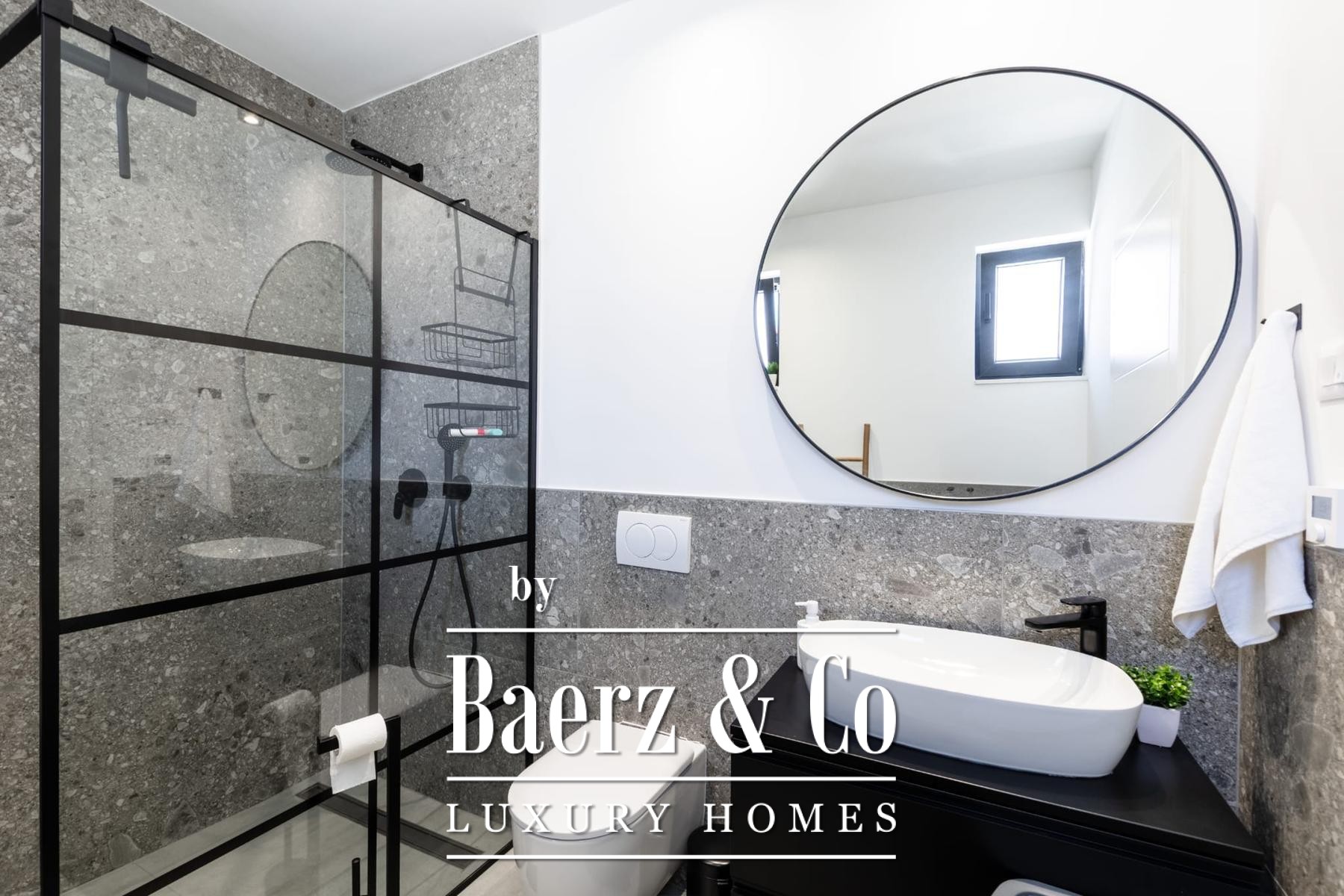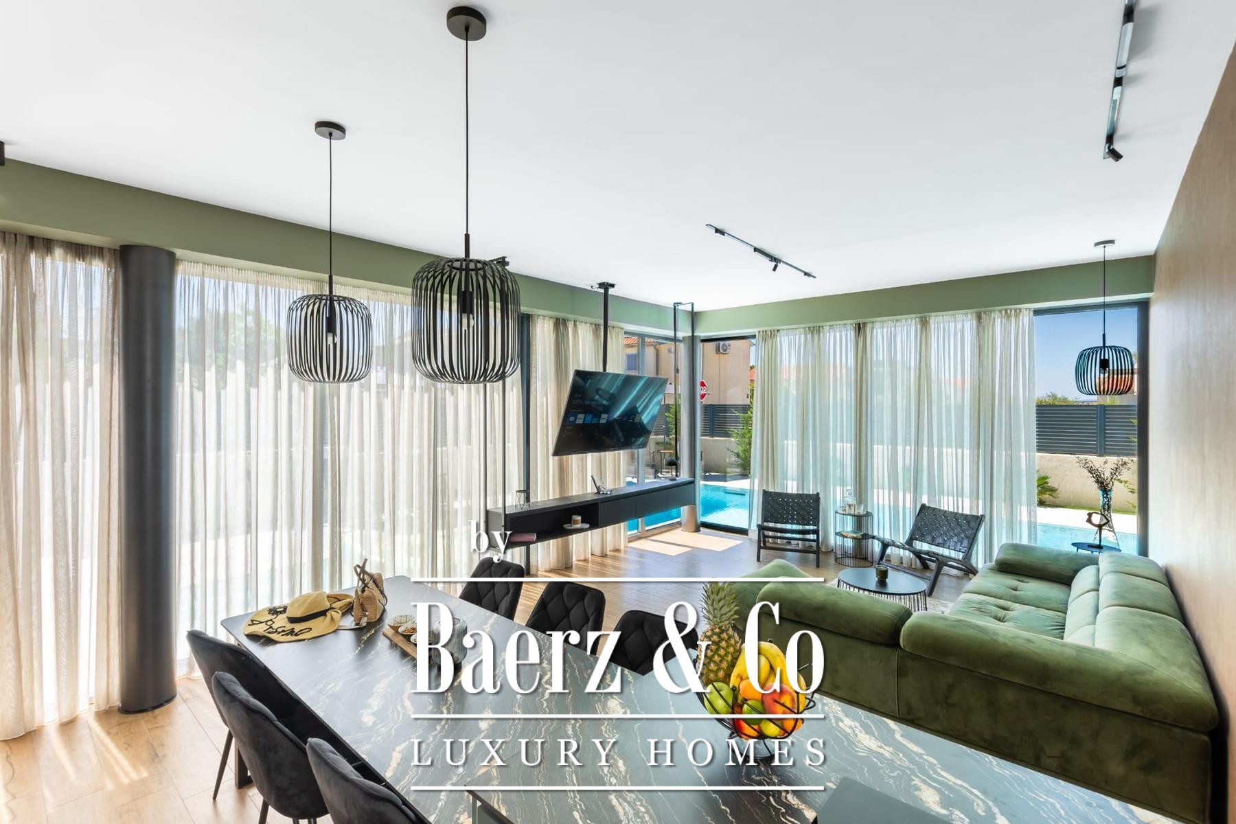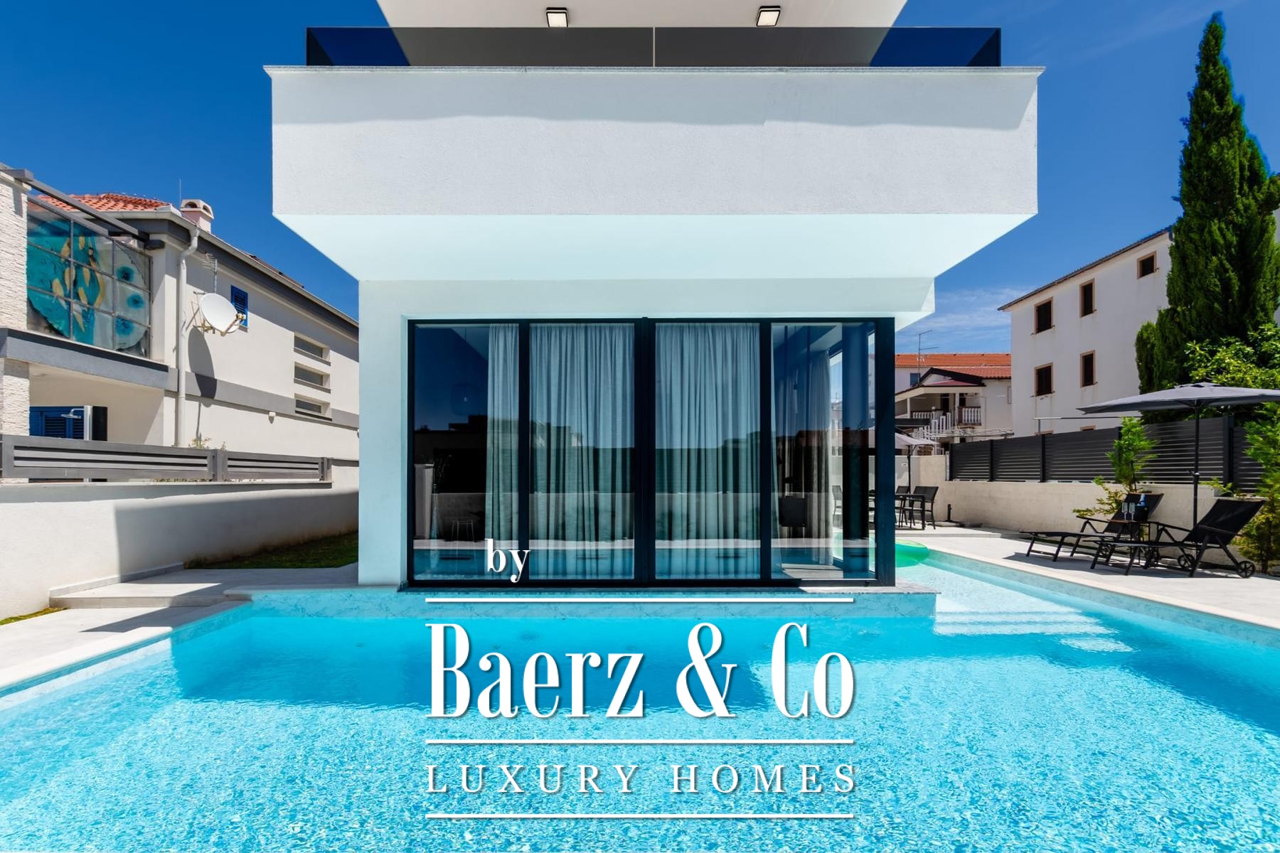 We present to you this beautiful and fully equipped villa with a swimming pool in a small town near Zadar, Vrsi, which is only 150 meters from the sea, the well-maintained local beach and all other necessary amenities key to a quality life or vacation.The villa has a total net area of 160m2, while its gross area is 261m2. It consists of a ground floor, first floor and a spacious roof terrace with a jacuzzi and a summer kitchen.On the ground floor of 92.40m2 there is a comfortable kitchen with a dining room, a living room, a bathroom, a hallway and a staircase leading to the 1st floor.The first floor of 96.5m2 consists of three bedrooms with en suite bathrooms, one of which is a master bedroom, and a hallway and a balcony of 13.9m2.The beautiful roof terrace of 72.80m2 is equipped with a jacuzzi and a summer kitchen, and offers a sea view that will enchant you.In