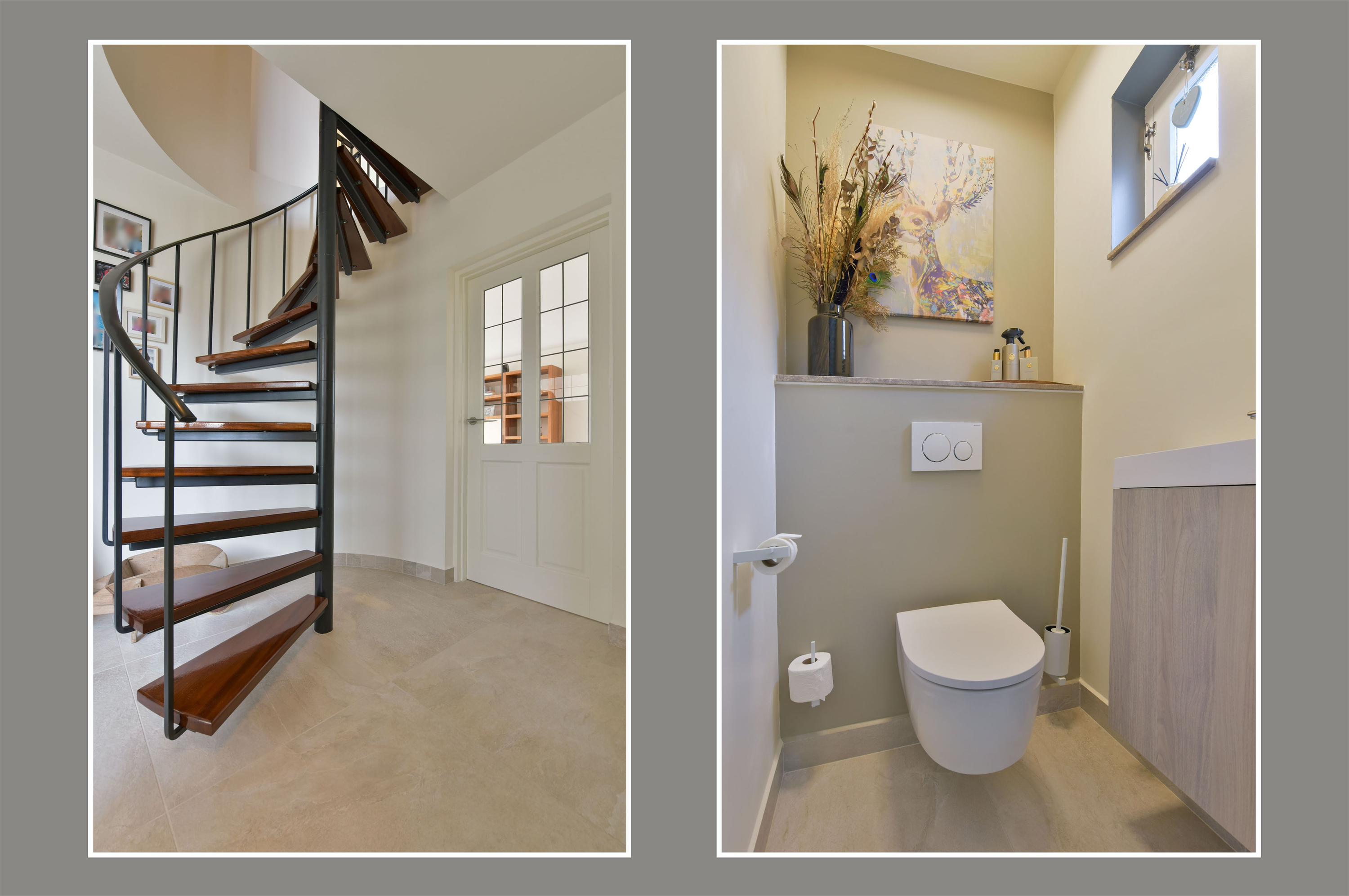 From the central hall, you also reach the multifunctional room, formerly the garage. This space is now fully integrated into the home and offers numerous possibilities, such as a home office, practice space, or additional living area. Here you will also find a modern bathroom (2022), equipped with double rain showers, a washbasin, toilet, and designer electric towel radiators. This makes having a bedroom on the ground floor entirely feasible.