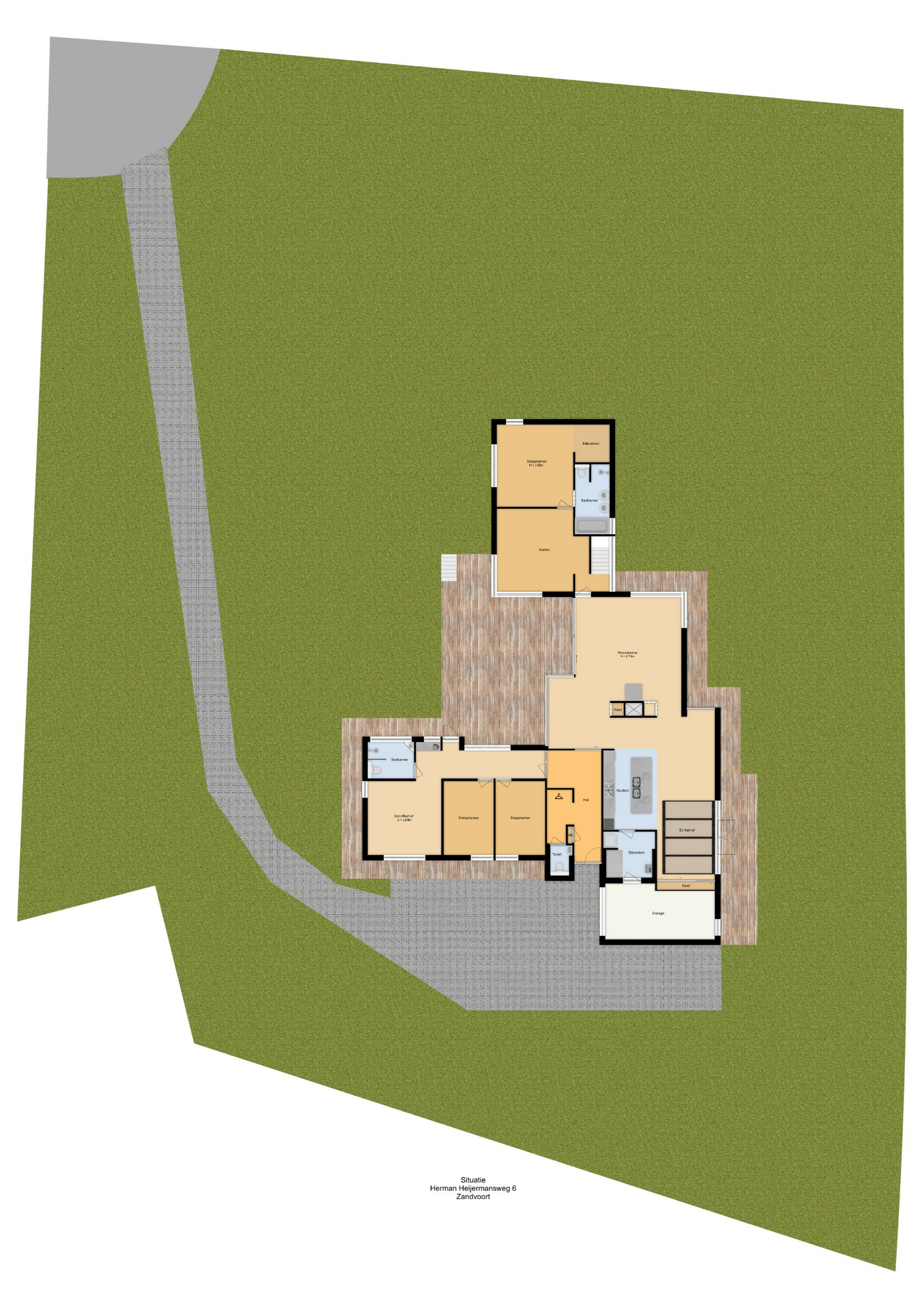 Semi bungalow Zandvoort offers privacy, peace and space amid the dunes, situated on a generous plot of 3530m² between Zandvoort and Bentveld. This well maintained, free standing residence was built in 1973 and provides a living area of 290m², with 6 bedrooms and 3 bathrooms, ensuring ample comfort and flexibility.