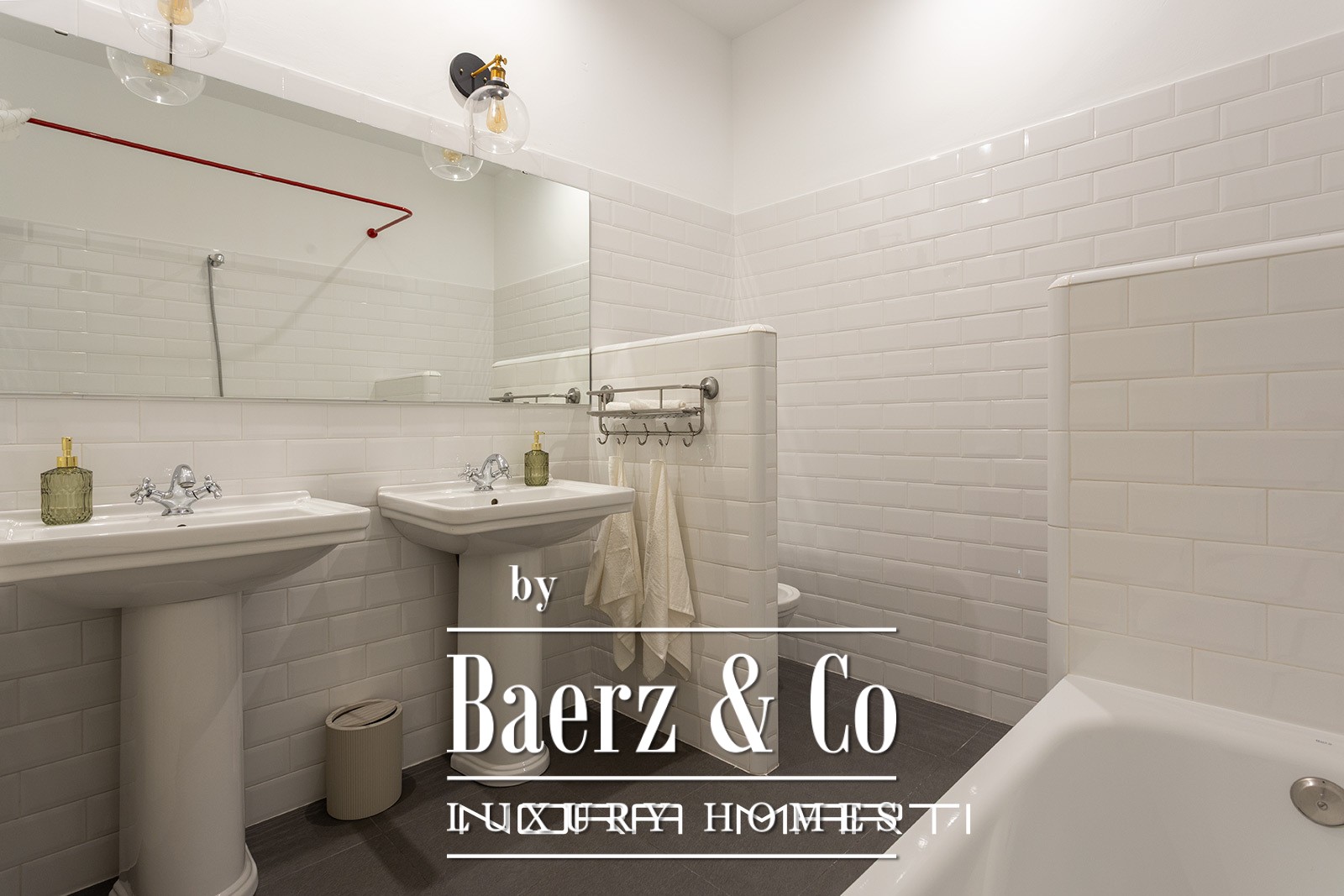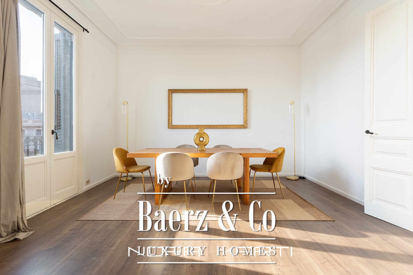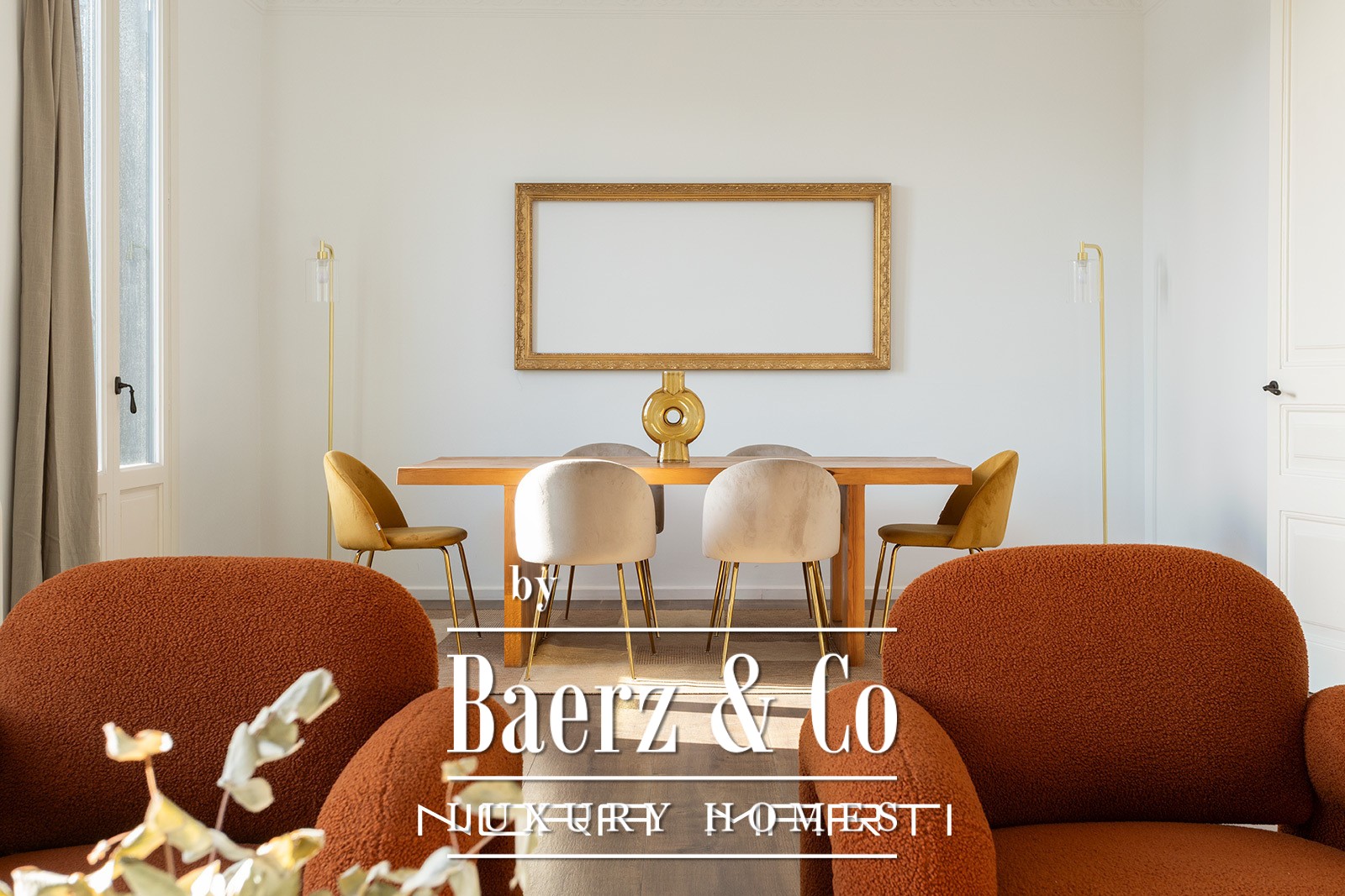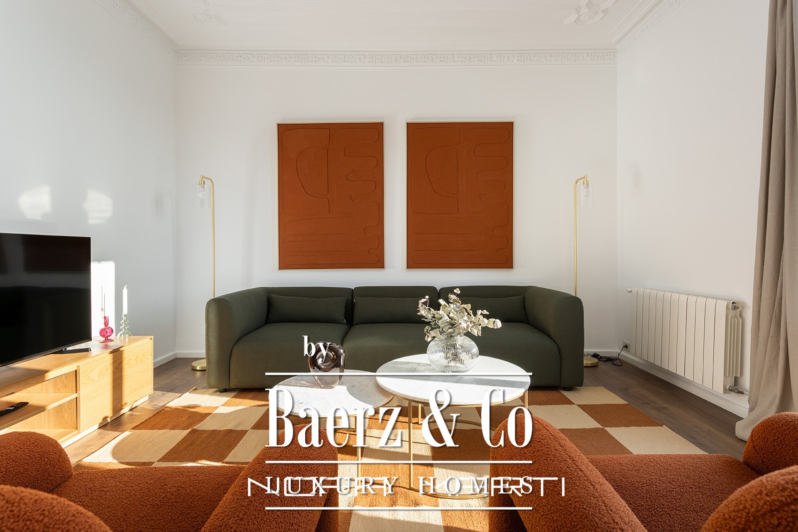 Con una superficie de 152 m², la vivienda ha sido completamente renovada, combinando sensibilidad contemporánea con una estructura histórica. En el interior, el mobiliario moderno y refinado aporta cohesión y claridad, marcando el tono para una vida urbana discreta. La distribución consta de tres dormitorios —uno doble y dos individuales—, así como dos baños, garantizando el equilibrio entre zonas privadas y sociales. Los grandes ventanales del salón, característicos de su época, inundan el espacio de luz natural, realzada por la favorable orientación y el calor del suelo de parquet. La cocina, completamente equipada y con espacio para desayunar, añade comodidad al día a día.