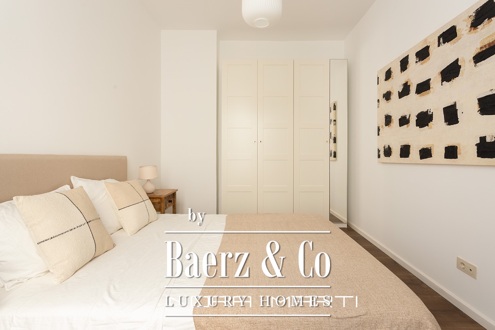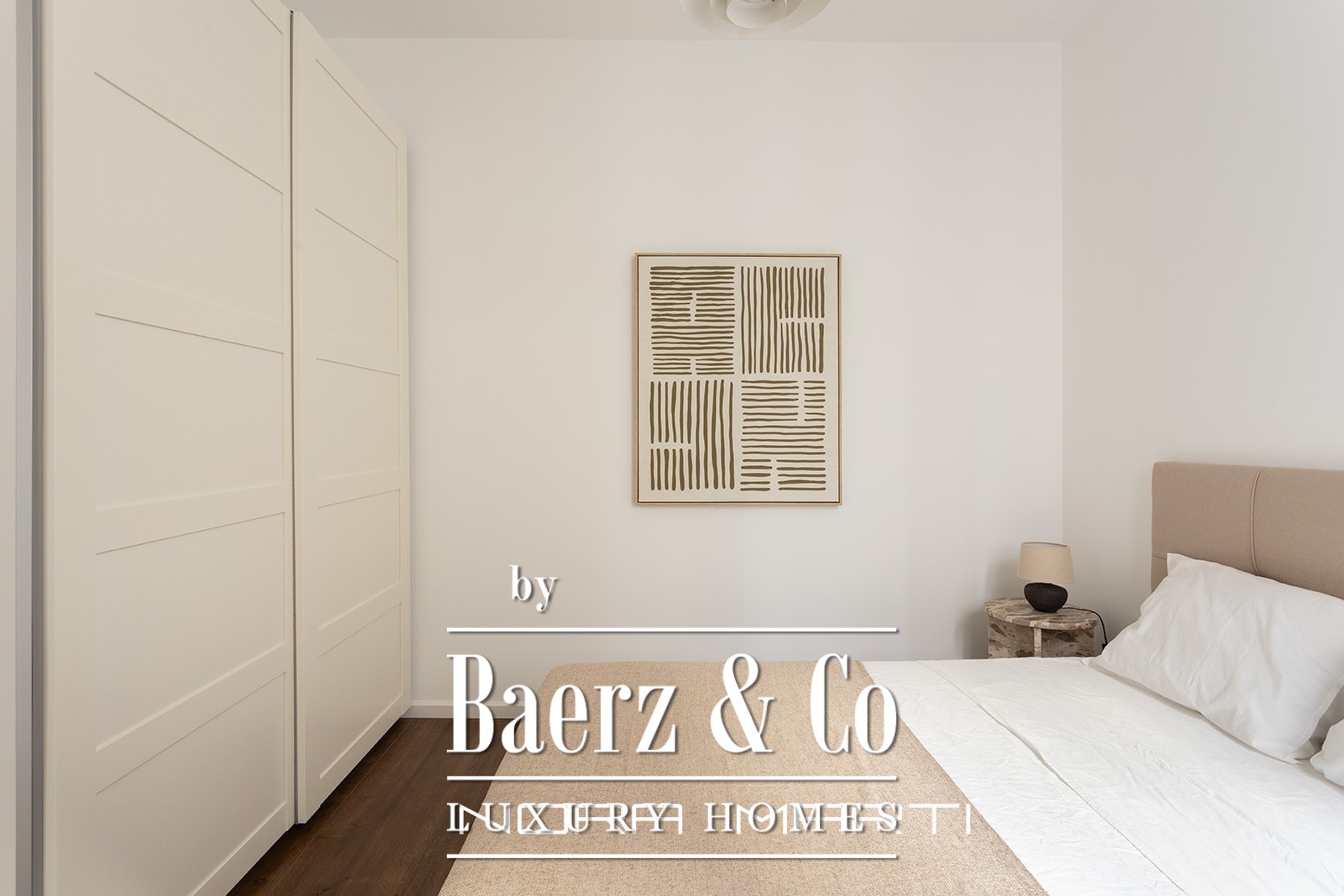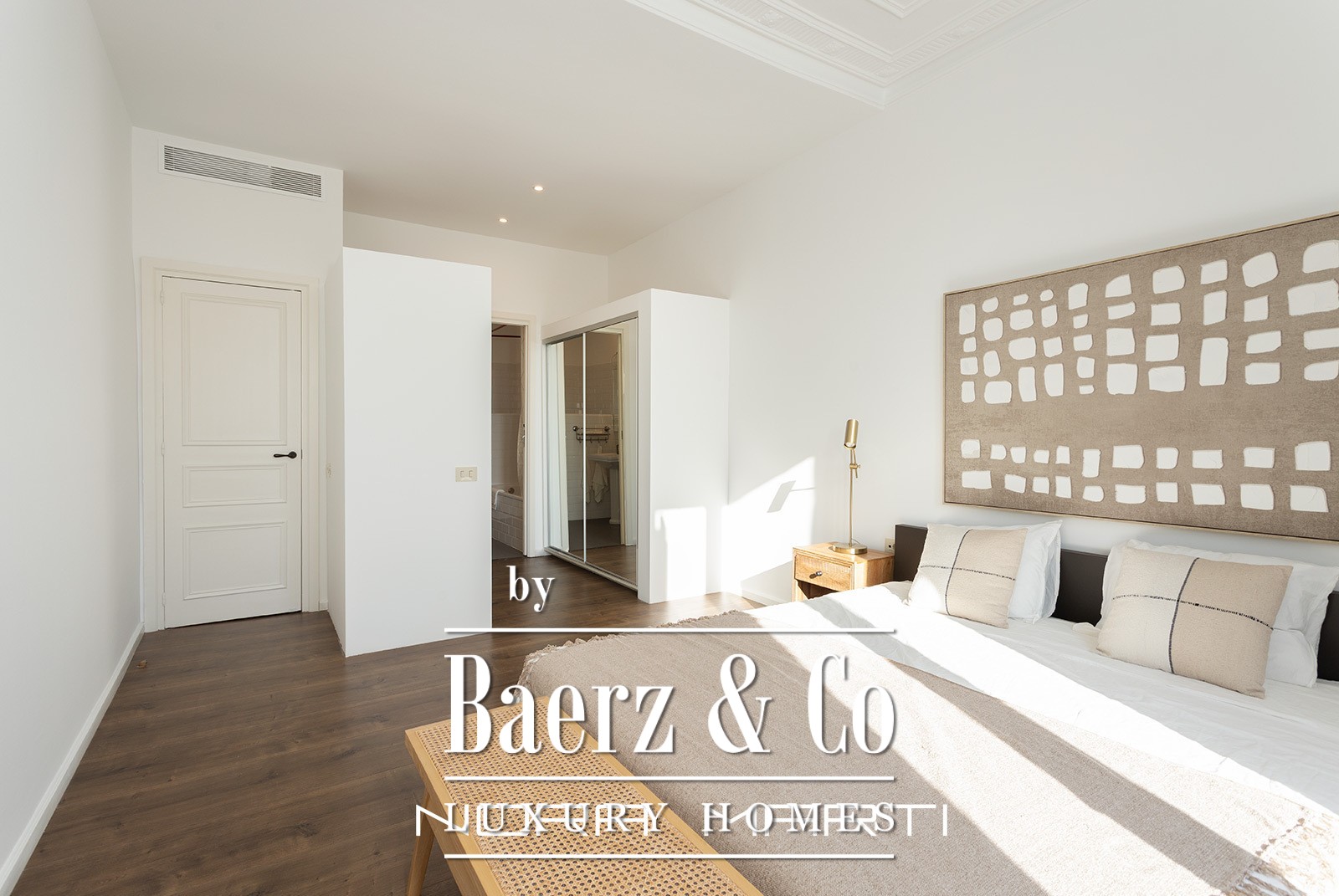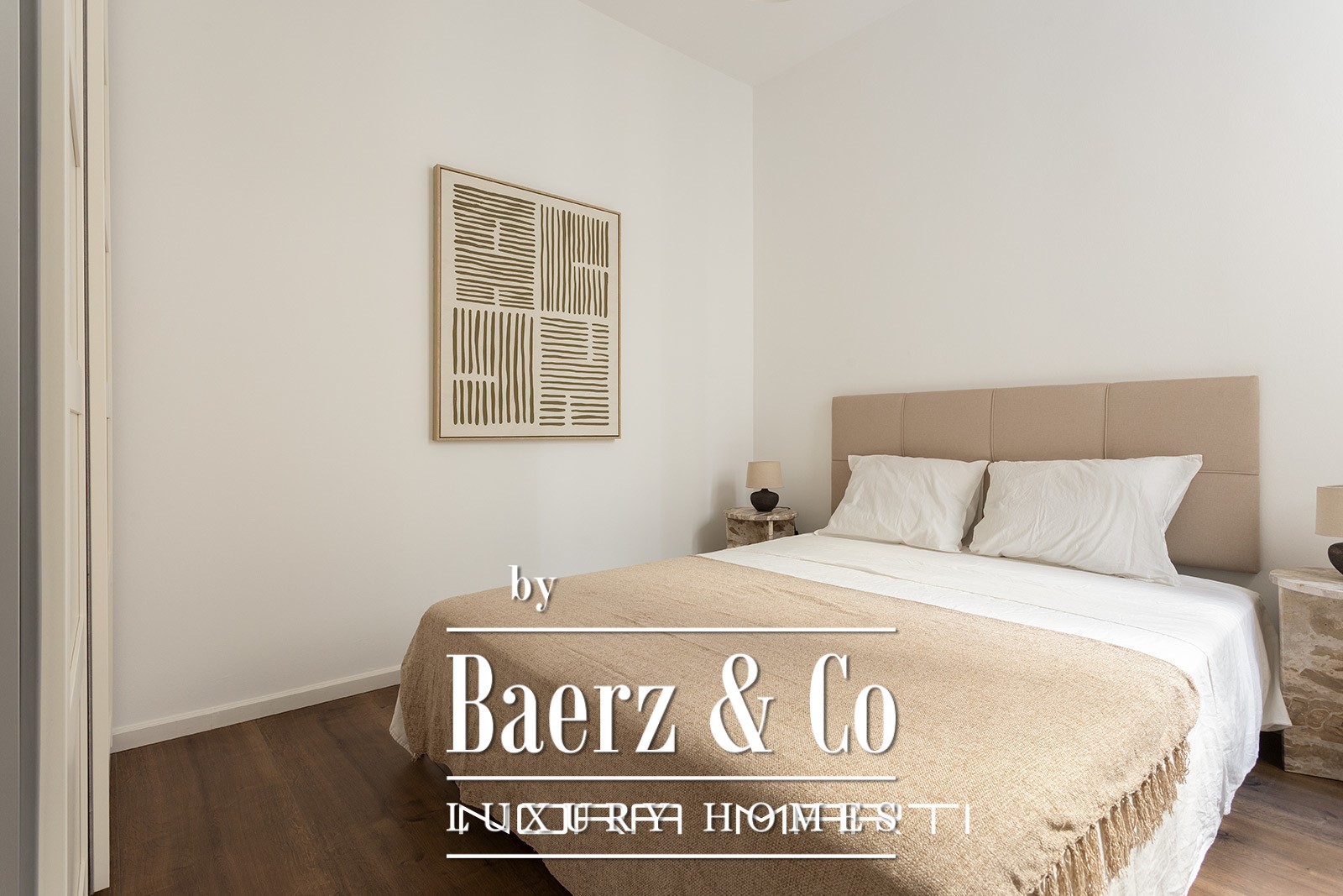 Con una superficie de 152 m², la vivienda ha sido completamente renovada, combinando sensibilidad contemporánea con una estructura histórica. En el interior, el mobiliario moderno y refinado aporta cohesión y claridad, marcando el tono para una vida urbana discreta. La distribución consta de tres dormitorios —uno doble y dos individuales—, así como dos baños, garantizando el equilibrio entre zonas privadas y sociales. Los grandes ventanales del salón, característicos de su época, inundan el espacio de luz natural, realzada por la favorable orientación y el calor del suelo de parquet. La cocina, completamente equipada y con espacio para desayunar, añade comodidad al día a día.