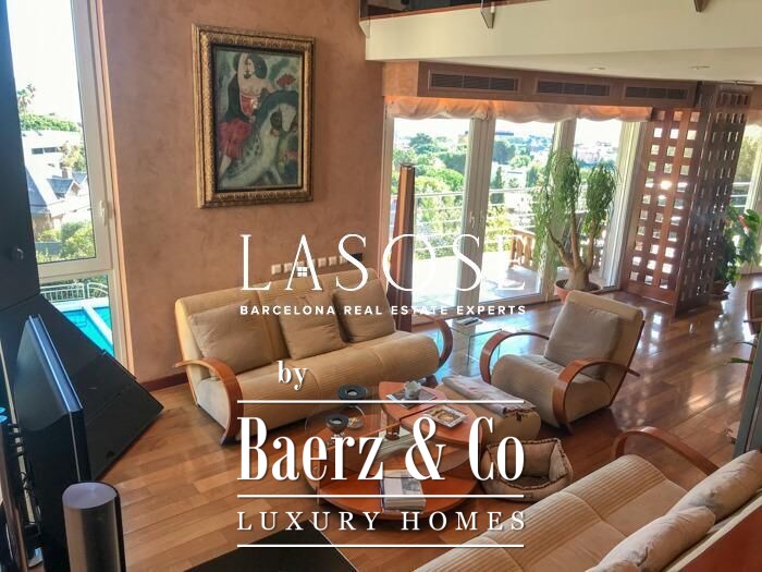 Las plantas superiores albergan la zona de noche, con tres dormitorios principales en suite y una suite principal con despacho. Más arriba, tres dormitorios individuales, cada uno con baño, y una terraza panorámica que permite disfrutar de la luz y vistas lejanas al mar. Entre sus comodidades destacan calefacción central, aire acondicionado, ascensor, videoportero, gimnasio, trastero y riego automático. Esta villa en Esplugues de Llobregat encarna el lujo español discreto, ofreciendo refugio y conexión, ideal para quienes buscan una residencia familiar de distinción cerca de Barcelona.