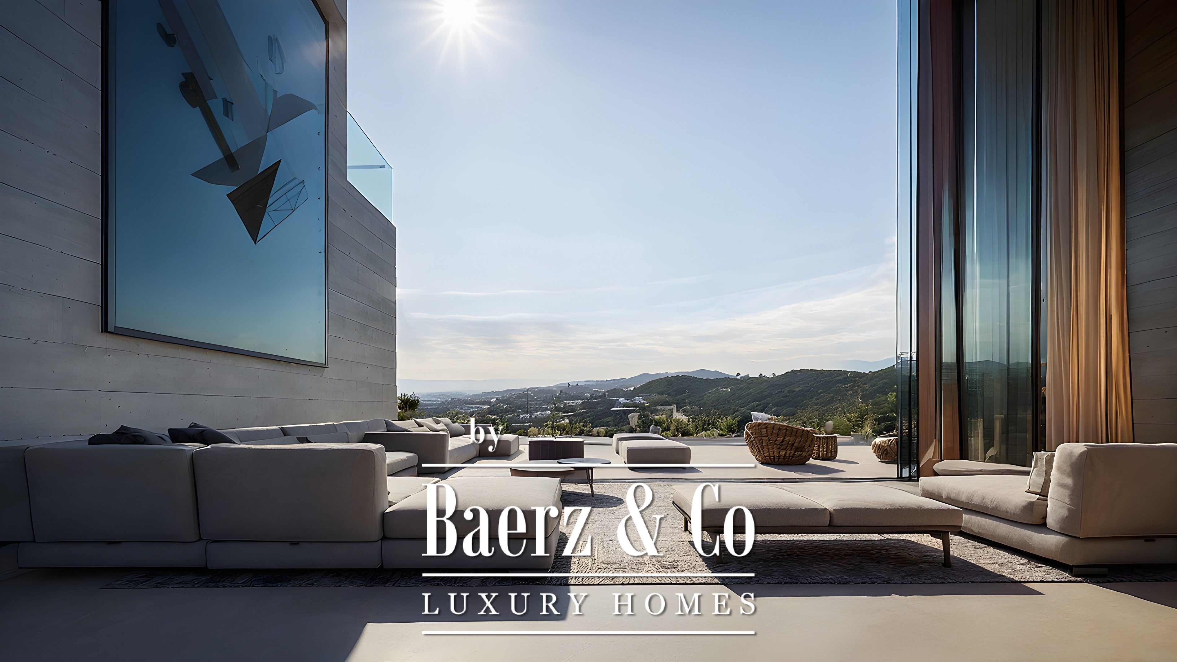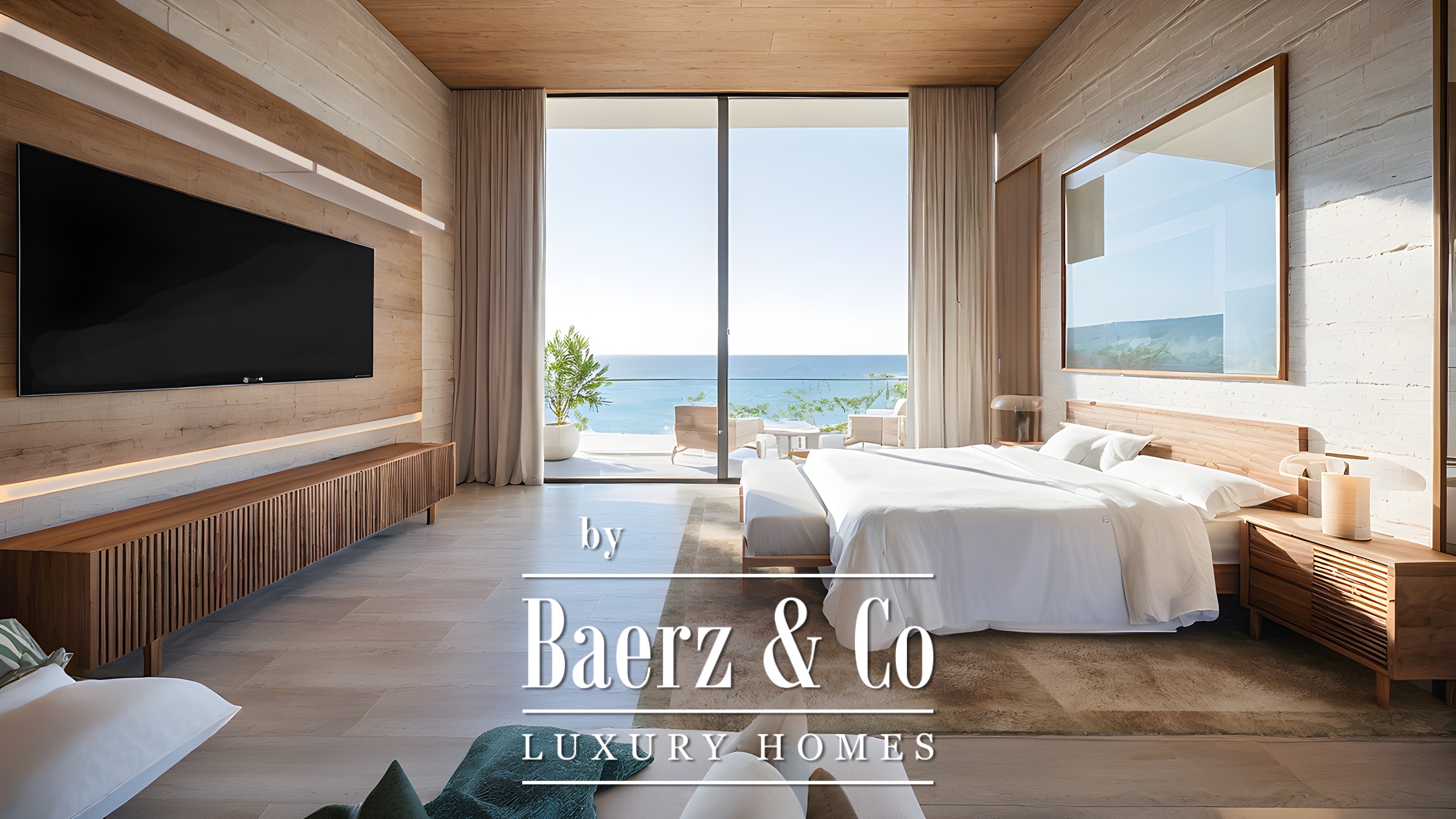 The upper floor houses four spacious bedrooms, all with en-suite bathrooms and access to private terraces, enjoying open views and maximum privacy.