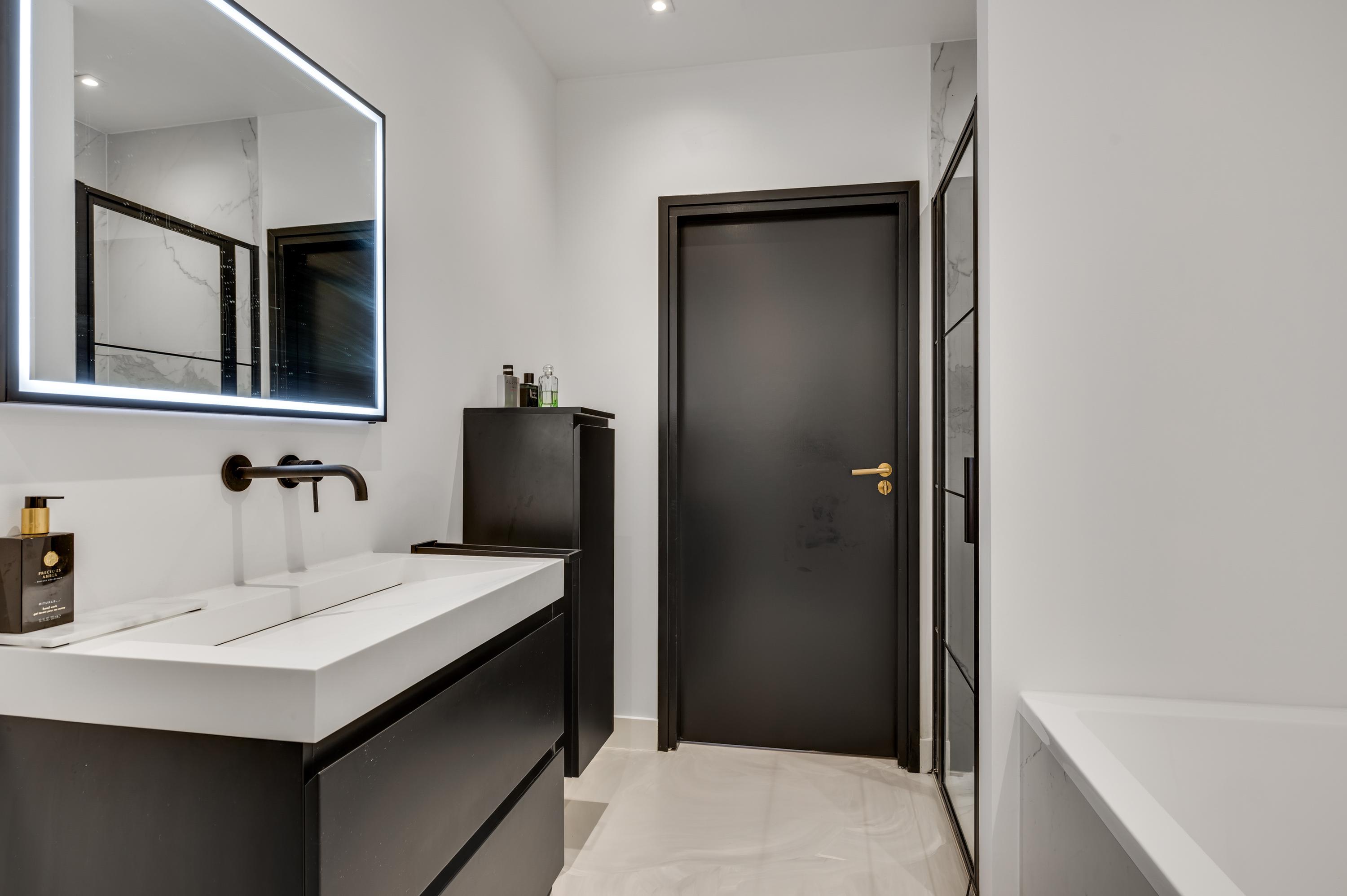 La villa, de 490 m² y completamente modernizada en 2020 con mejoras adicionales en 2024, combina claridad arquitectónica con una profunda sensación de privacidad. Una majestuosa entrada privada da paso a un doble carport y garajes integrados. En el interior, la luz natural invade los amplios espacios de estar orientados al sur, presididos por una chimenea abierta y una cocina equipada con electrodomésticos de alta gama. Cinco dormitorios, incluyendo una suite principal con vestidor y acceso directo al jardín, se complementan con tres baños diseñados cuidadosamente. Aire acondicionado, calefacción por aire caliente, triple aislamiento y certificado energético C refuerzan el confort y la eficiencia de la vivienda.