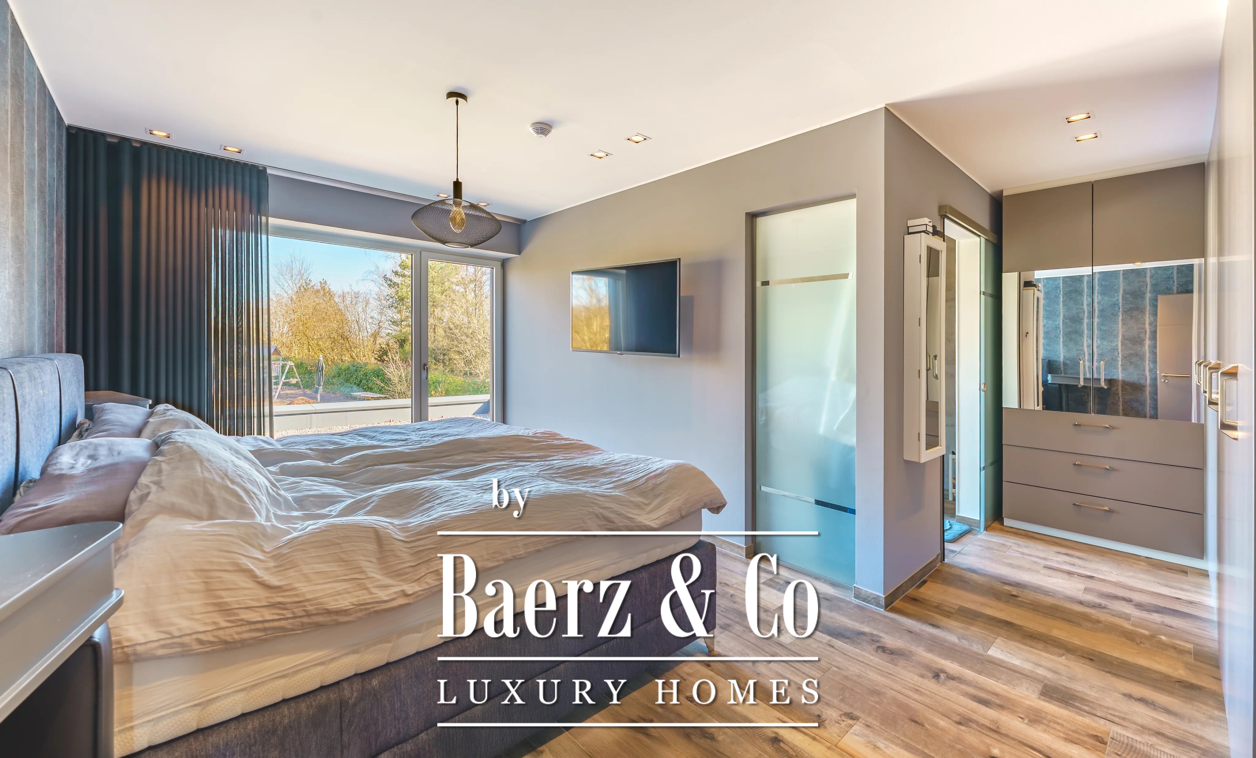 La casa Nocher-Route se asienta en una parcela tranquila de 15,6 acres, definida por la luz, la amplitud y acabados refinados. Esta vivienda en Nocher-Route le recibe con un amplio vestíbulo de entrada y soluciones de almacenamiento pensadas al detalle, que conducen a una luminosa zona de estar y comedor con acceso directo a la terraza. El ambiente transmite convivencia sencilla, anclado por una cocina abierta de alto nivel diseñada para la excelencia culinaria. En esta planta, también destaca un despacho adaptado al ritmo de la vida contemporánea y un garaje adyacente con capacidad para hasta cuatro vehículos, además de un espacio reservado para bicicletas.