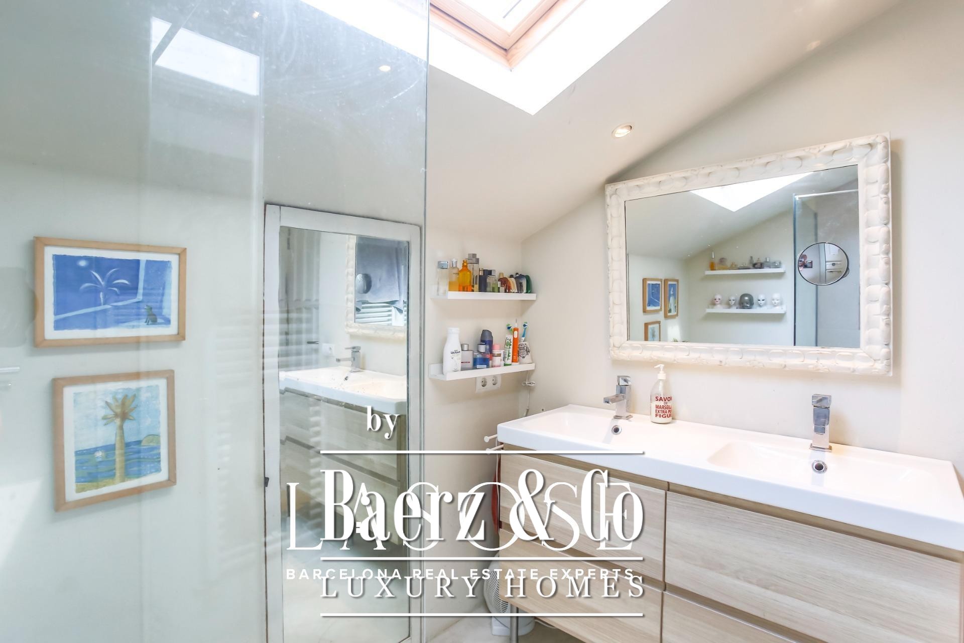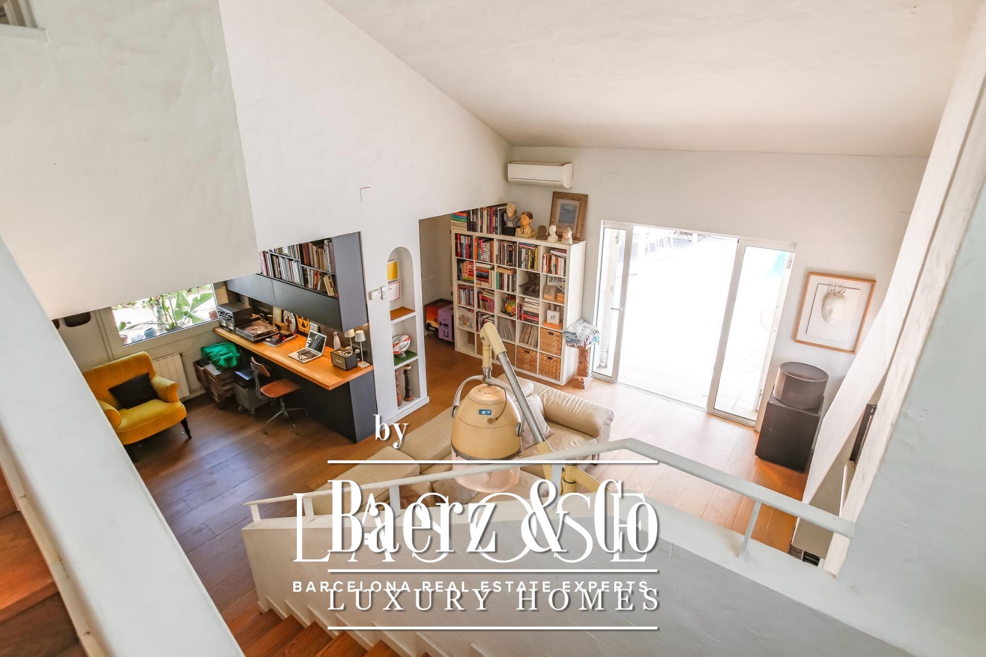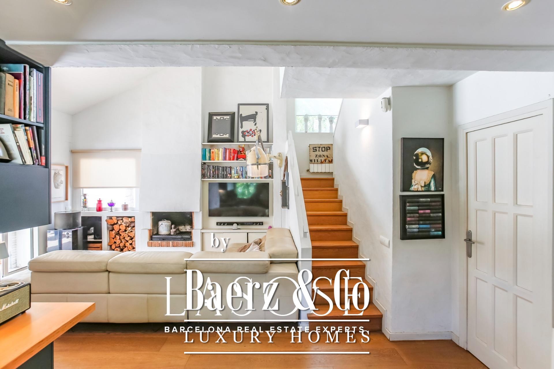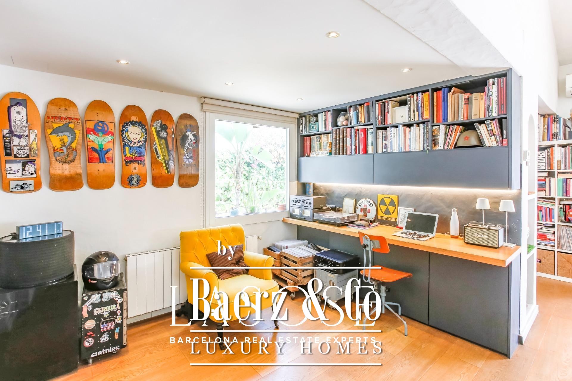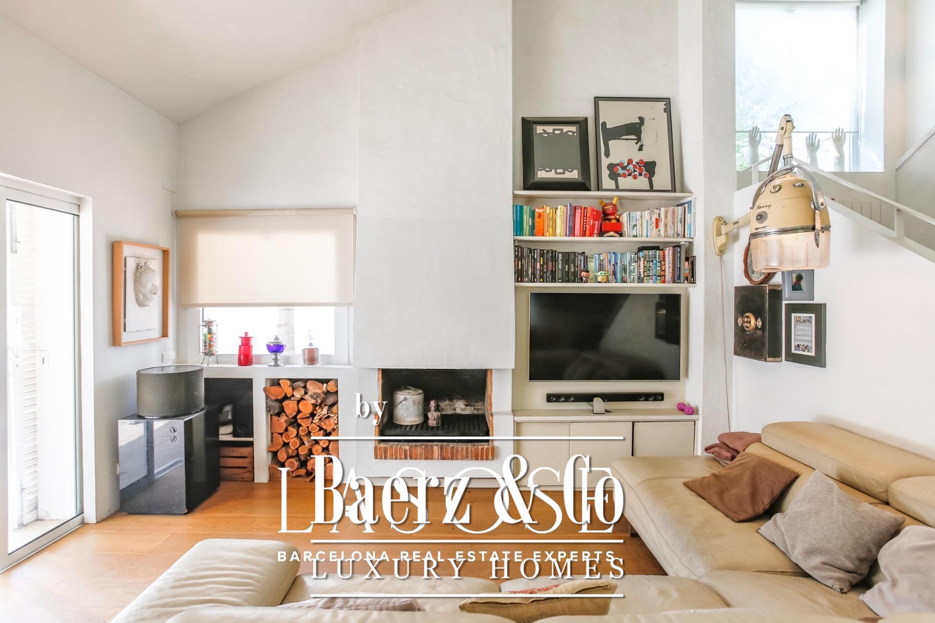 Los interiores se despliegan con ritmo armónico. Un elegante salón con chimenea se abre hacia el jardín. La cocina, totalmente equipada y con isla central, se conecta con un patio privado y zona de aparcamiento. En la planta baja, una suite de invitados o despacho complementa la versatilidad del espacio, mientras que en el primer piso destacan tres luminosos dormitorios dobles con vistas al jardín y techos a doble altura. Acabados refinados y tonos neutros realzan la elegancia natural de la arquitectura en toda la vivienda.