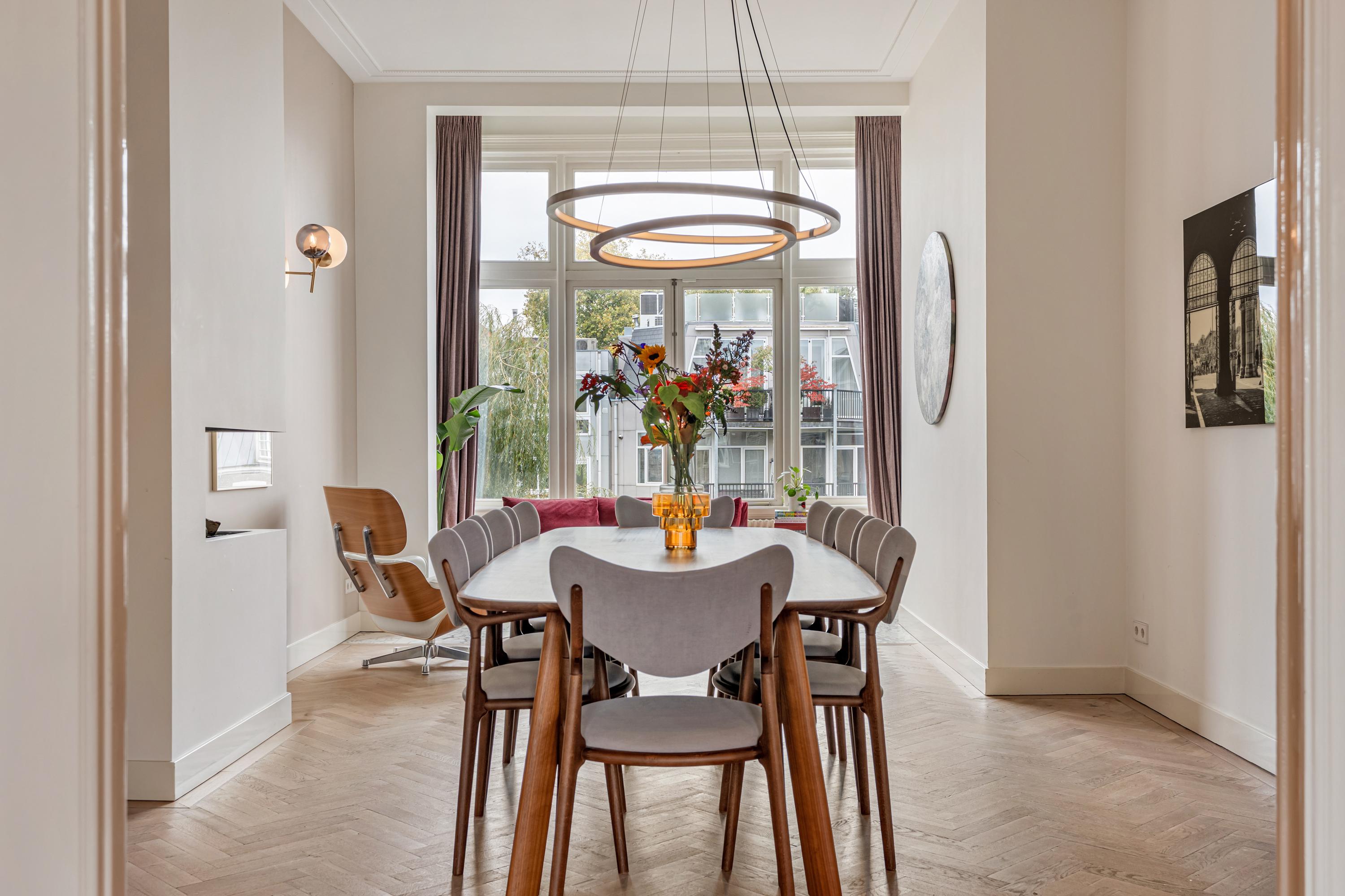 L’appartement Amsterdam Vossiusstraat représente une résidence d’exception en bordure immédiate du Vondelpark, offrant 183 m² d’espace de vie raffiné sur deux niveaux soigneusement achevés. Ce bien conjugue le cachet d’un hôtel particulier classique au confort contemporain, souligné par de hauts plafonds, des moulures d’origine, des détails en marbre et un parquet à chevrons lumineux. Depuis le vaste séjour, la lumière naturelle afflue par les baies avant et arrière, encadrant des vues rares sur la verdure du parc et les jardins privés sereins.