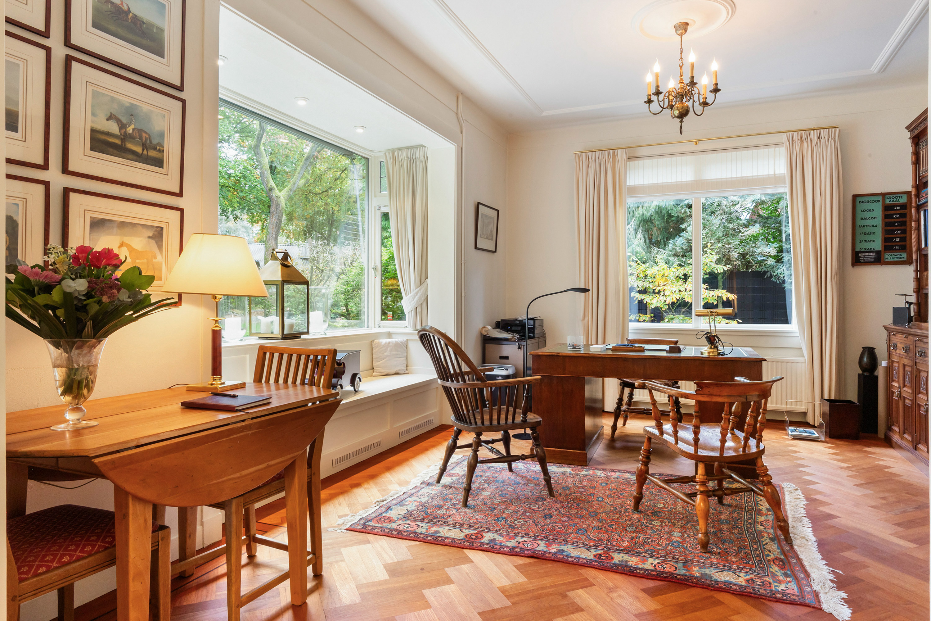 La villa Apeldoorn sur Valkenberglaan témoigne d’un savoir-faire exceptionnel et d’une grandeur subtile. Cette demeure de 1925, située à Berg en Bos, offre 186 m² d'espaces de vie raffinés sur un terrain verdoyant de 1 480 m², alliant avec discrétion héritage historique et confort contemporain. L’entrée baignée de lumière, dotée de carrelage et d’un chauffage par le sol, crée d’emblée une atmosphère chaleureuse et accueillante. Les pièces à vivre s’enchaînent harmonieusement – du bureau richement lambrissé avec parquet en chevrons et banquette en alcôve, aux salons de réception aux hauts plafonds ornés de moulures décoratives et de larges baies encadrant des vues sur le jardin arboré. L’espace de vie façon véranda, ajouté en 1996, s’étend naturellement vers les vastes jardins privés, fusionnant ainsi architecture et paysage.