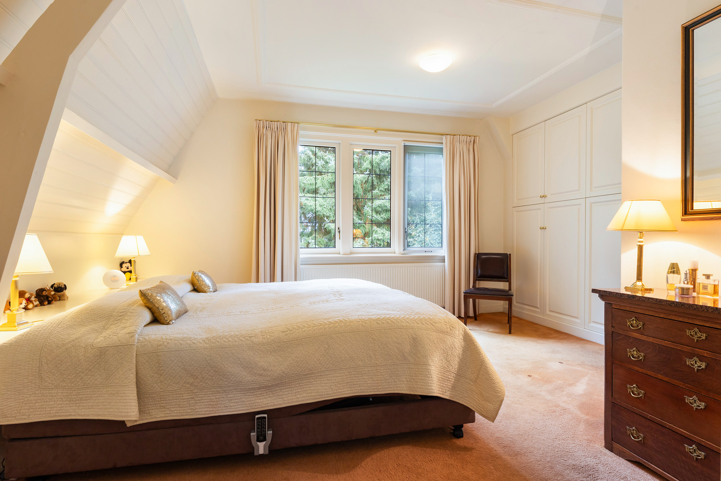 Cette propriété se distingue par l’attention portée à ses détails d’origine: fenêtres en bois isolées, éléments architecturaux authentiques et élégantes lanternes de jardin ayant autrefois orné le palais Het Loo. La toiture modernisée, entièrement renouvelée et isolée en 2023, ainsi que le chaume, assurent pérennité et élégance intemporelle. Les prestations comprennent une classe énergétique C, un système d’alarme moderne, un éclairage et une irrigation automatisés, des dépendances et un garage chauffés au gaz et deux allées avec accès séparé pour une discrétion optimale. L’étage accueille trois chambres et une salle de bains remarquablement équipée, chaque espace bénéficiant de rangements sur mesure et de fenêtres à vitraux restaurées.