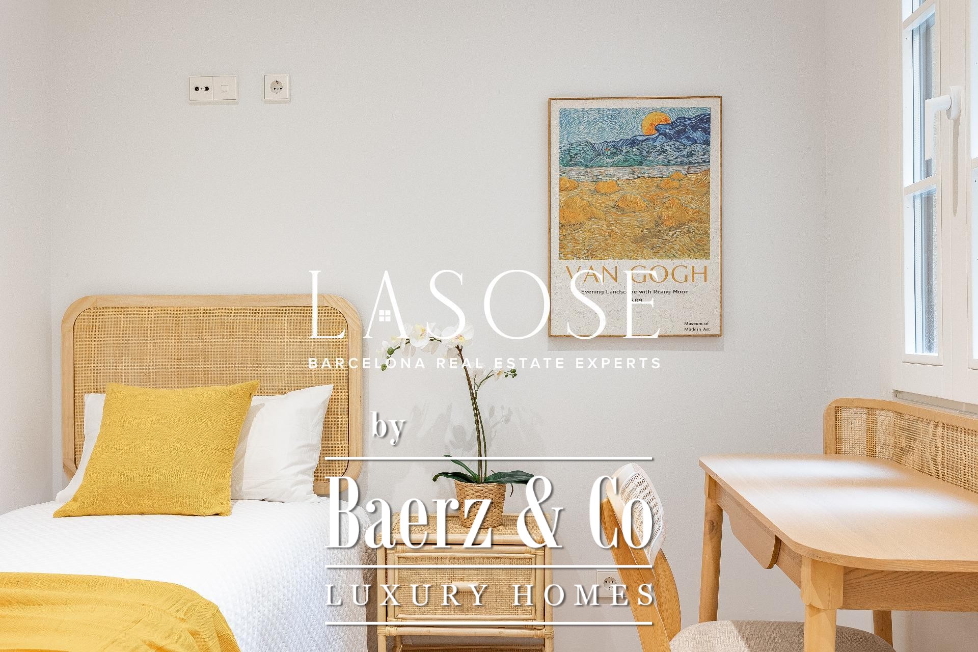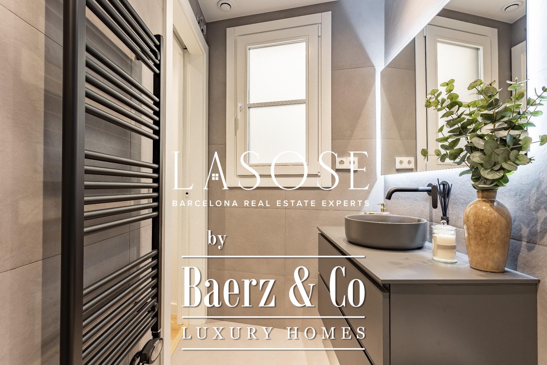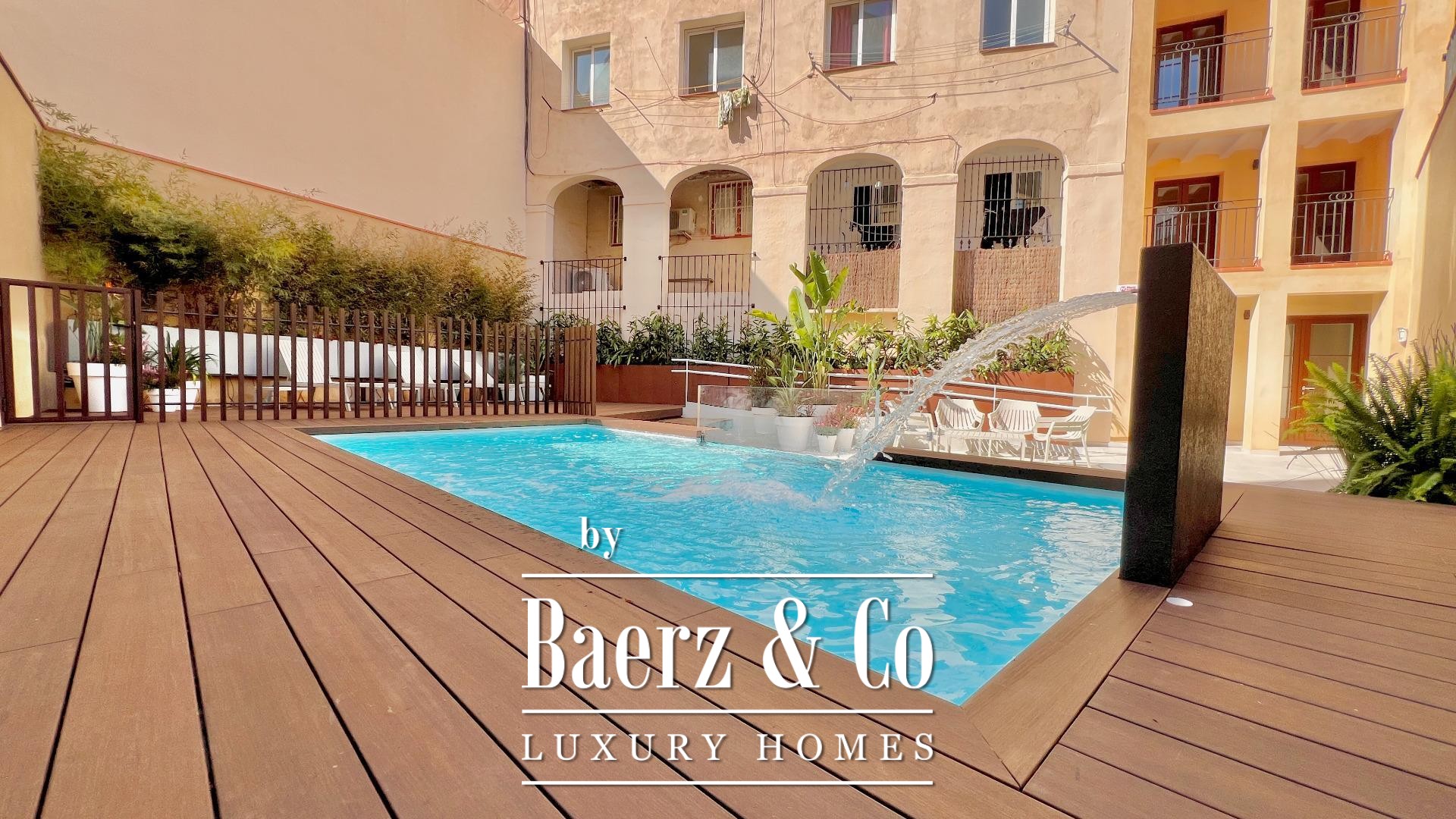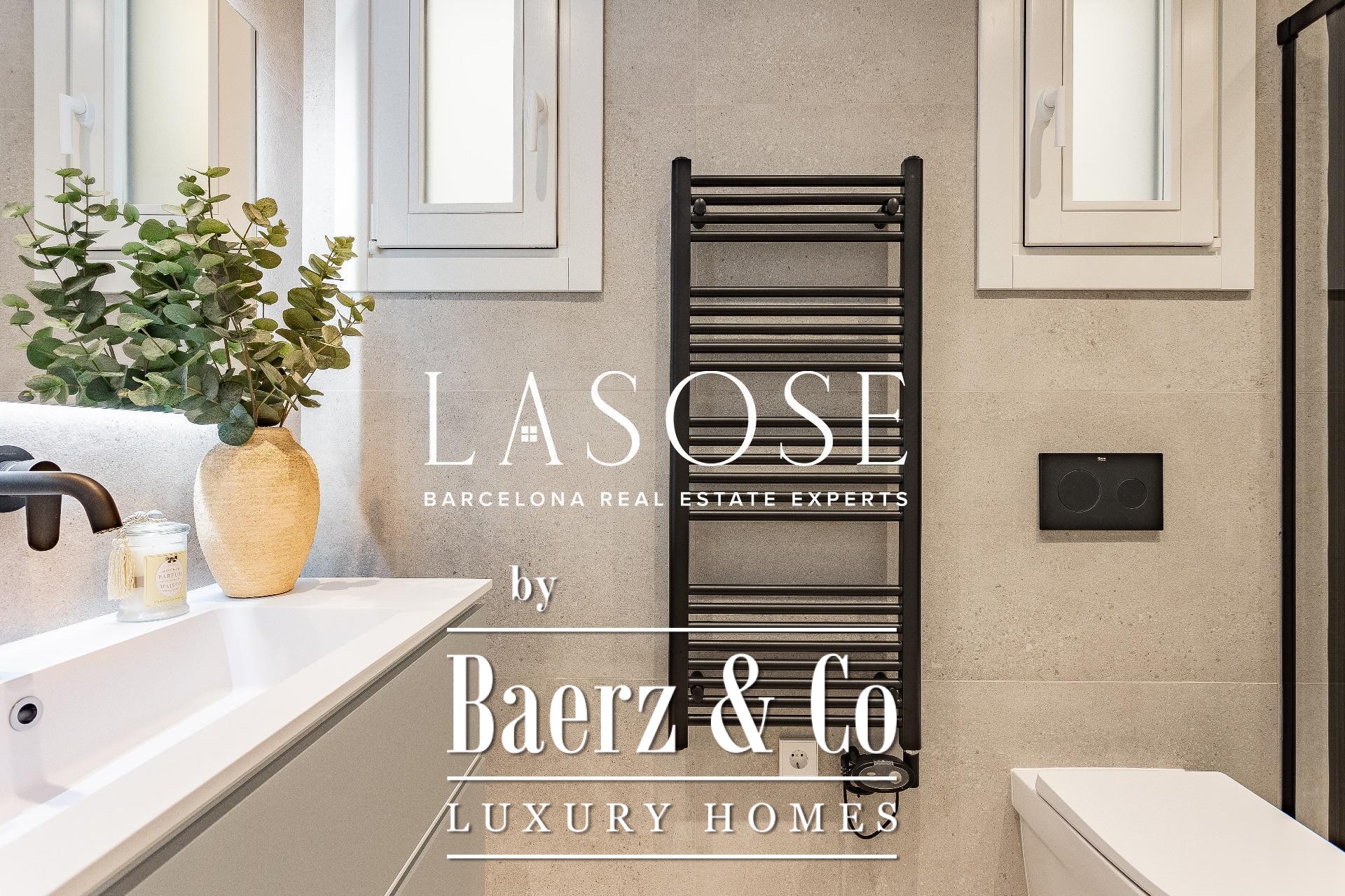 L’expérience intérieure est enrichie de façon discrète par des atouts tels qu’une terrasse surplombant la rue pour des moments de quiétude, un chauffage central, la climatisation, ainsi que les avantages d’un ascenseur et d’une buanderie. Balcons et parties communes, incluant une piscine, offrent des instants de retraite au cœur du dynamisme de Barcelone.