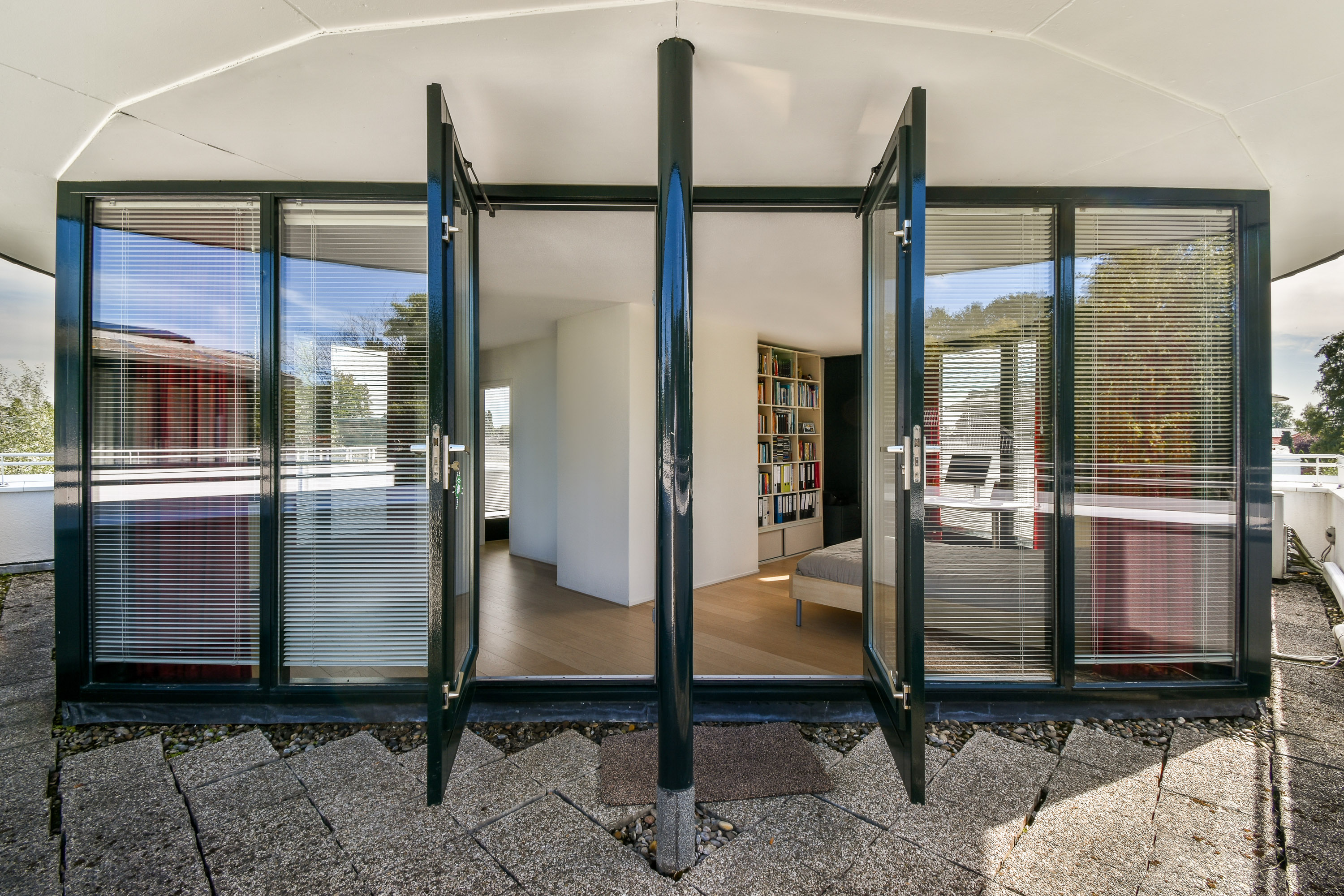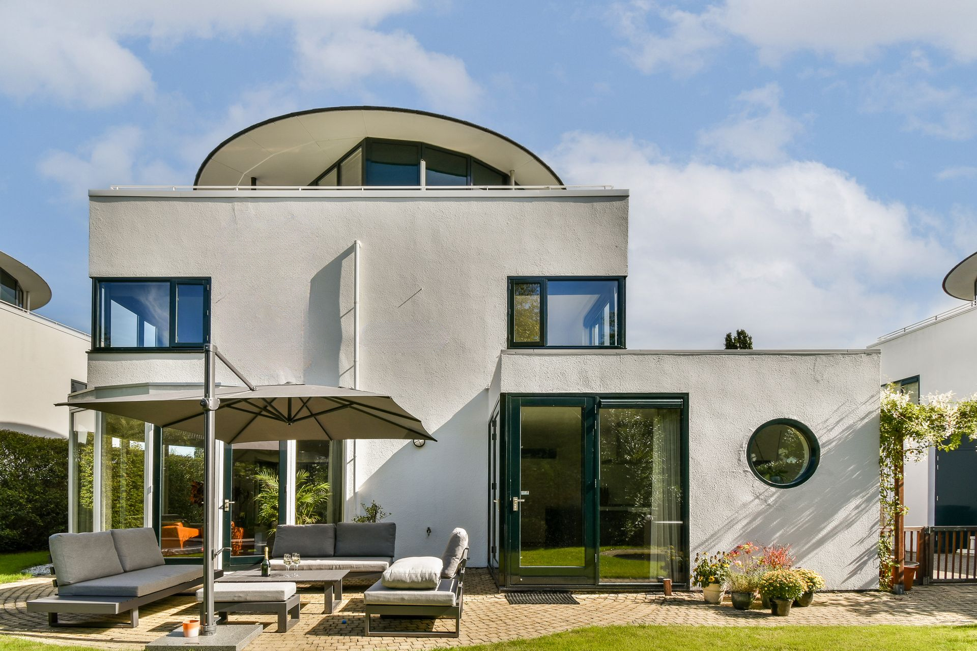 La villa individuelle Dordrecht incarne une alliance rare entre prestige architectural et art de vivre raffiné, au cœur du parc Burgemeester Beelaerts, une enclave très prisée de Dubbeldam. Réalisée en 1995 par le célèbre architecte Cees Dam, cette résidence de 197 m² déploie une esthétique où lignes épurées et courbes élégantes dessinent une silhouette à la fois expressive et harmonieuse. Un pont privé conduit à l’entrée, partagée uniquement avec la propriété voisine, tandis que la parcelle paysagée de 497 m² s’ouvre sur l’eau à l’avant et dévoile un jardin exposé ouest, baigné de lumière à l’arrière.