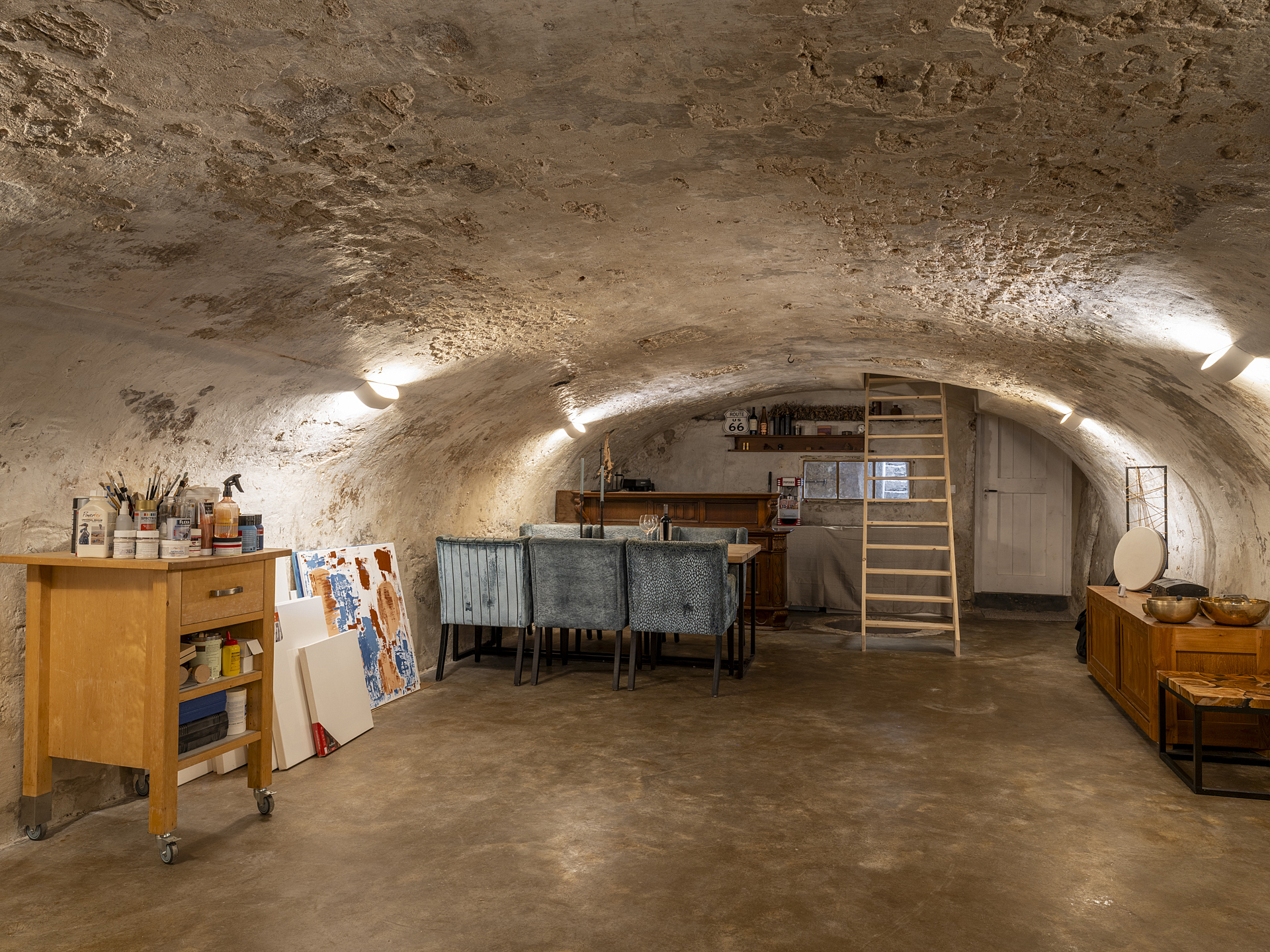 Répartie sur cinq chambres et deux salles de bains, la résidence conjugue générosité et intimité. Les poutres et fermes d’origine rythment les étages supérieurs, tandis que la climatisation, la ventilation à récupération de chaleur et le système intelligent Homey témoignent d’une parfaite habitabilité. L’annexe, autrefois conçue pour les soldats, vient enrichir la polyvalence du lieu, idéale pour une vie intergénérationnelle ou le télétravail.