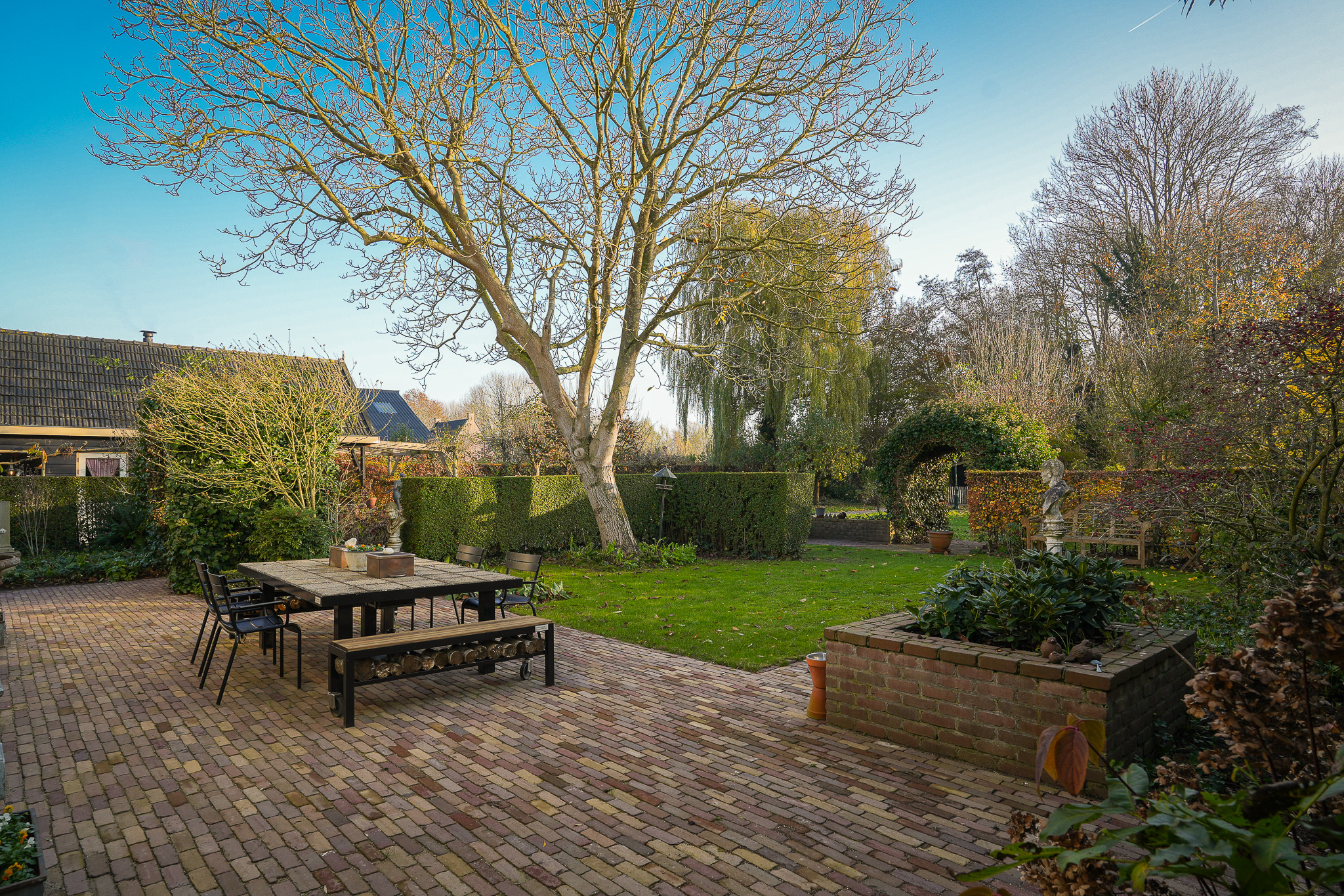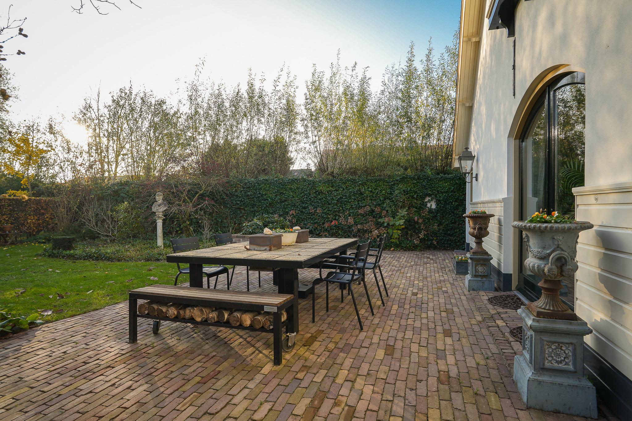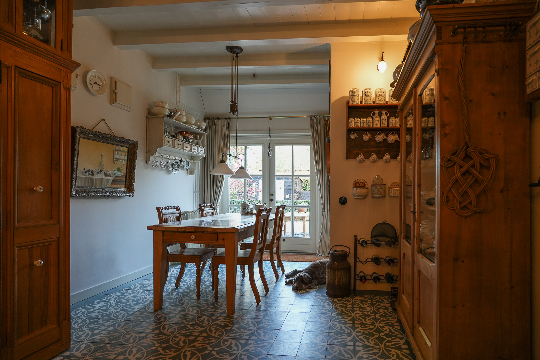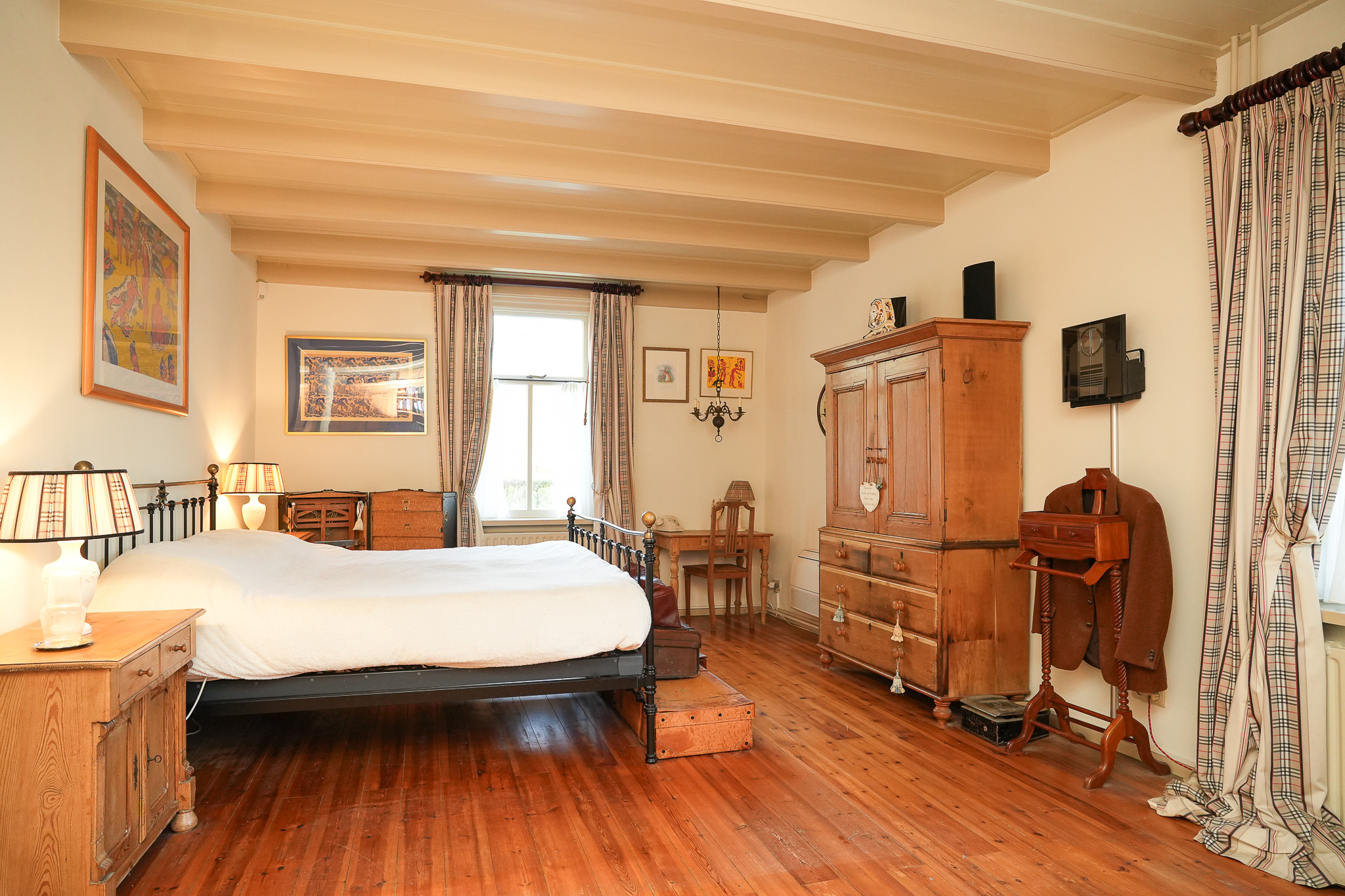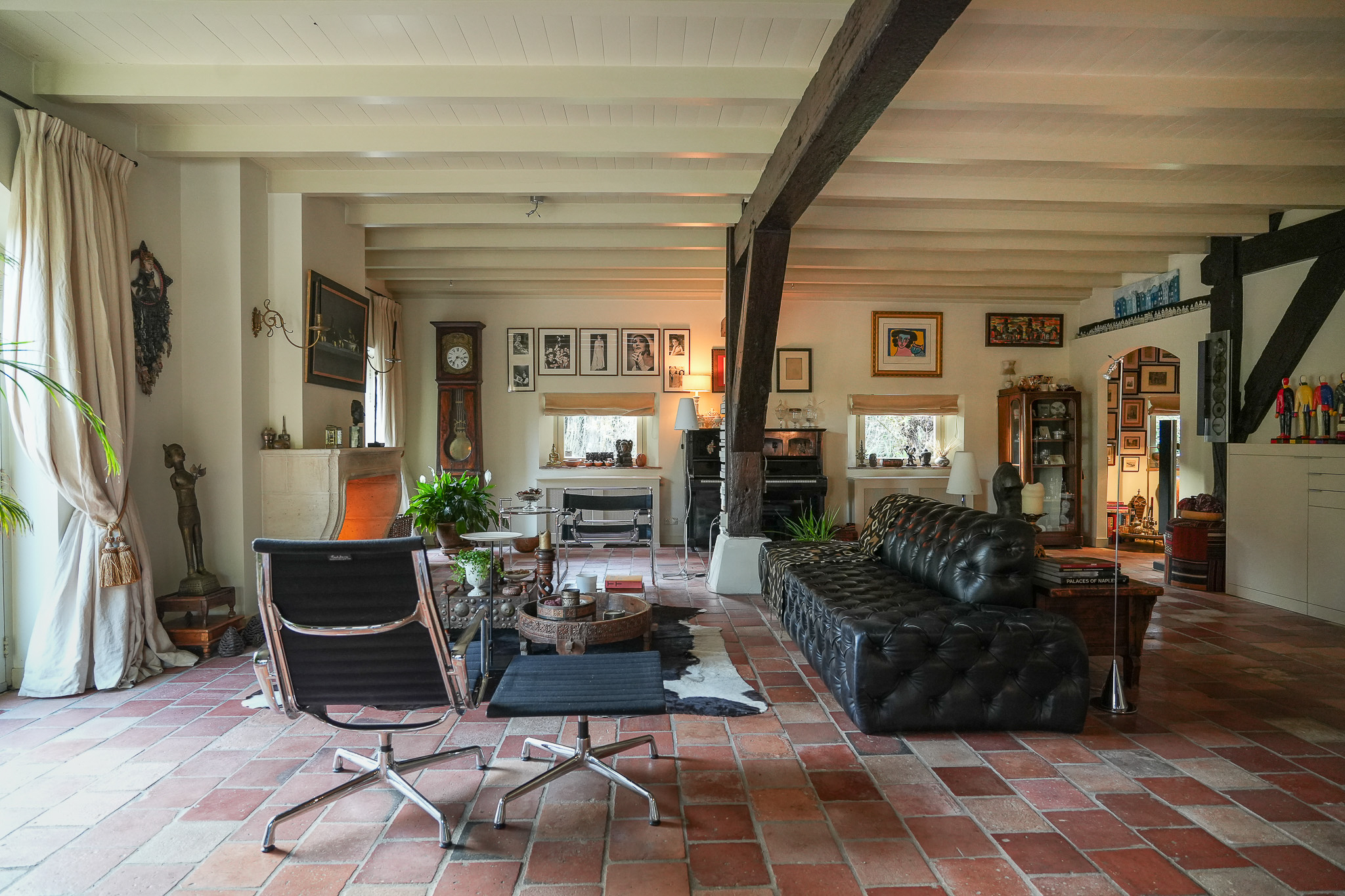 La ferme Hellouw incarne une présence discrète et raffinée à la lisière du village de Betuwe; son caractère de 1917 façonne chaque détail soigneusement pensé. Posée sur un terrain de 4 910 m², la propriété offre 403 m² d’espace de vie, cinq chambres et deux salles de bains. Volumes généreux et éléments d’époque rythment les intérieurs, où cheminées en grès et poutres en bois confèrent impérissable chaleur et gravité aux pièces à vivre. Le rez-de-chaussée accueille un vaste salon ouvert sur le jardin, dans l’ancienne grange, une cuisine champêtre aux carreaux anciens, une cave à vin, et un ensemble de pièces de plain-pied : chambre avec cheminée, dressing et bureau donnant tous sur les jardins privés.