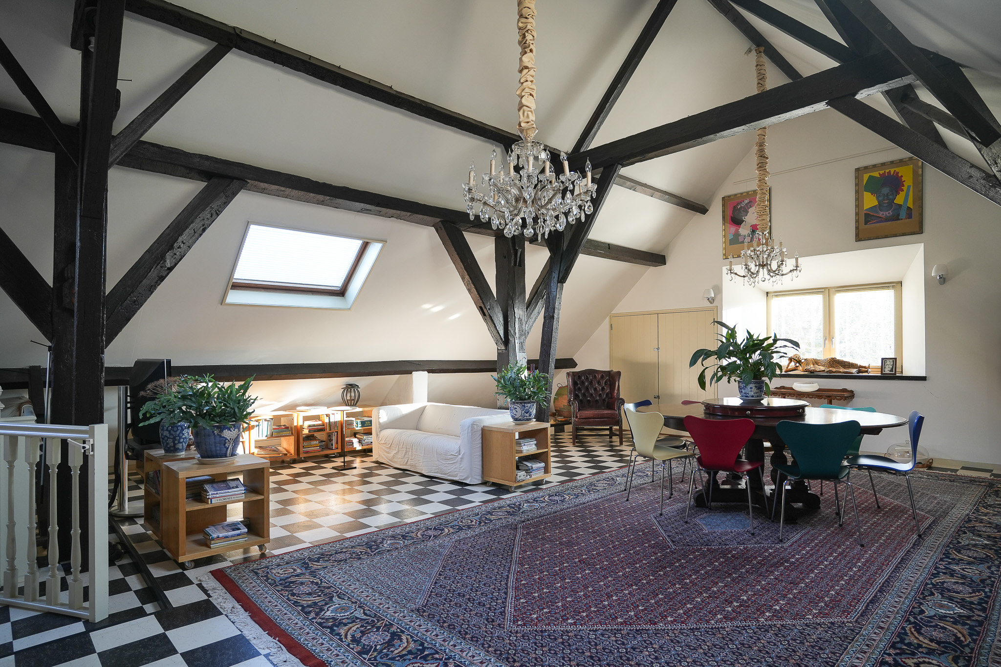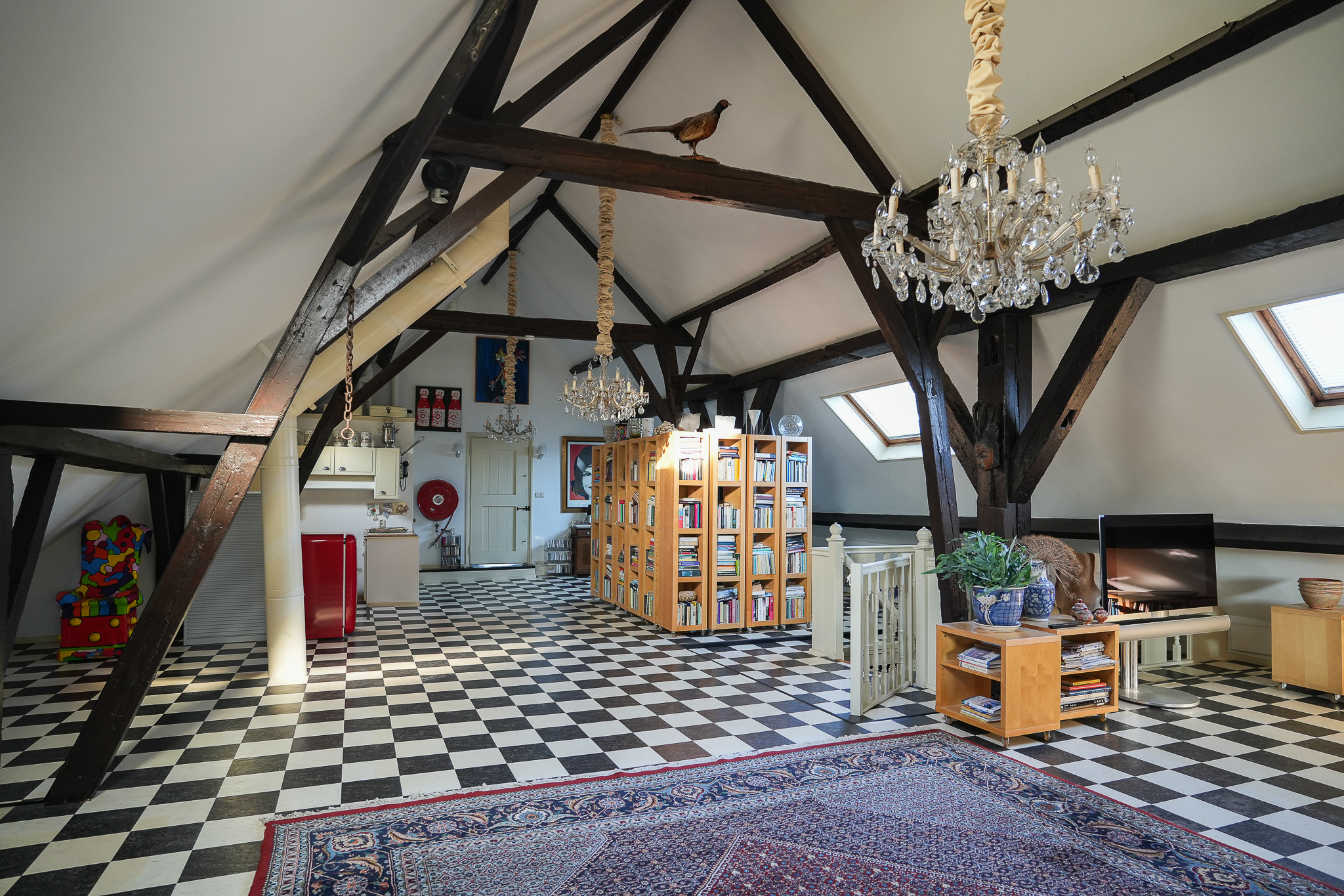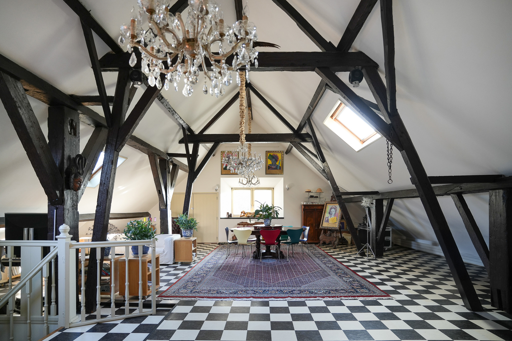 Au-dessus de l’aile arrière, le premier étage révèle un loft ouvert culminant à 4,5 mètres de faîtage et complété par une réserve, tandis que l’aile avant propose deux autres chambres et une salle de bains. Chaque aspect a été conçu pour le confort : chauffage au sol, climatisation, ventilation mécanique et double vitrage.
