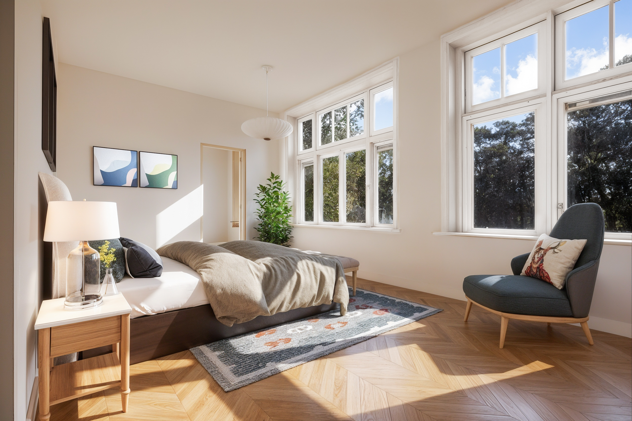 De bosvilla’s ademen nog altijd de sfeer van het verleden, met hoge plafonds, authentieke details en grote raampartijen die je het bos in al zijn pracht doen beleven. Tegelijkertijd zijn de villa’s volledig toekomstbestendig: gasloos, voorzien van vloerverwarming en -koeling via een eigen bodembron, HR++ glas en optimale isolatie. Het resultaat? Een energielabel A++, lage energielasten én met het comfort van een hypermoderne verwarming.