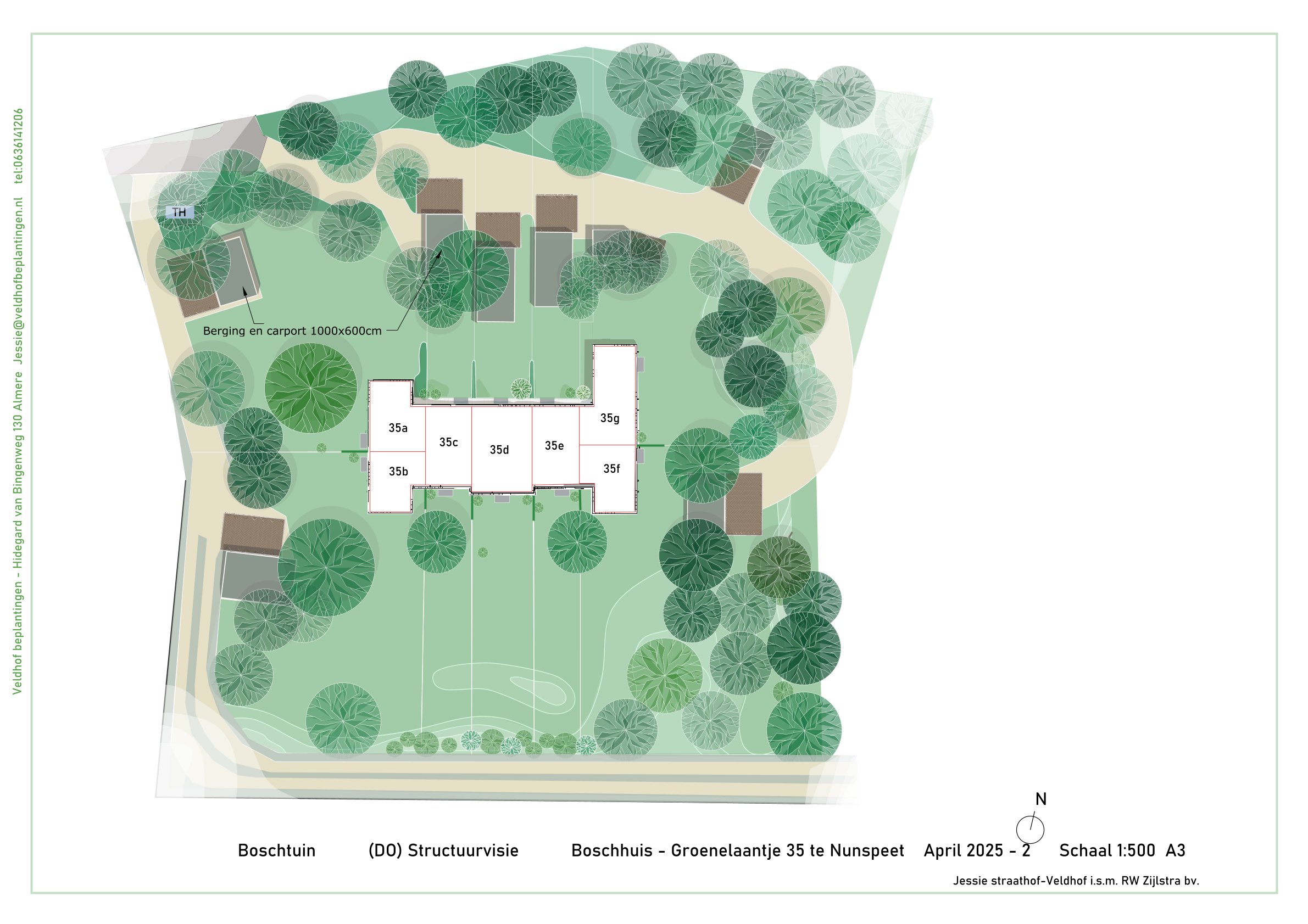 - Oriëntatie: op het noordoosten, met optimale zon inval en uitzicht op het bos. De tuin heeft ieder moment van de dag zon.