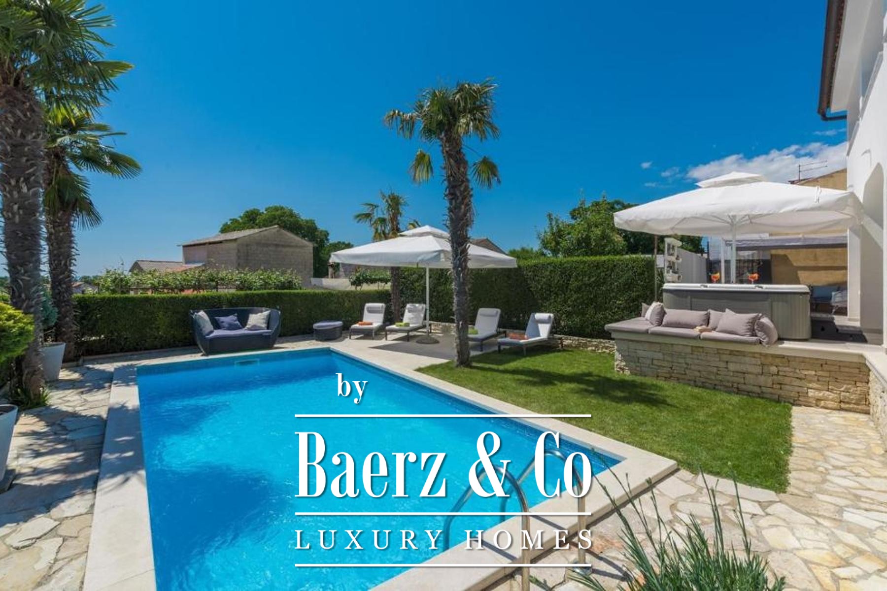 La maison Sveti Lovreč avec piscine et vue panoramique est située au calme, à la lisière d’un village près de Sveti Lovreč, en Istrie. Cette propriété offre 380 m² d’espaces de vie soigneusement agencés sur un terrain de 312 m², avec un jardin privé clos de 230 m². Nichée dans un cadre paisible, la maison propose six chambres climatisées et six salles de bains modernes, réparties sur trois étages principaux et des combles, conçus pour équilibrer espaces de vie ouverts et coins nuit préservés.